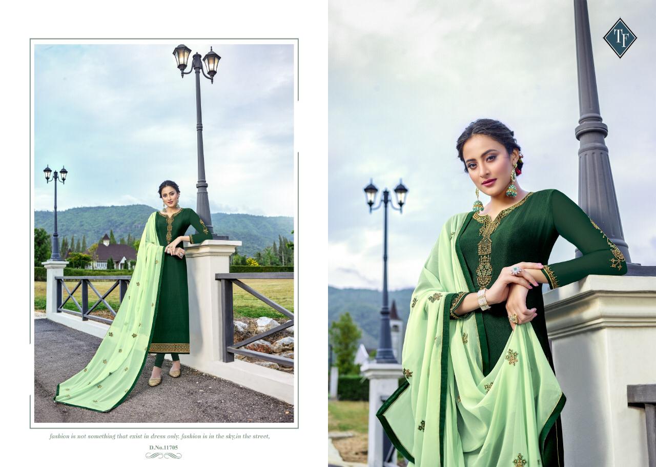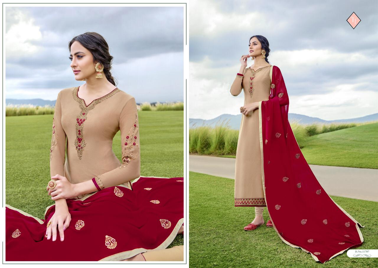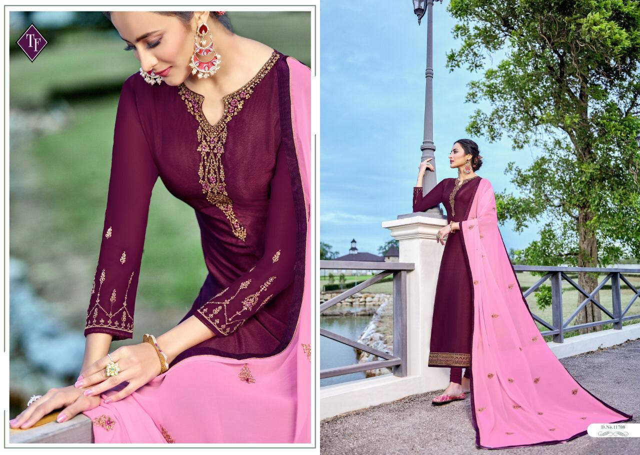 TANISHK FASHION â¤Name:-ROYAL SILK⤠VOL 7 Top:- Pure French crape Embrodery work Bottom:-Pure french Dupatta:-Pure gorgette dupatta work Design:- 8 pcs Rate:- 795/- Dispatch:-10 Sep 19 Special:- BEST RATE WITH PURE QUALITY & HEAVY EMBRODERY ON TOP & DUPATTA |