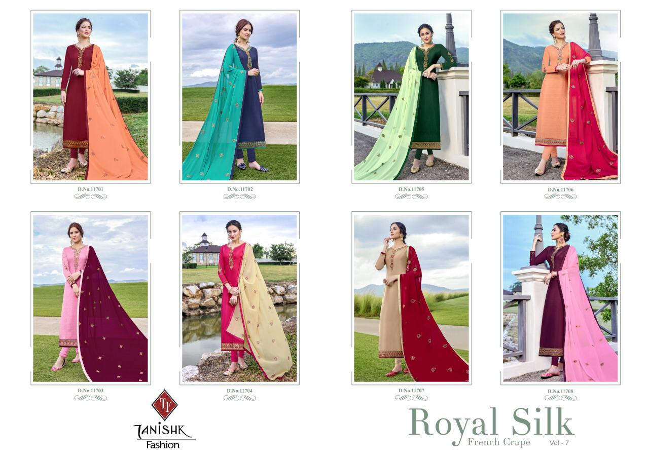 Royal Silk Vol 7 By Tanishk Fashion French Crape Embroidery Dress Collection