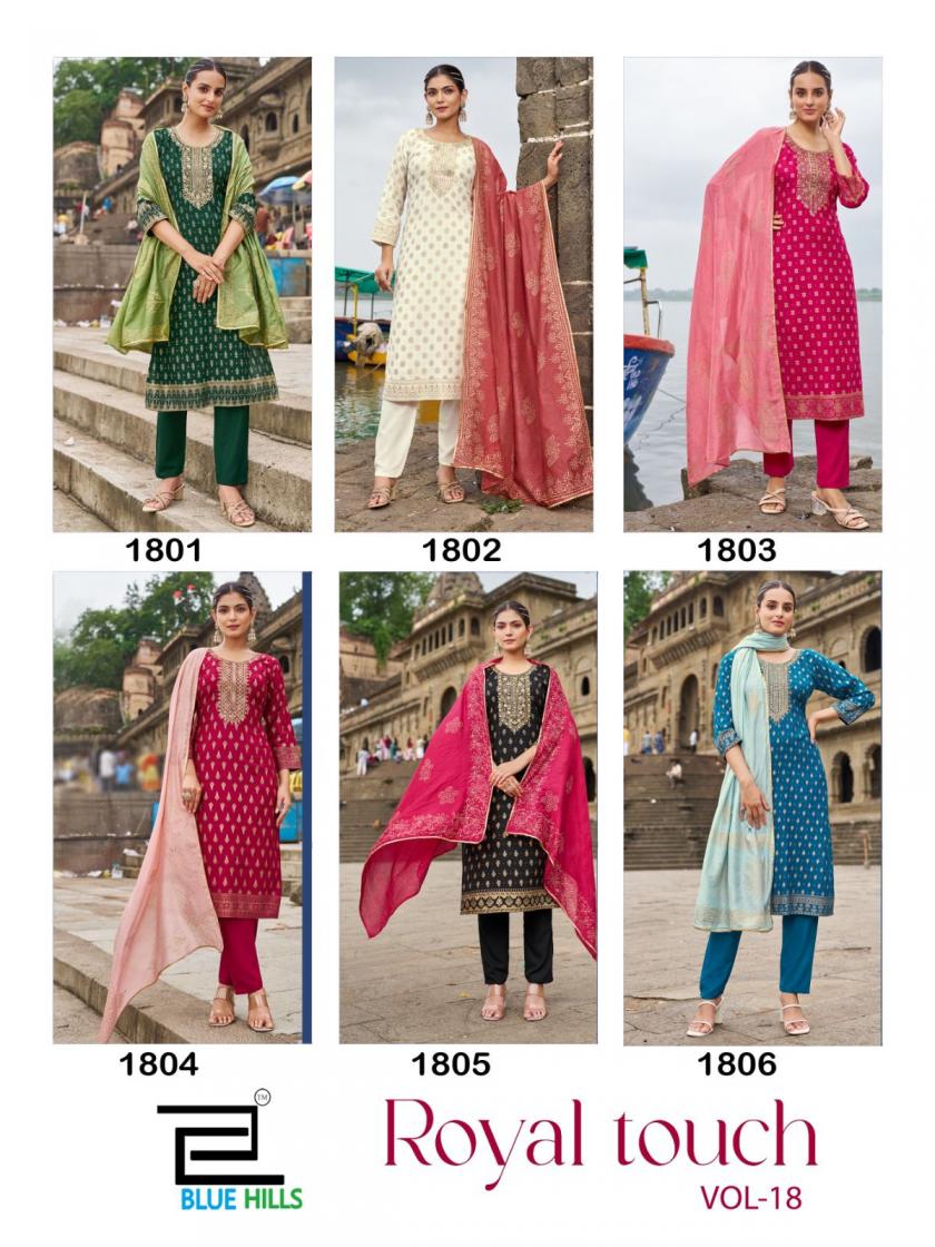 Welcome to blue hills (KURTI) 📕Catalogue name:- Royal Touch Vol.18 Pant:- Rayon 14KG Dupatta:- Chanderi foil Print With Lace Work ✅concept :- 3PCS Size:- M,L,XL,XXL,3XL,4XL,5XL M to 5XL - 770+GST 6 DESIGNS CATALOGUE 🚛 : Dispatch : 2 to 3 days |