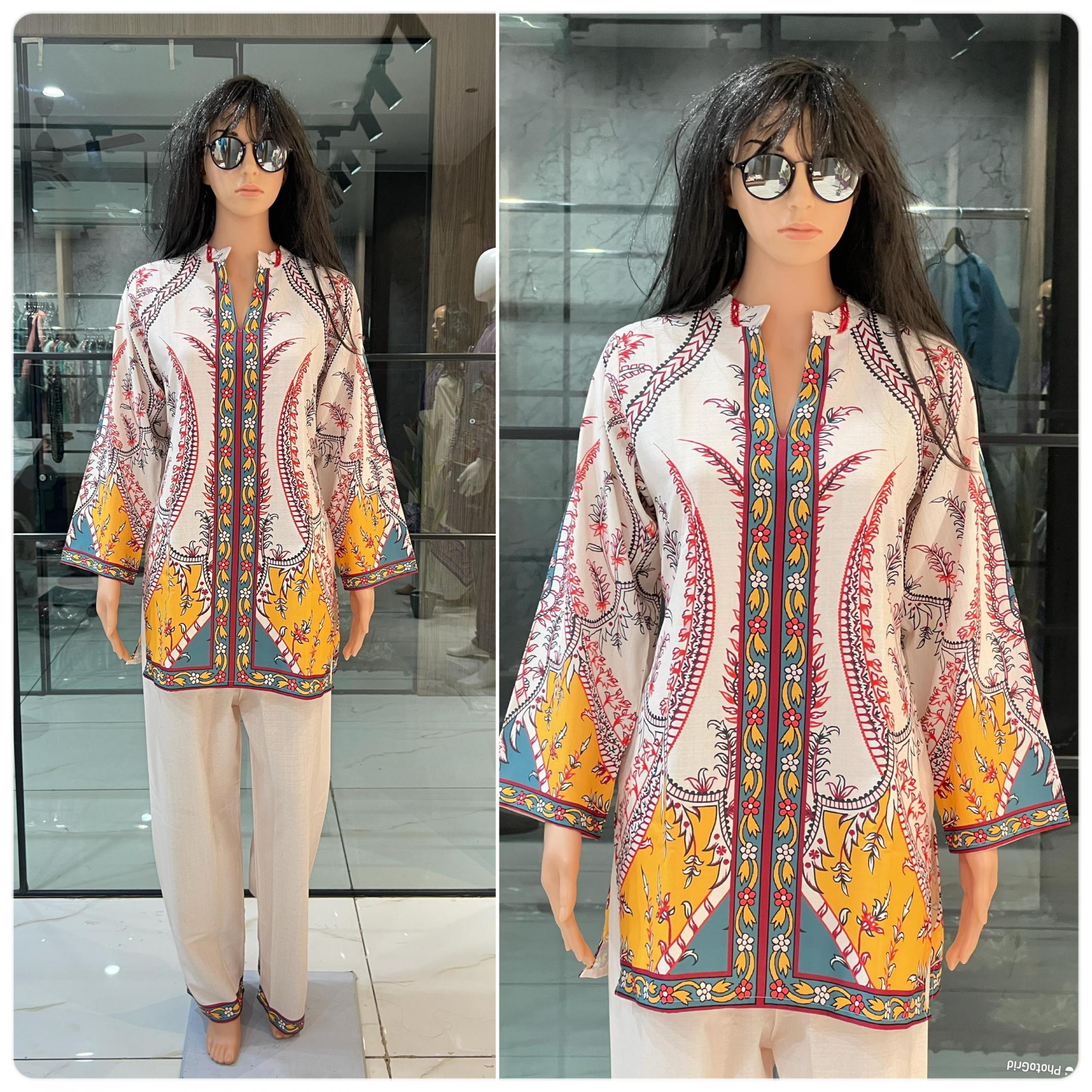 Rozemeen Turkish style Co-ord Set in best 7 design Fabric: Poly linen Size: Length: Rate: : 610/- |