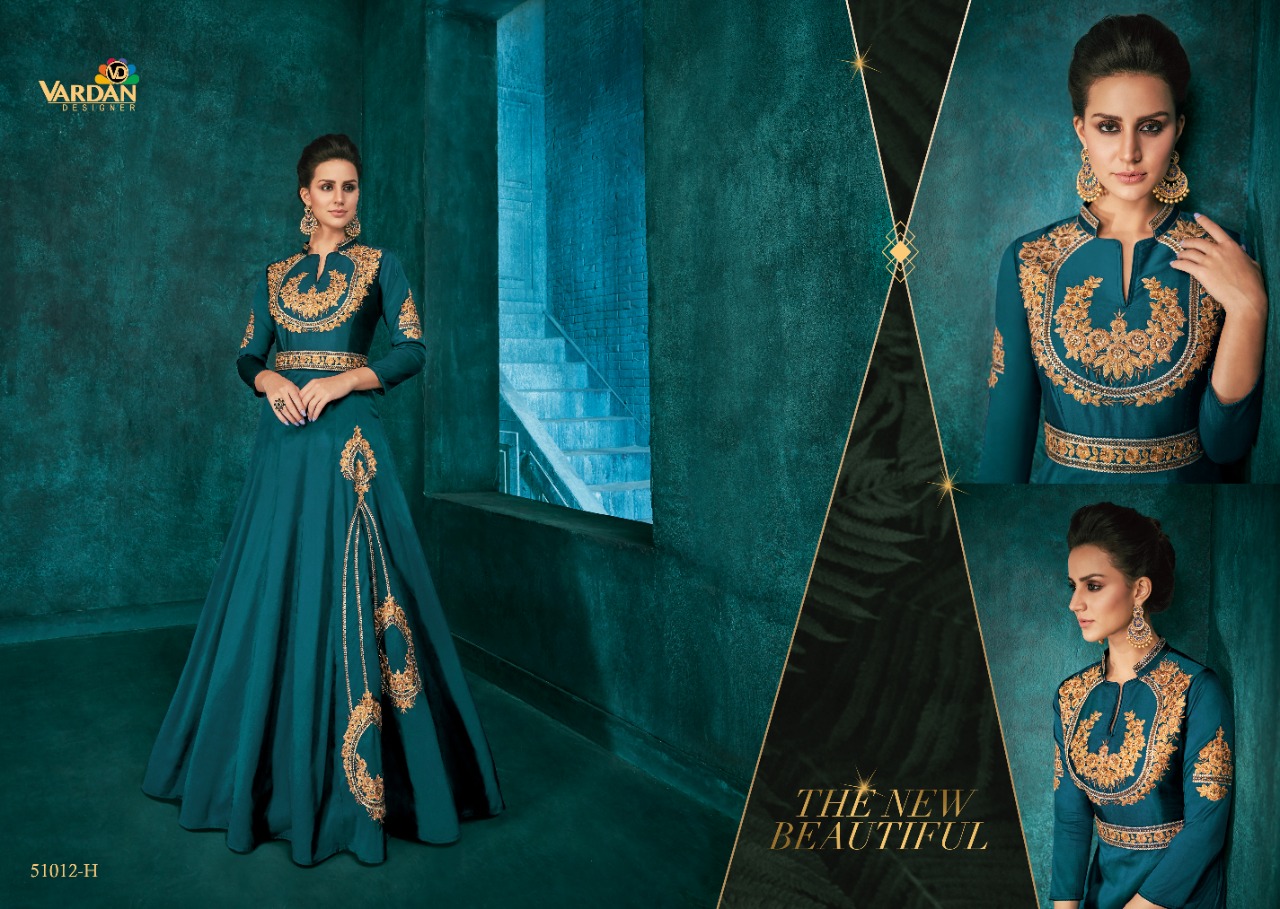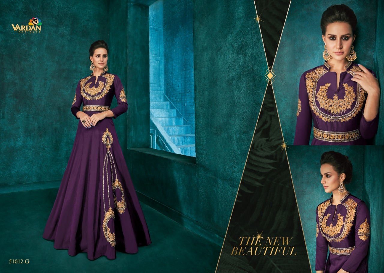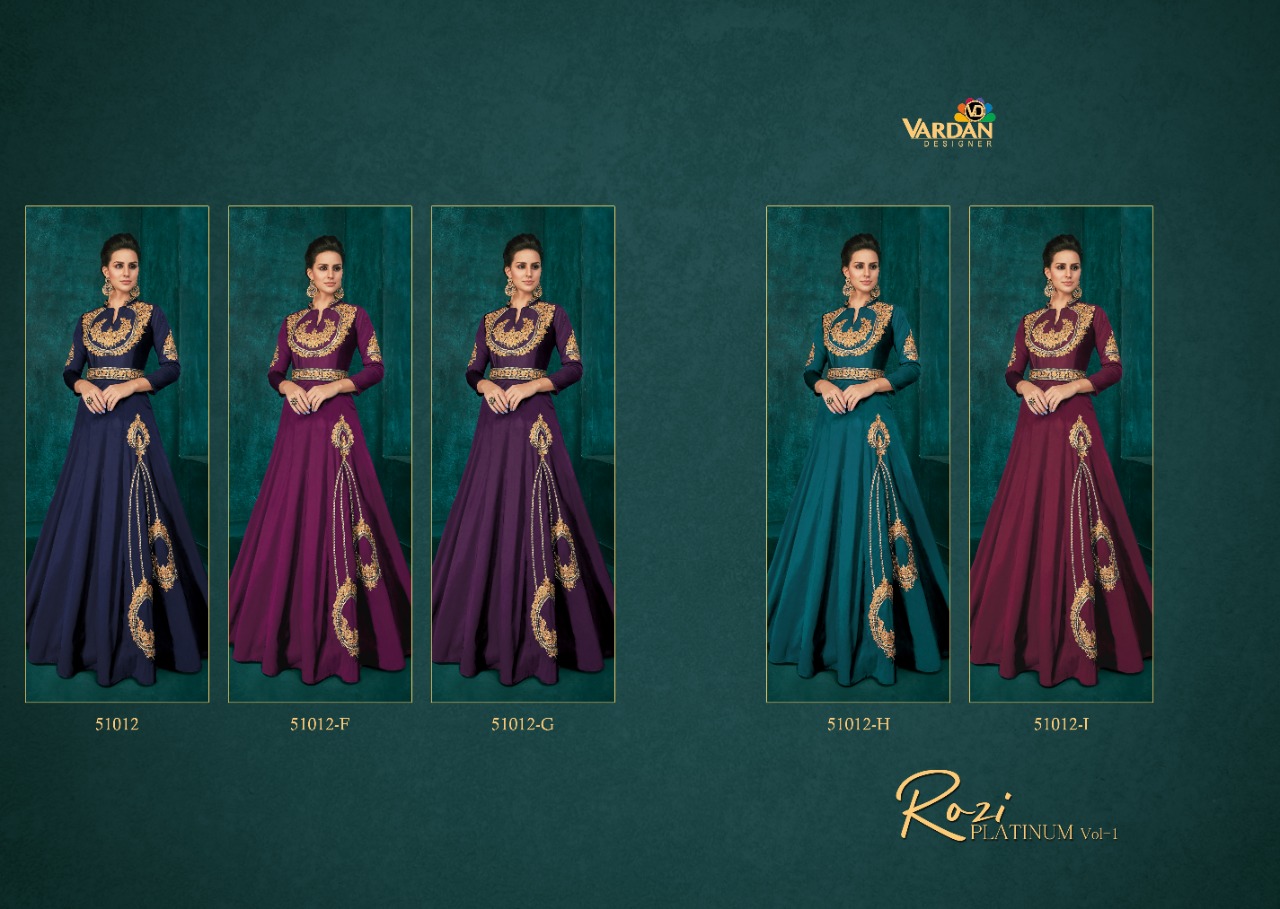 Rozi Platinum By Vardan Silk Embroidery Long Gown Collection