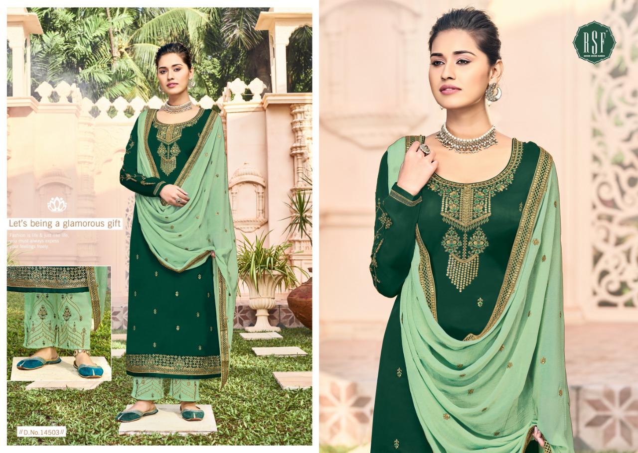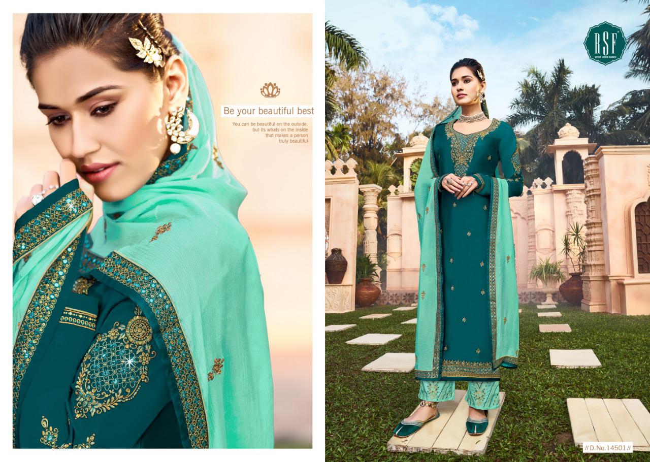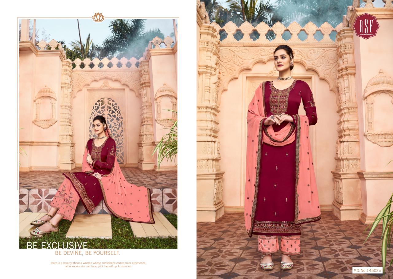 Rsf Launch Ferin Modal Satin Eith Full Embroidery Work Heavy Designer Suit Collection