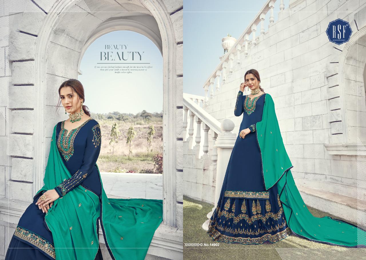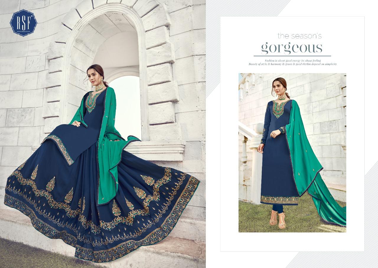 Rsf Present Mandora Nx Satin Georgette Silk Long Designer Party Wear Ghaghra Style Salwar Suit