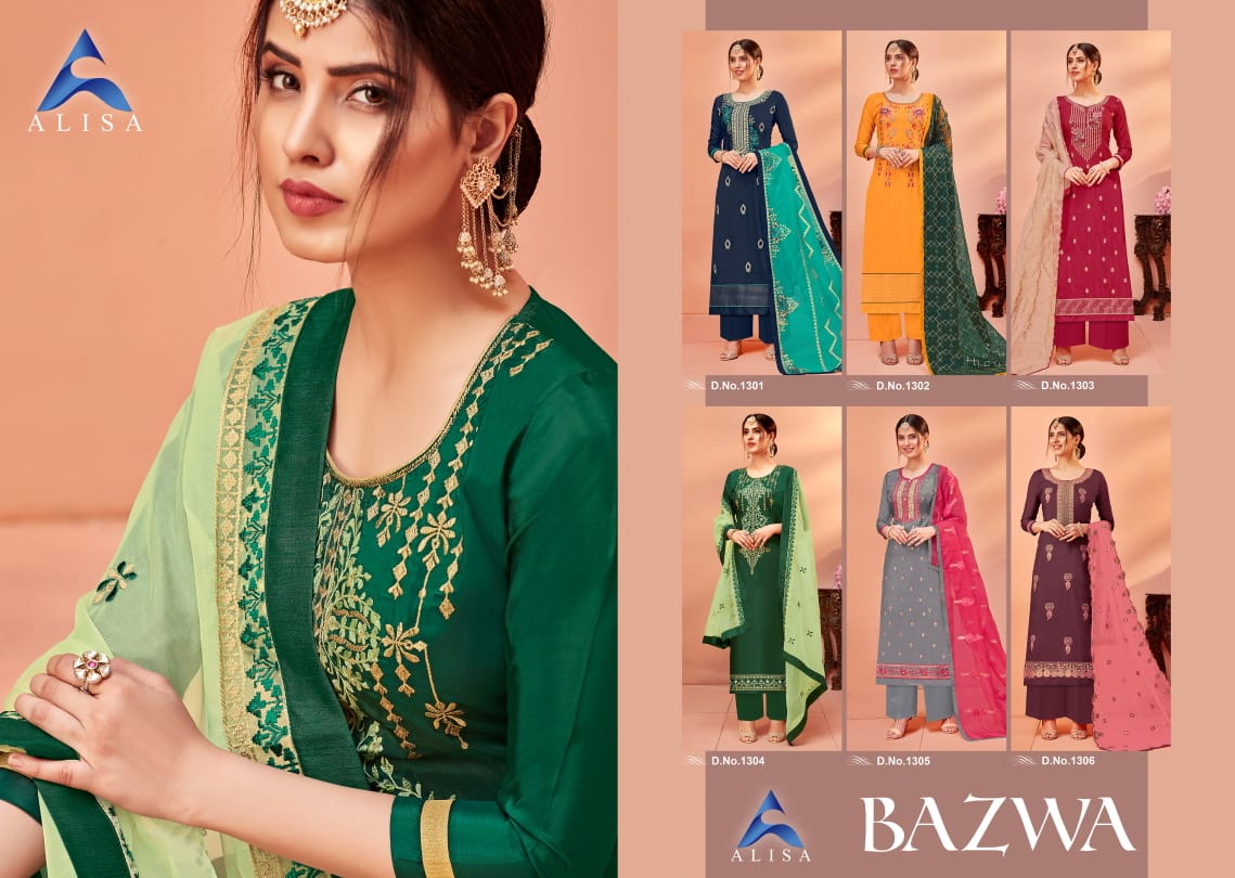 RsfîPresents...... UPADA silk cataloge Best rate & quality Heavy dupatta work 100% Purity in quality Namste sir .... Today we are presenting UPADA silk with heavy organza dupatta cataloge..... This 6 straight suit having fine embrodery with diamnond work on top..... Organza Heavy dupatta work with four side border lace...... Description of 6 Design â¤Name:- BAZWA⤠*1-TOP:-Poly UPADA silk long suit With heavy work & Additional diamond * 2-Bottom:japan santun(2.5) 3-Dupatta:-Organza heavy dupatta work & fourside lace 4-Special:-Karwa specialâ 5-Design:- 6 Pcs 6-Rate:-995/- 7-Dispatch:-8 OCT 2018 |
