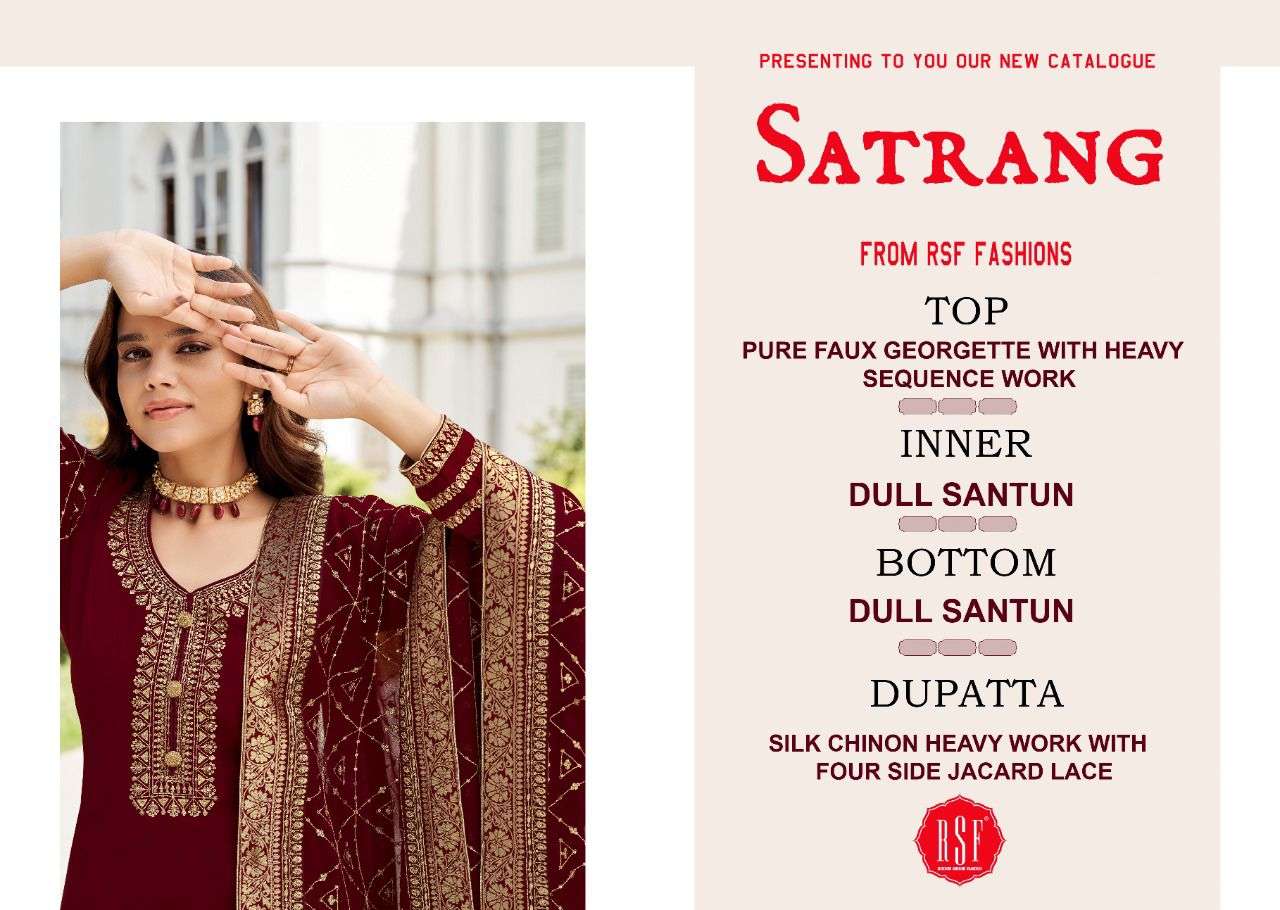 Description:-SATRANG    *1-TOP:-Pure Faux Gorgette with embro, neck , sleeve , daman sequence work * 2-Bottom:-Dull santun 3-Inner:- Dull santun 4-Dupatta:-Pure chinon silk with heavy work & Embrodery border on fourside pallu with Jacard border 5-Design:- 6 Pcs 6-Rate:-1395/- 7-Dispatch- 8 Sep 2021 Set to set SPECIAL-WORK & COMBINATION Having limited stock Please order now Regards:- Riddhi siddhi fashion Rsf® surat |