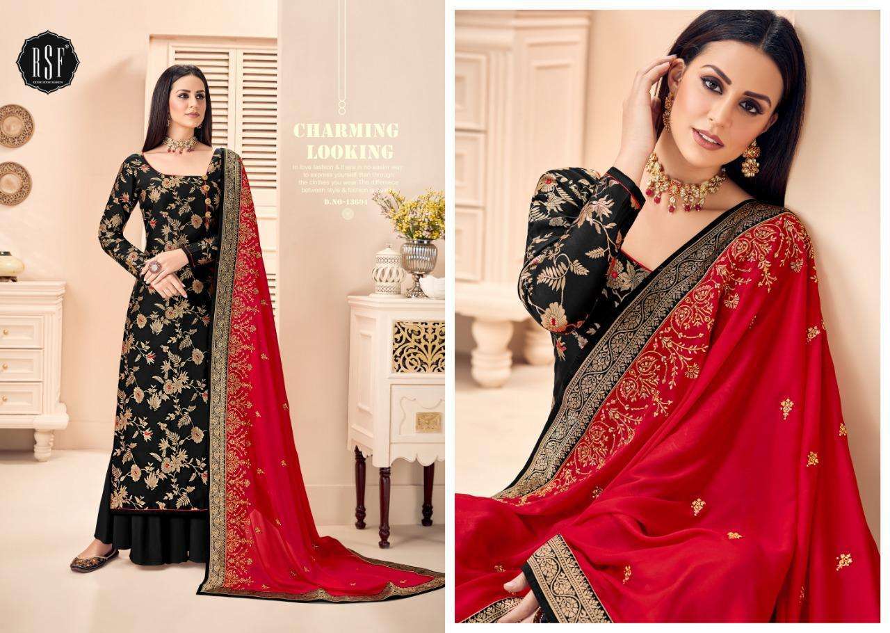 rsf swag vol 1 13604 single black colour unstitch long salwar kameez