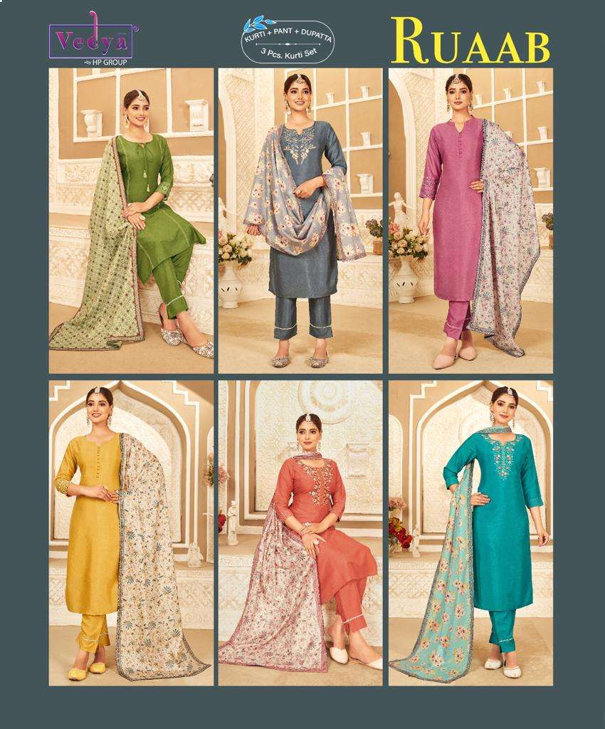 ruaab by vedya readymade embroidered work kurti with pant and dupatta