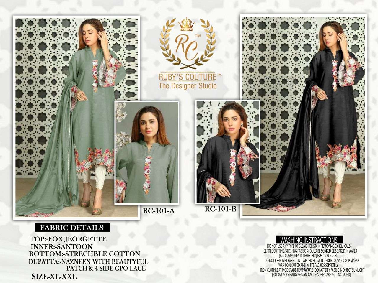 Rubys Couture Presents Latest Collection Launched on 18-07-2022. Presenting Beautiful collection of 4 PCS with Full Stitched XL,XXL .