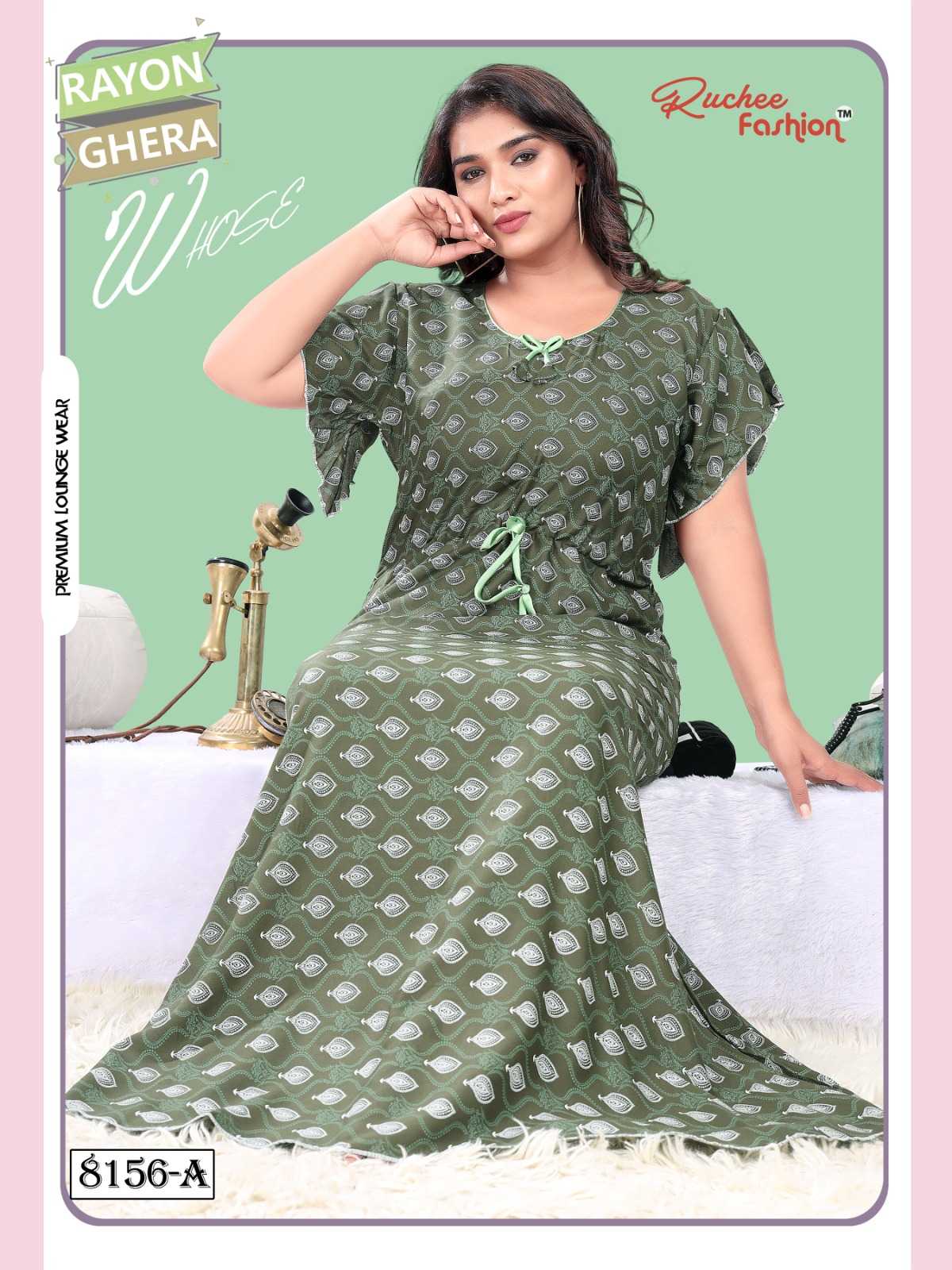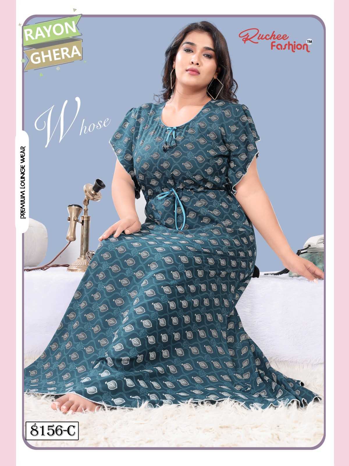 RUCHEE FASHION 8156 & 8159 Design RAYON GHERA FANCY SLEEVES NIGHT GOWN SIZE- FREE SIZE PC - 8 |