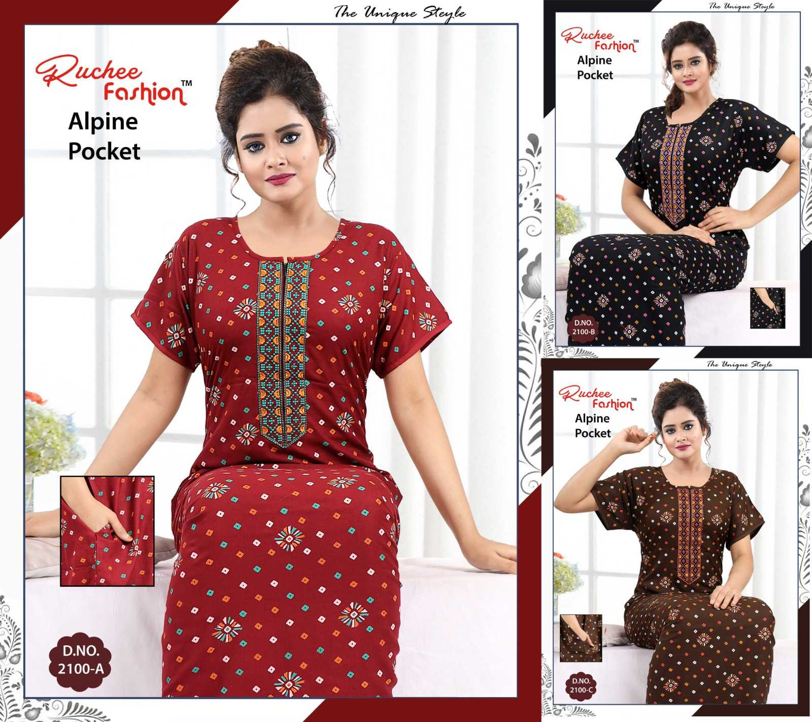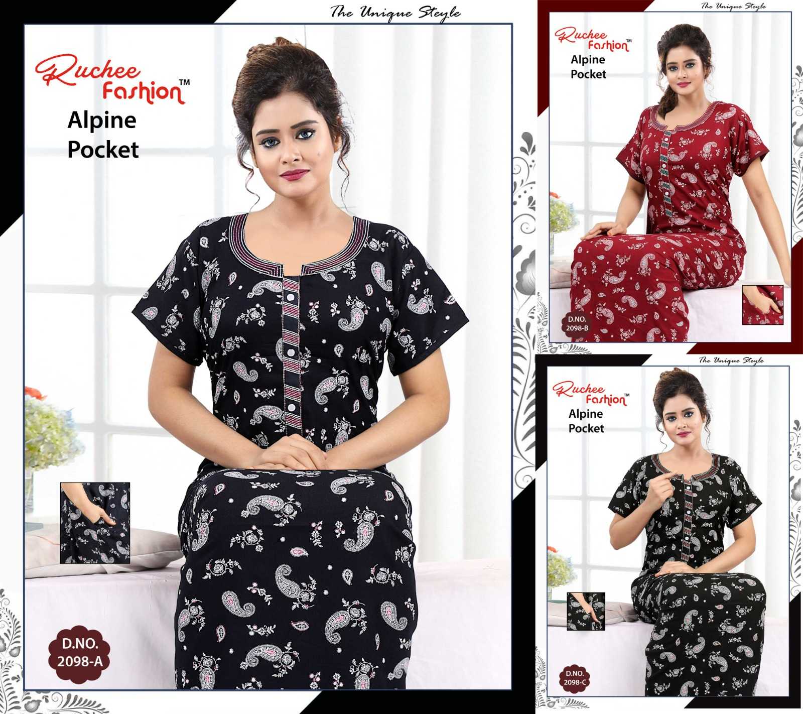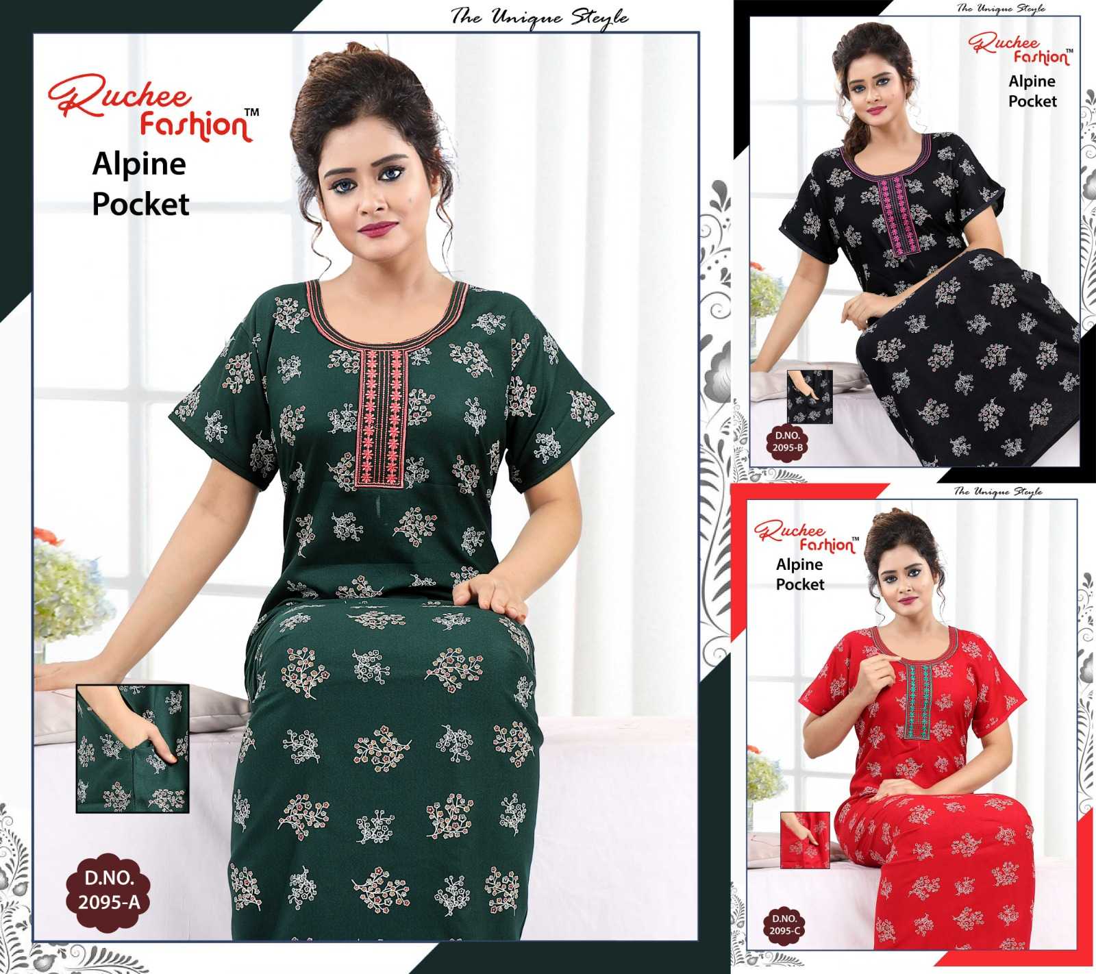ruchee fashion alpine neck embroidery 2095-2100 fancy ladies night wear