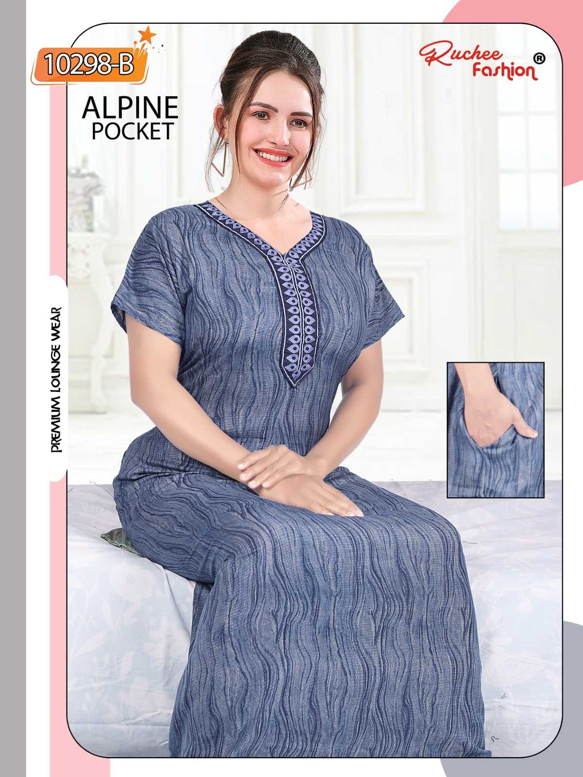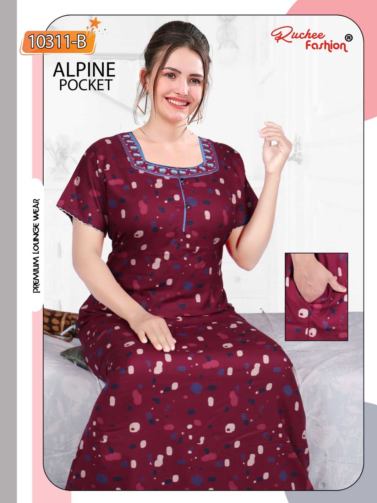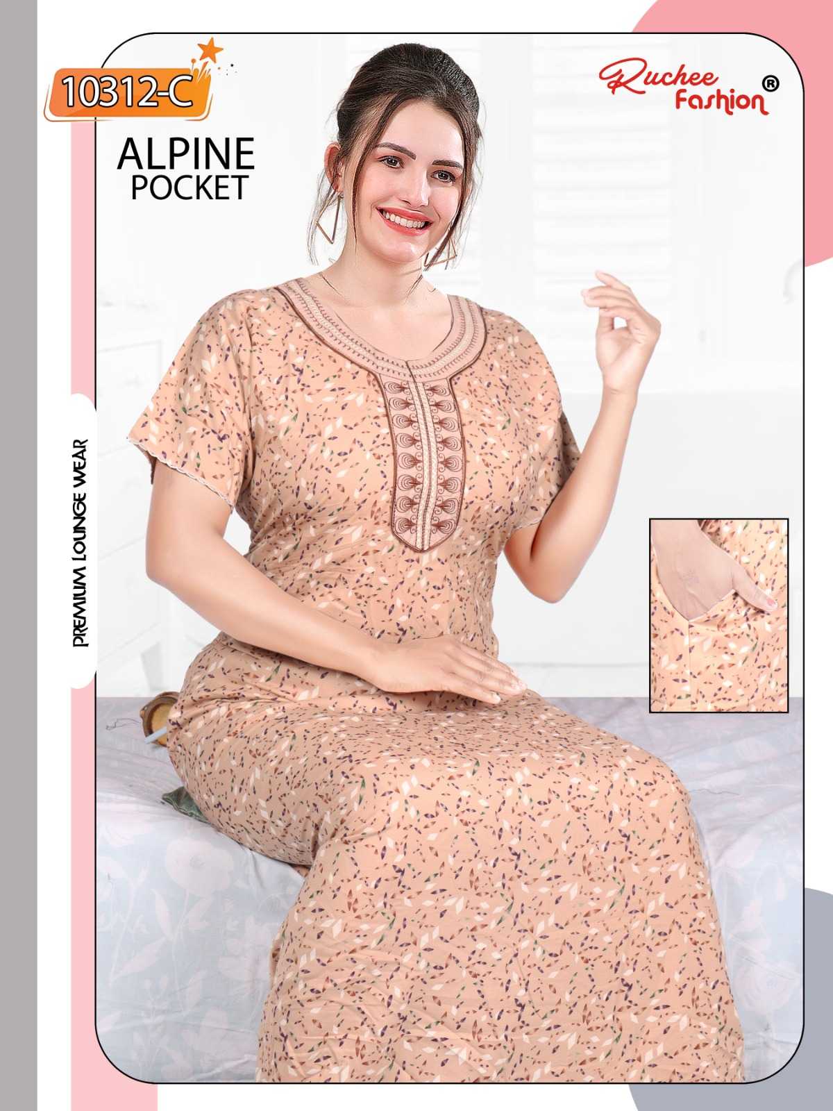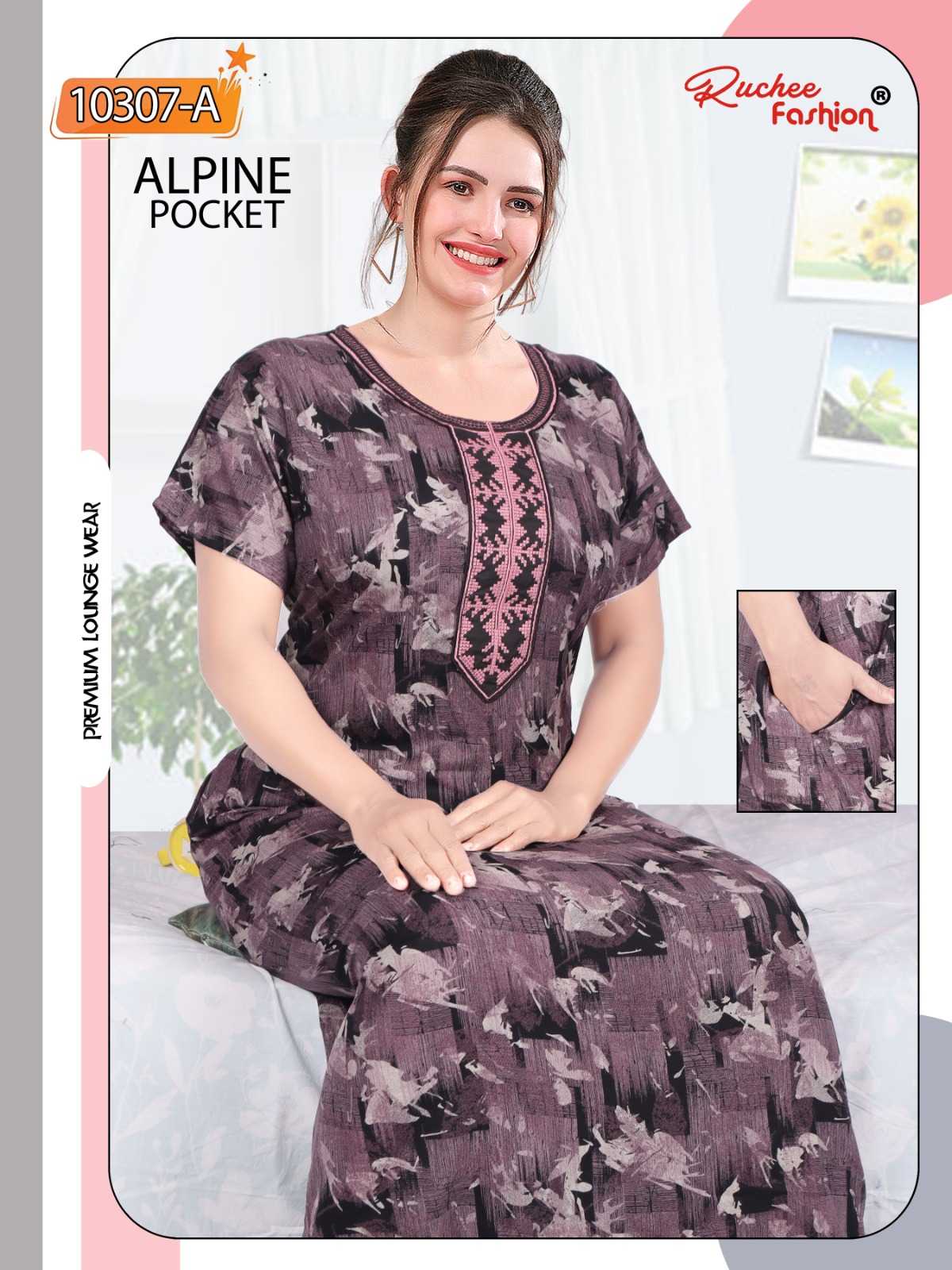 ruchee fashion alpine pocket embroidered full stitch women nighty