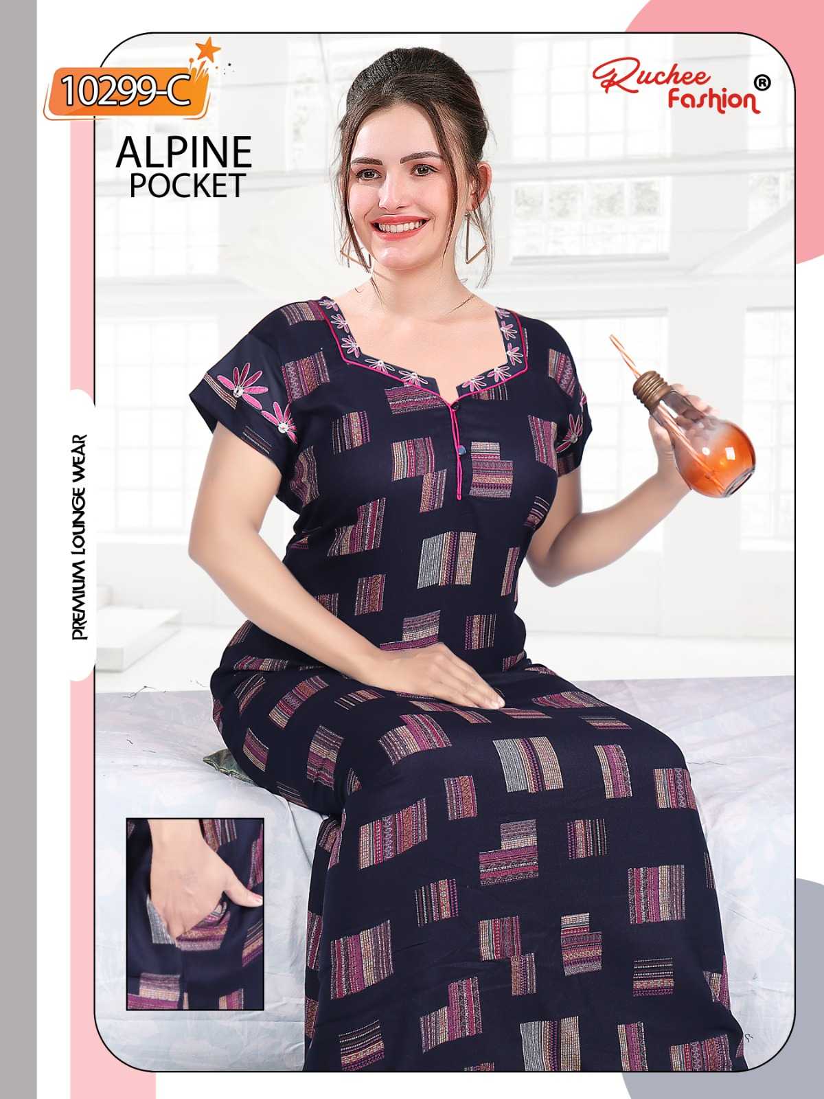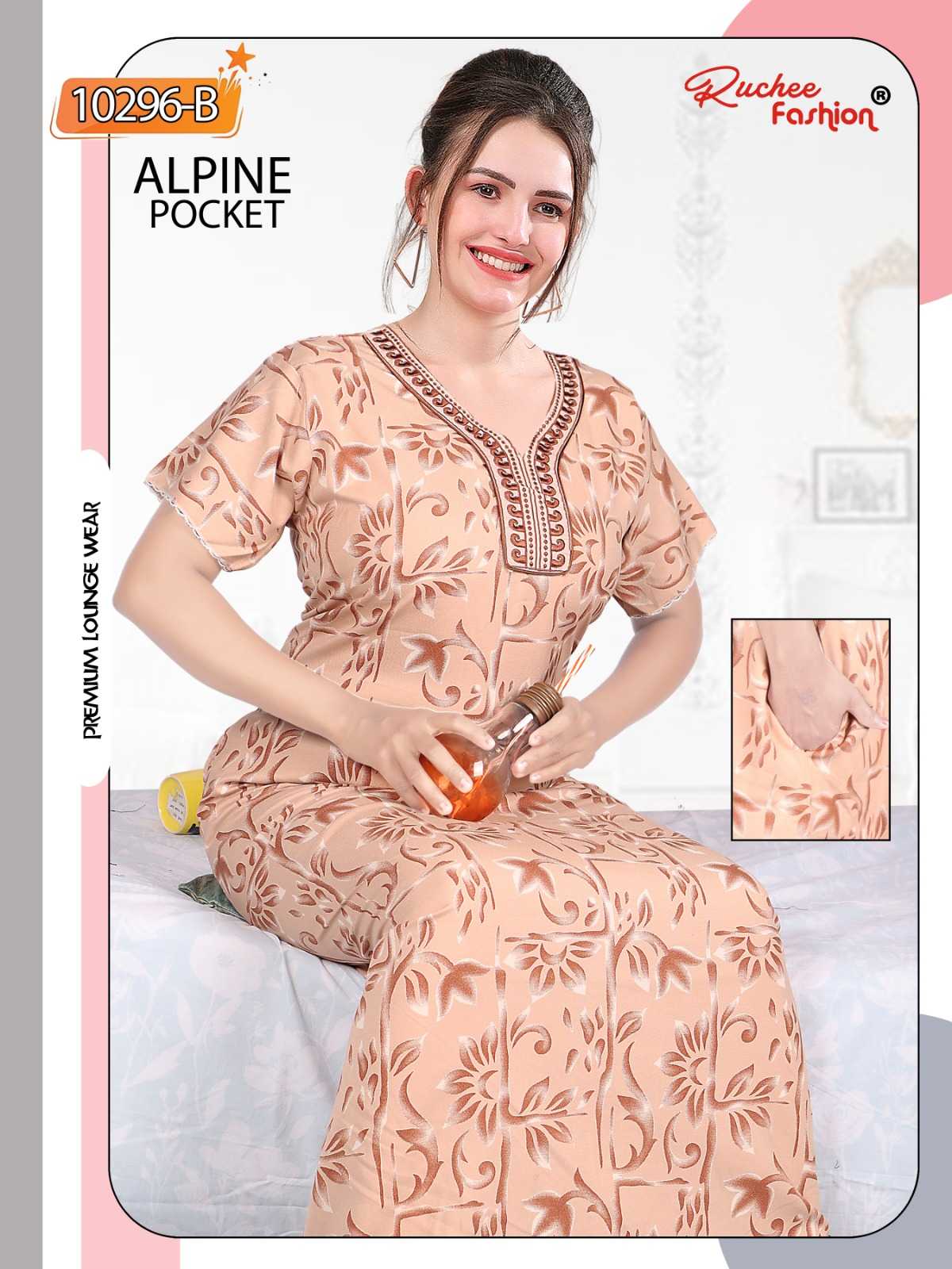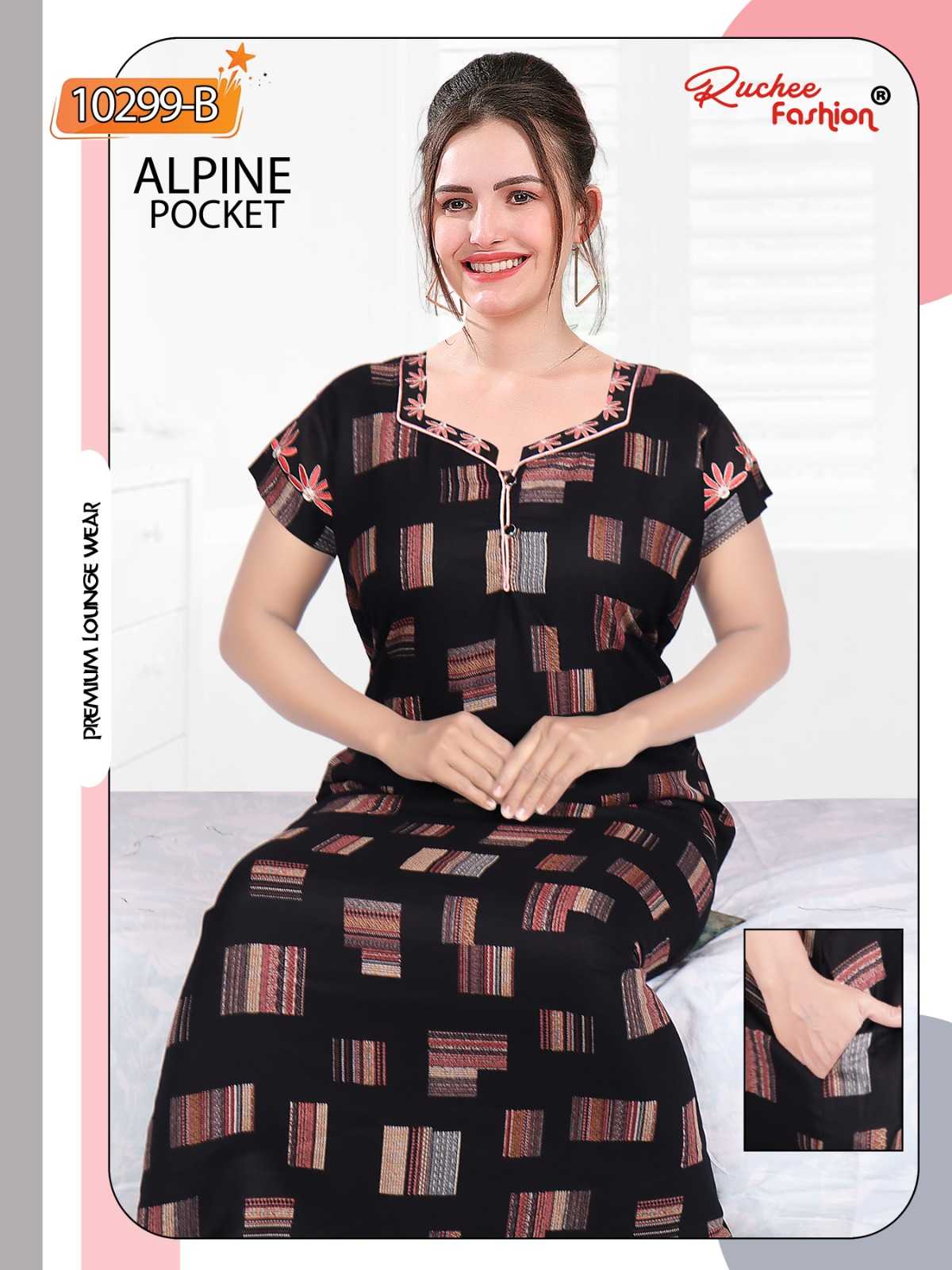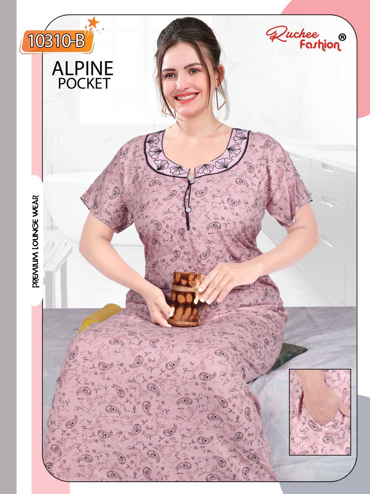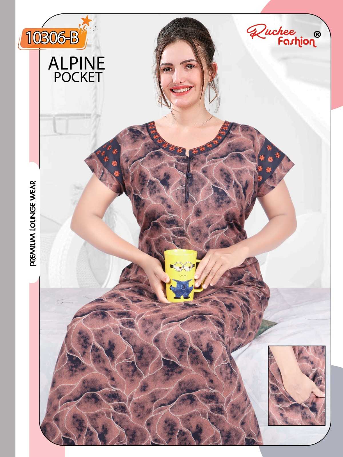 ruchee fashion alpine pocket embroidered full stitch women nighty
