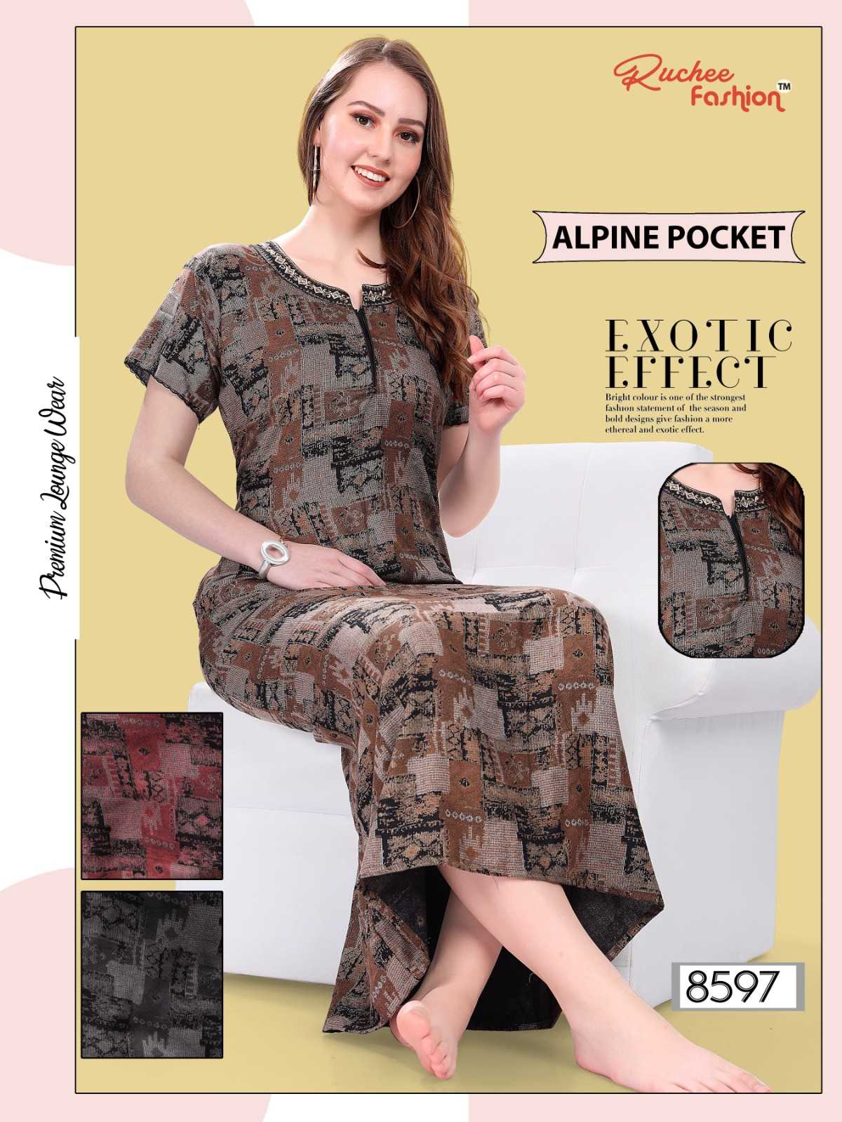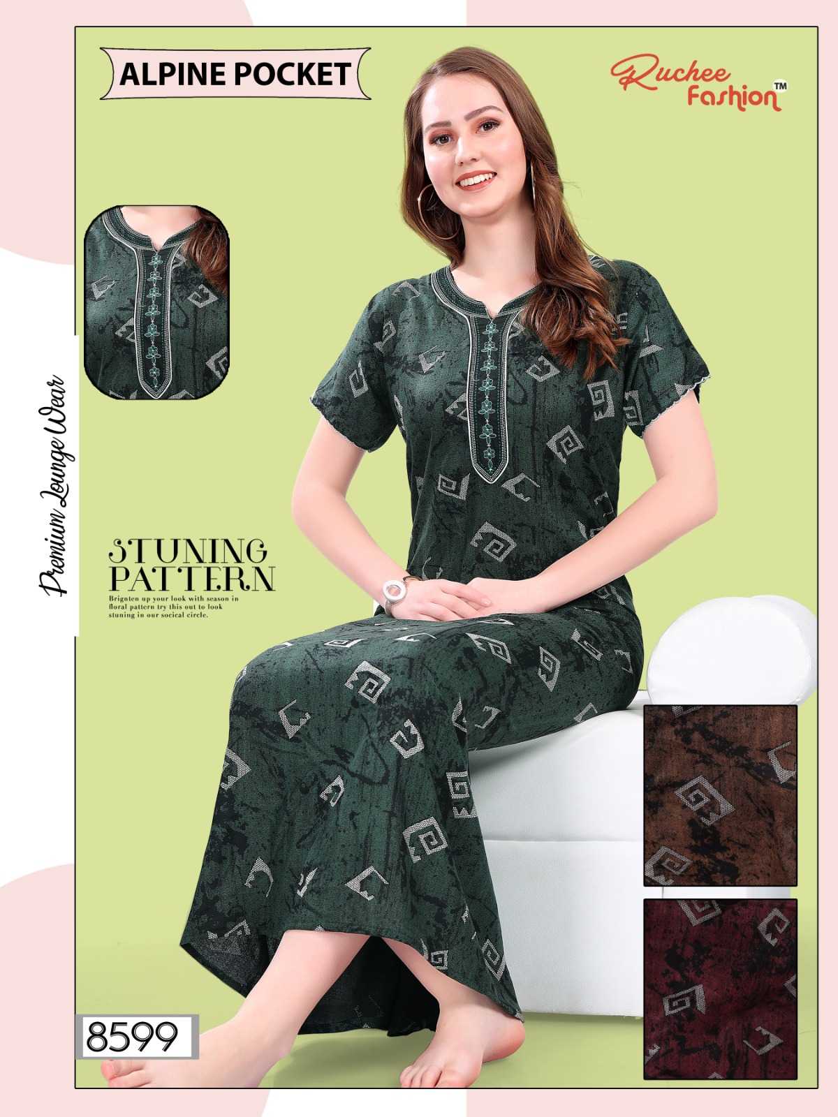 ruchee fashion alpine pocket embroidery 8597-8600 comfortable wear nighty