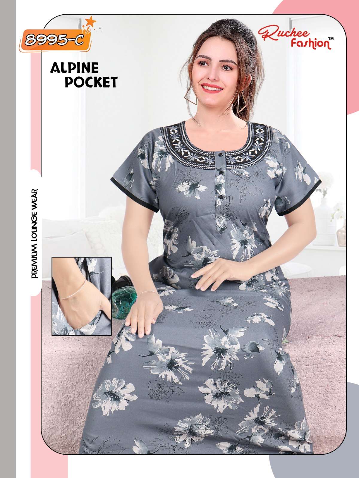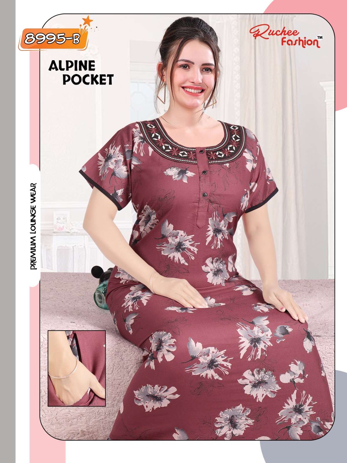 ruchee fashion alpine pocket embroidery 8995 daily wear nighty gown