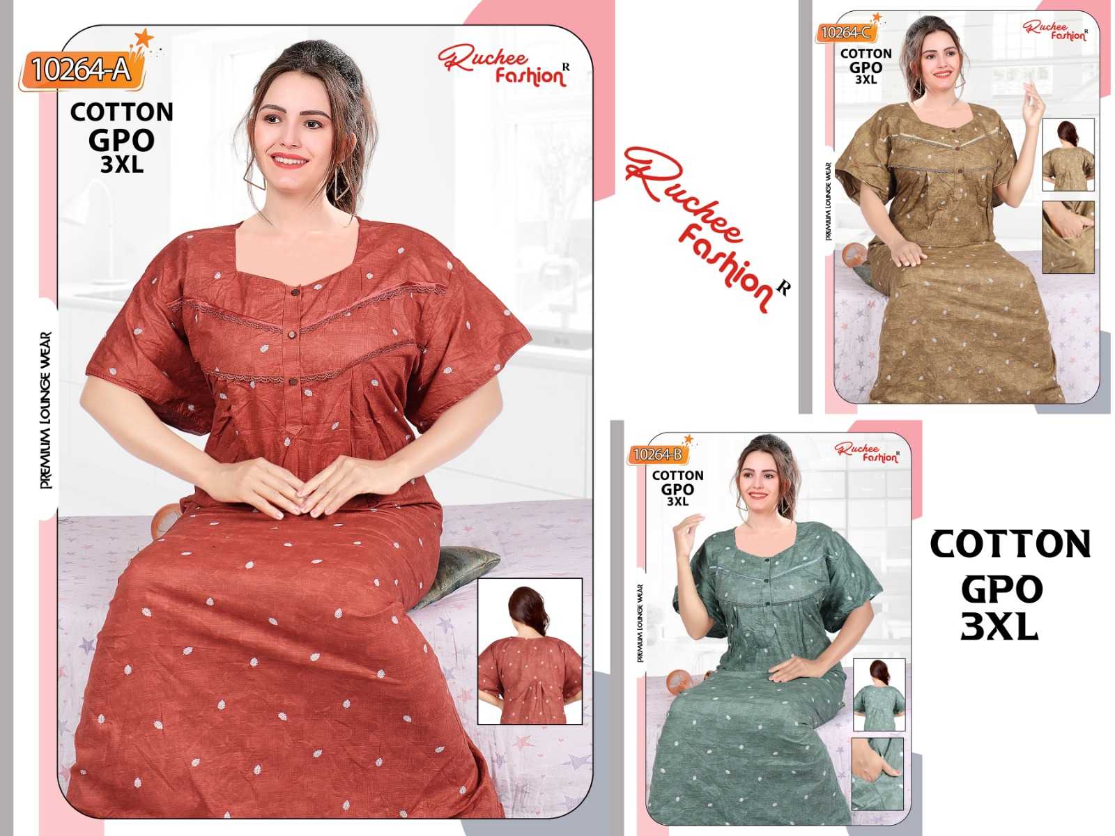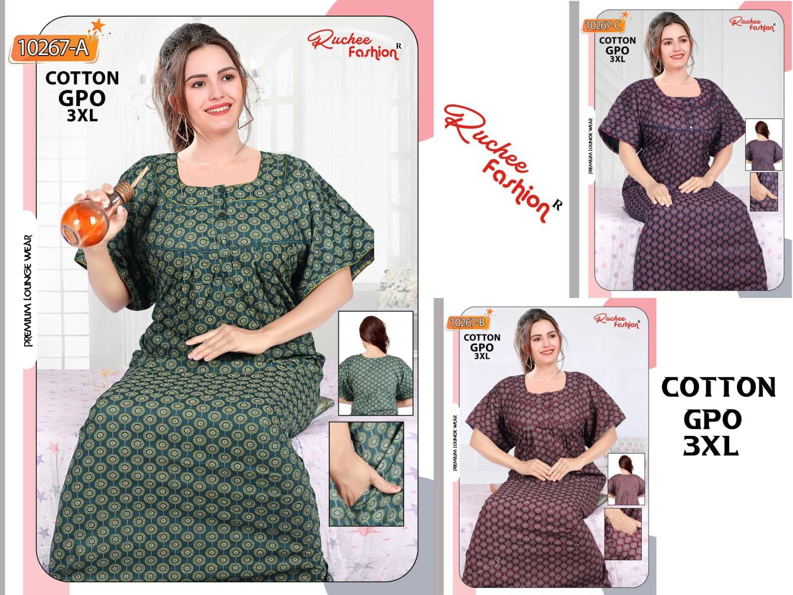 ruchee fashion cotton gpo new design full stitch women nighty collection