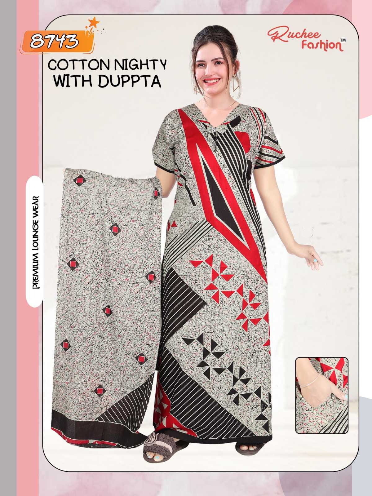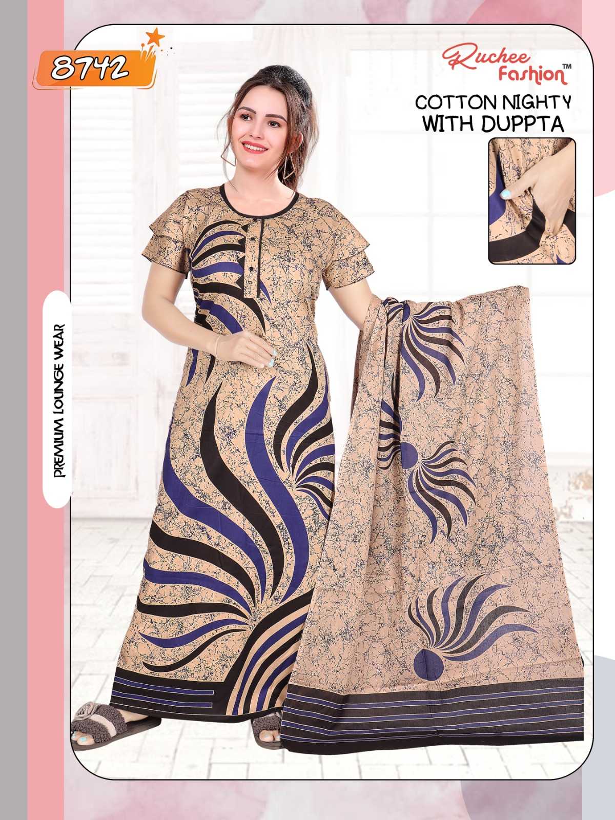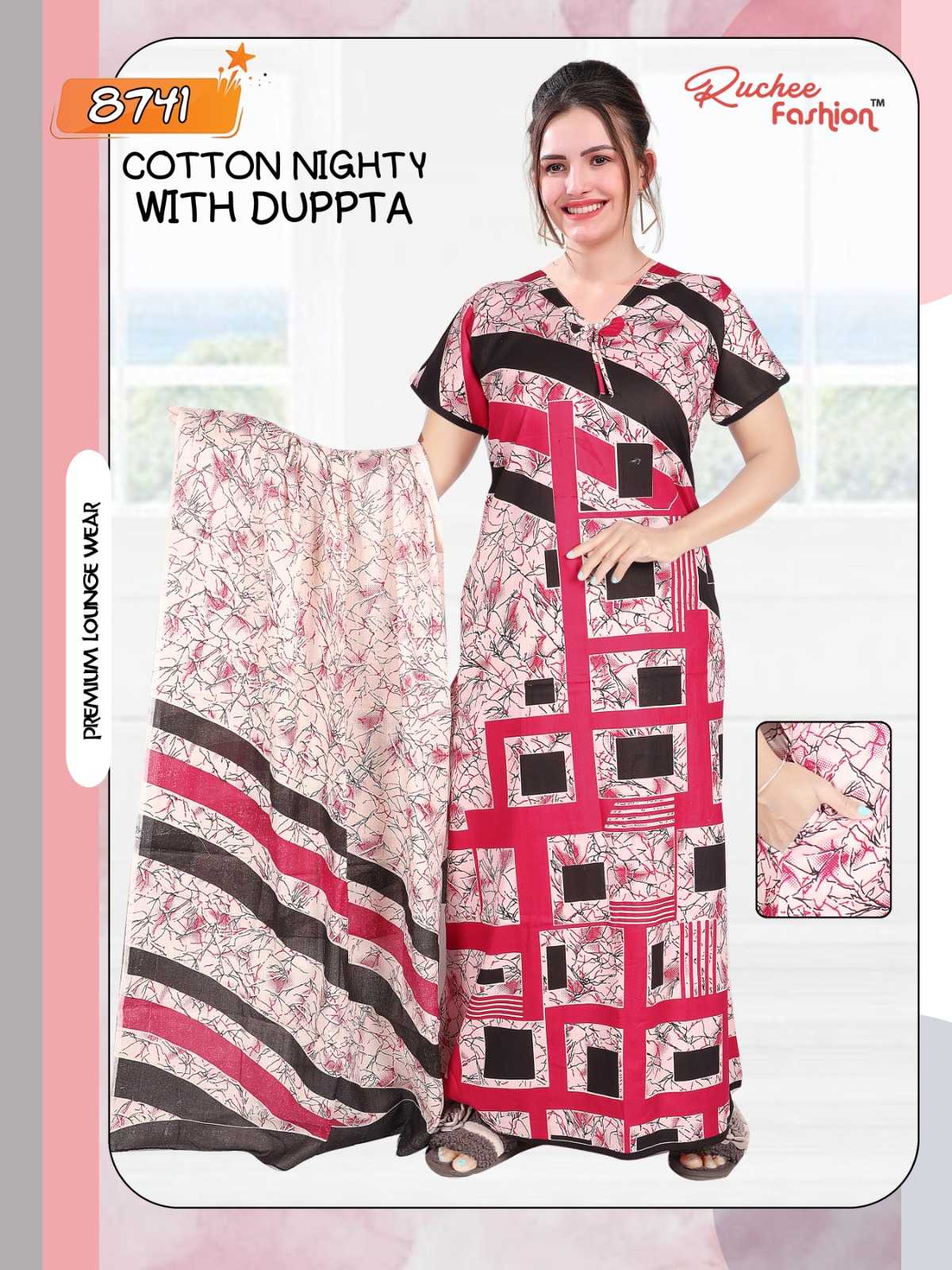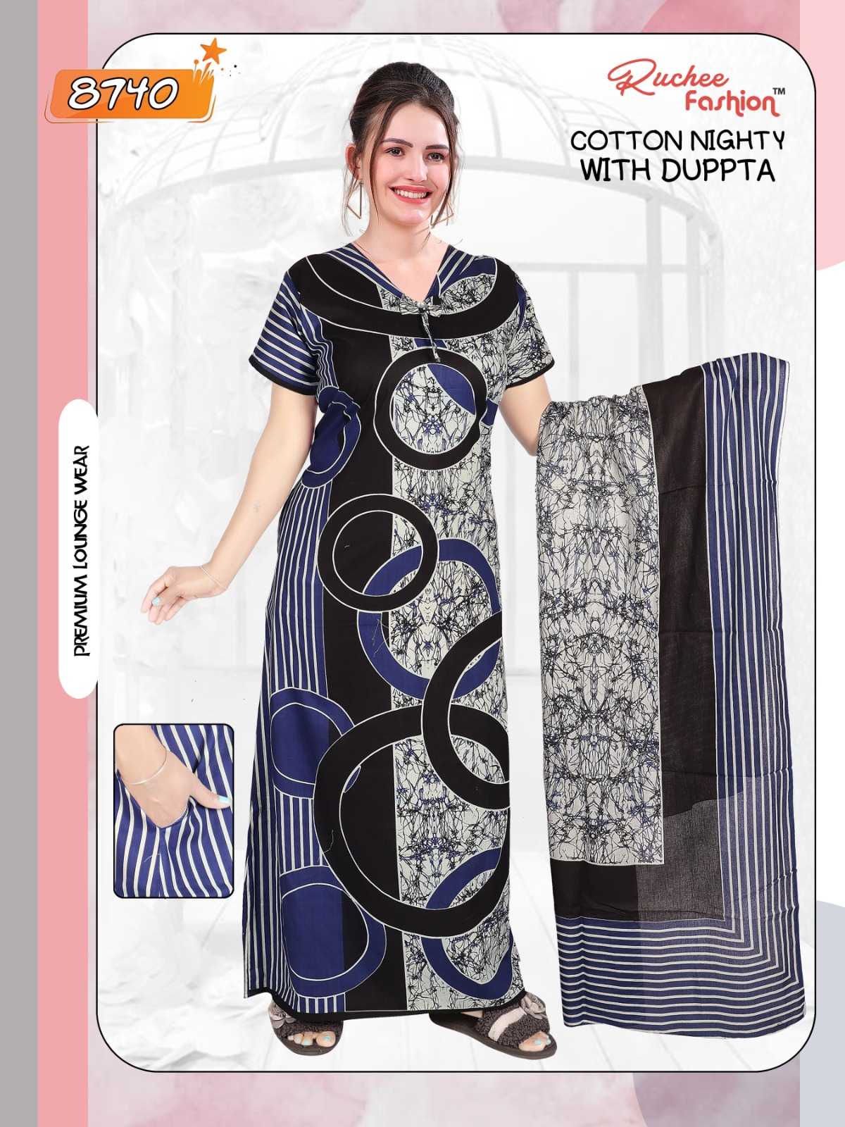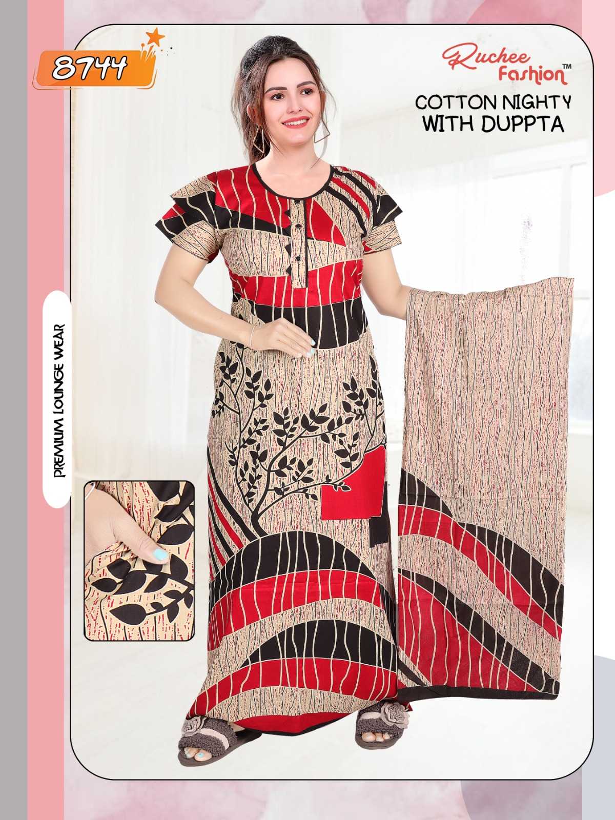 AVAILABILITY: On Booking COTTON NIGHTY WITH DUPATTA 8740-8745
