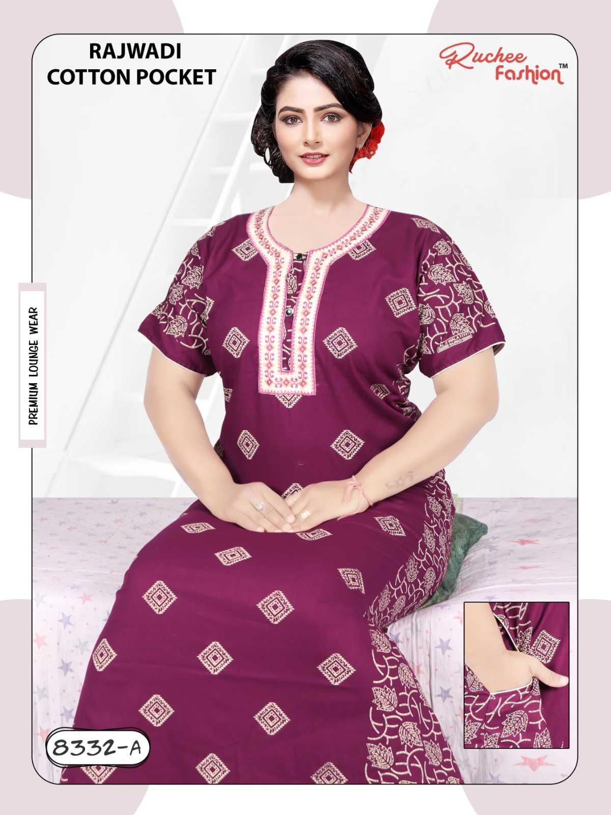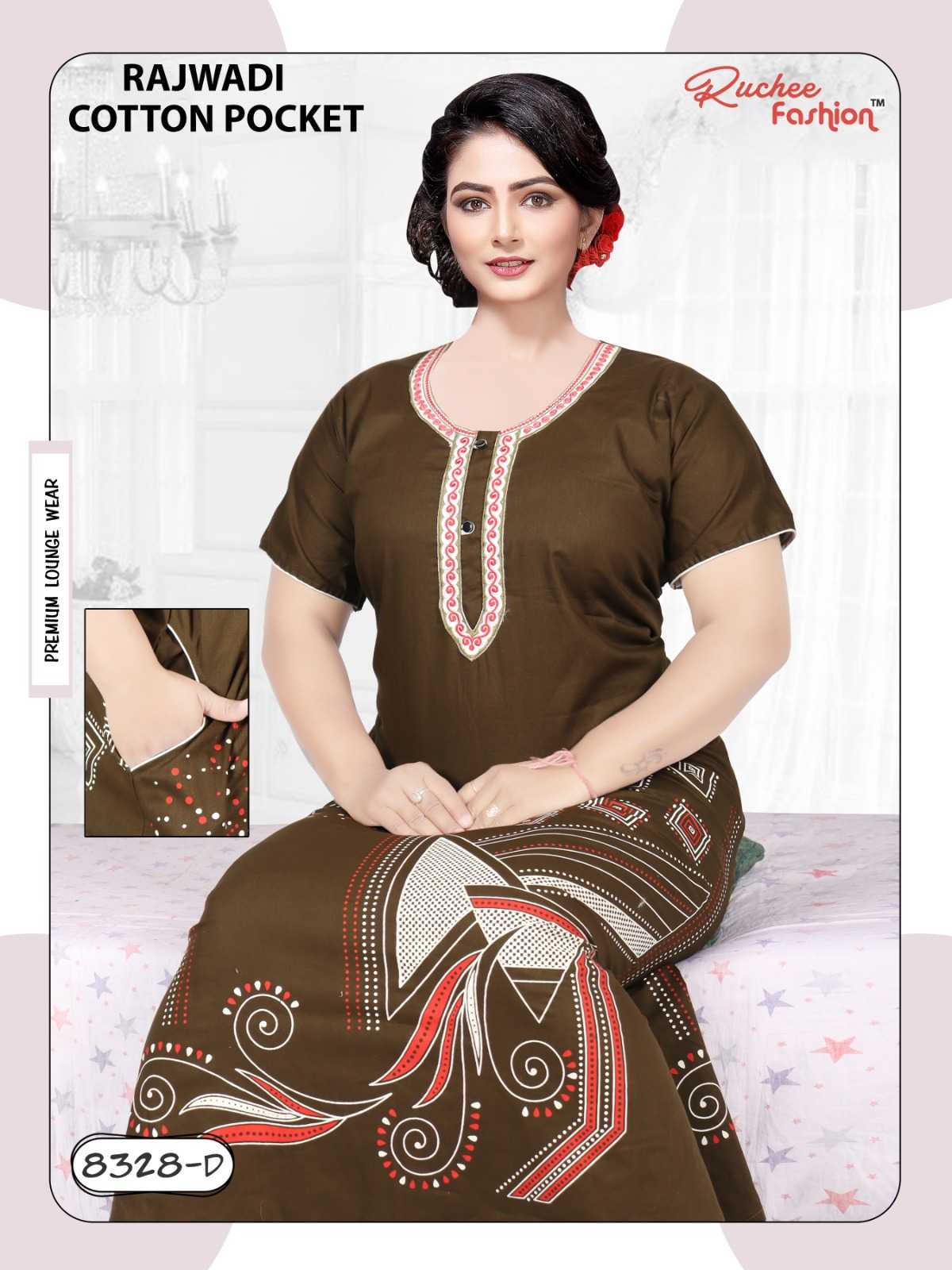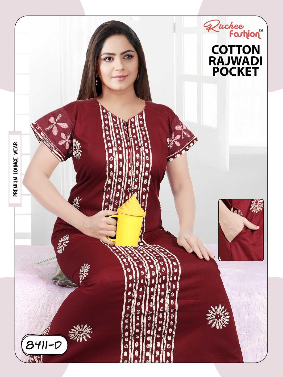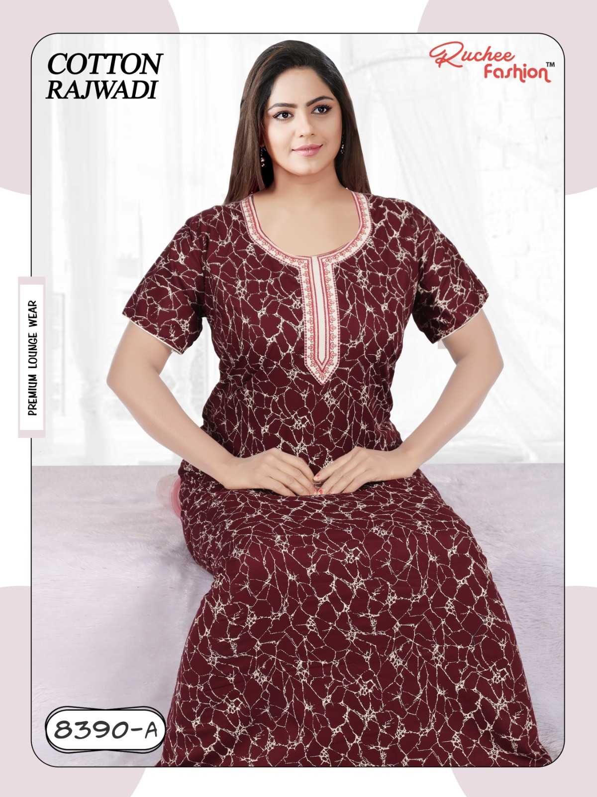 ruchee fashion cotton rajwadi neck embroidery women nighty