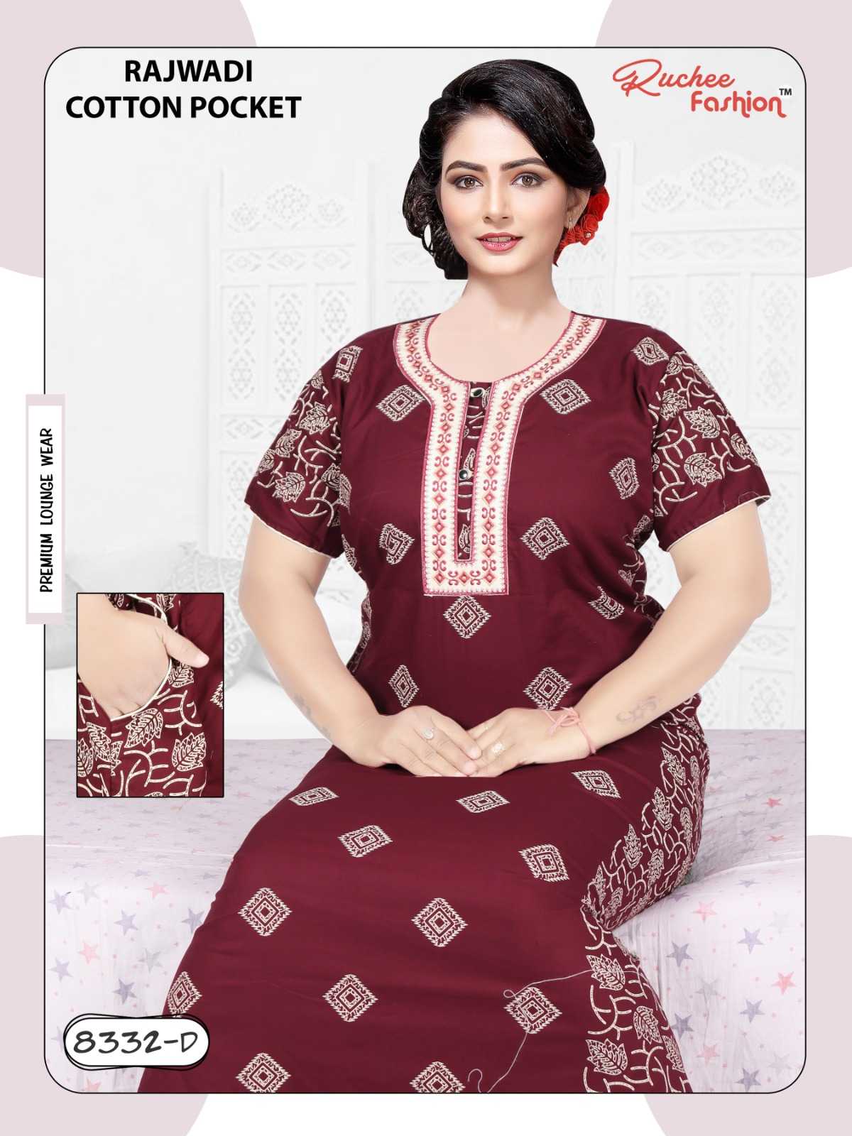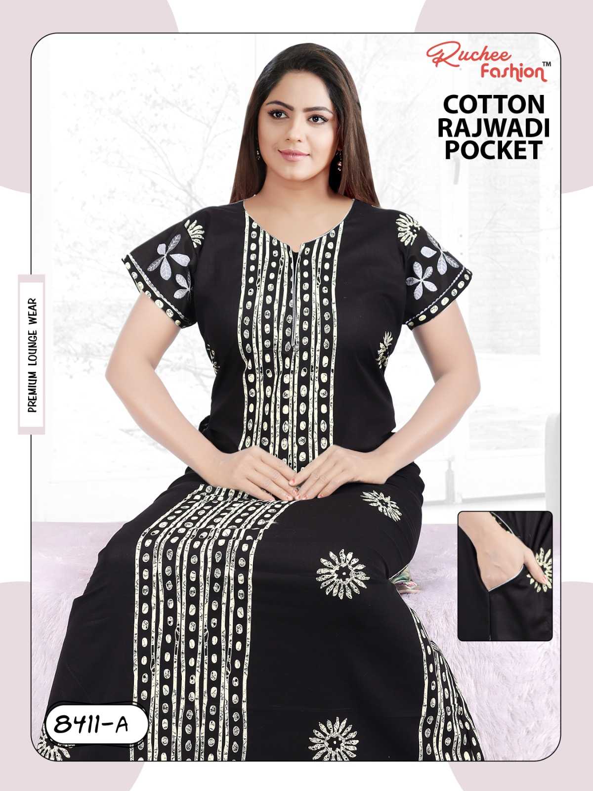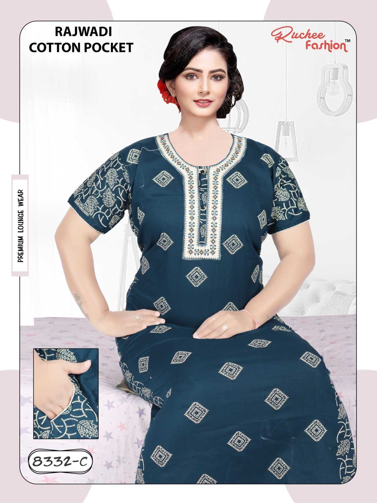 ruchee fashion cotton rajwadi neck embroidery women nighty