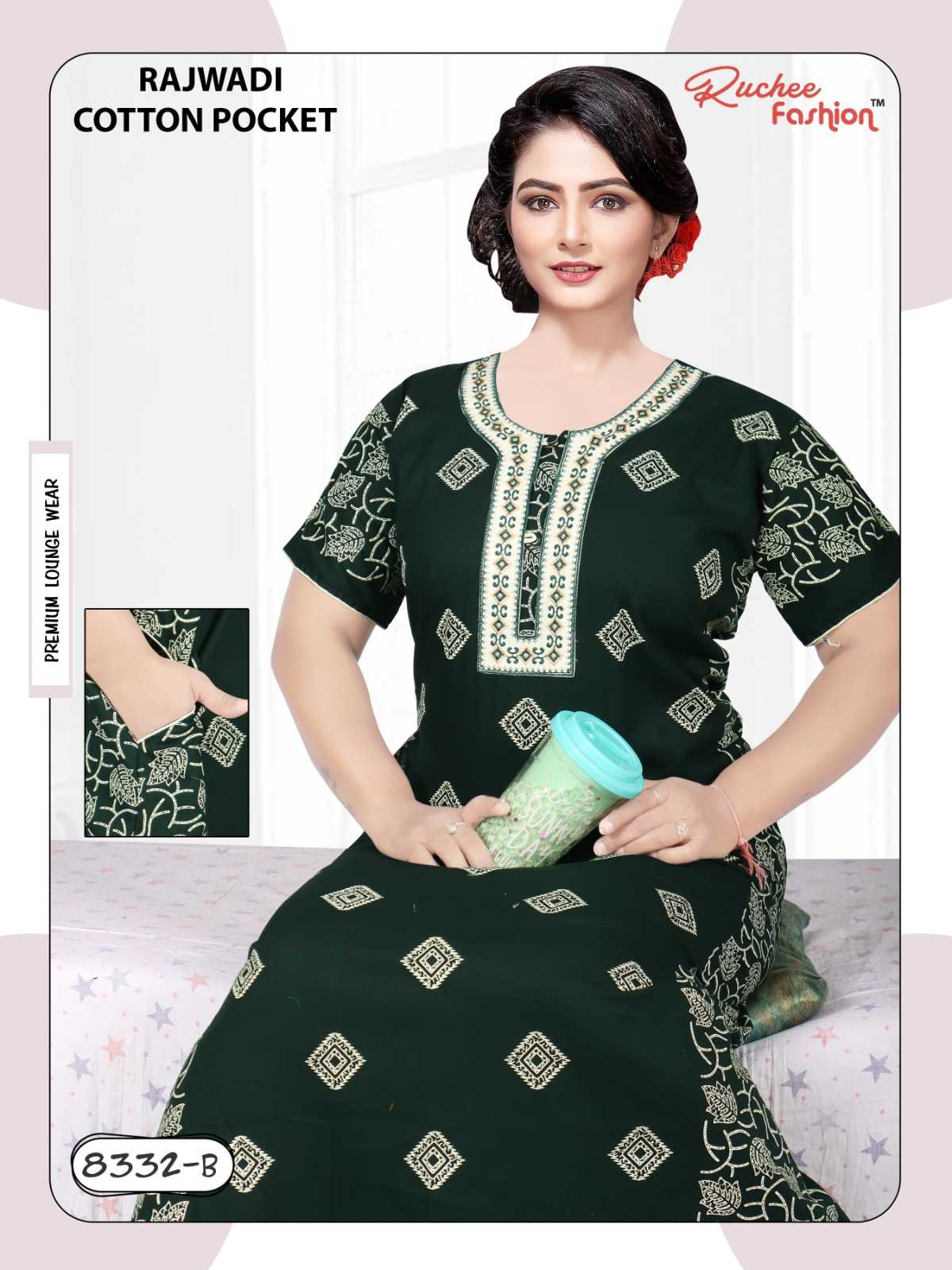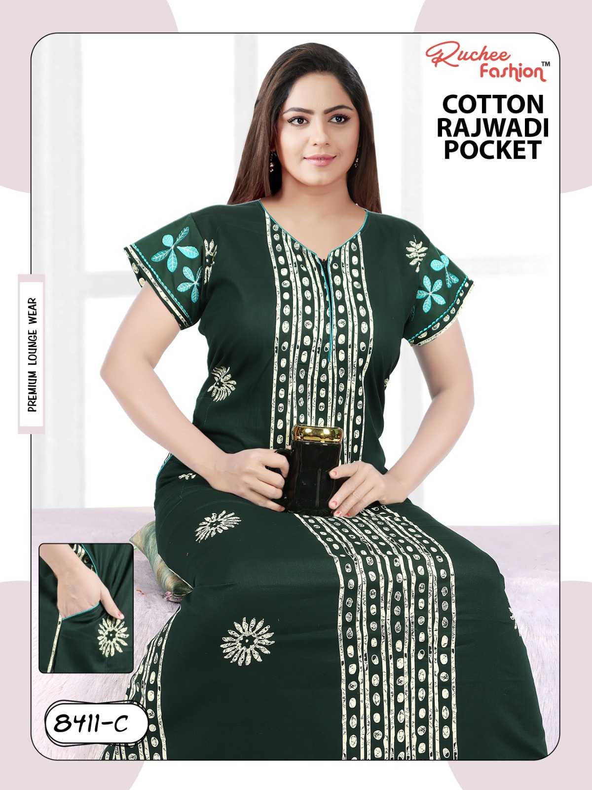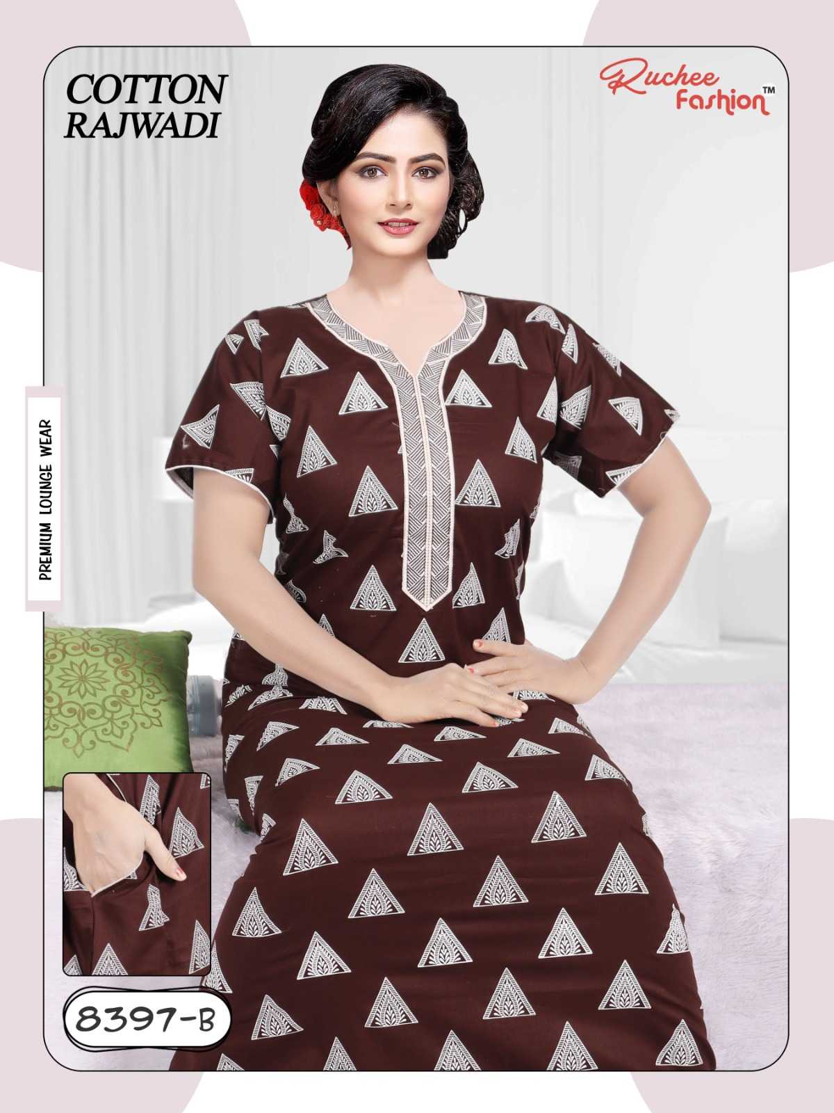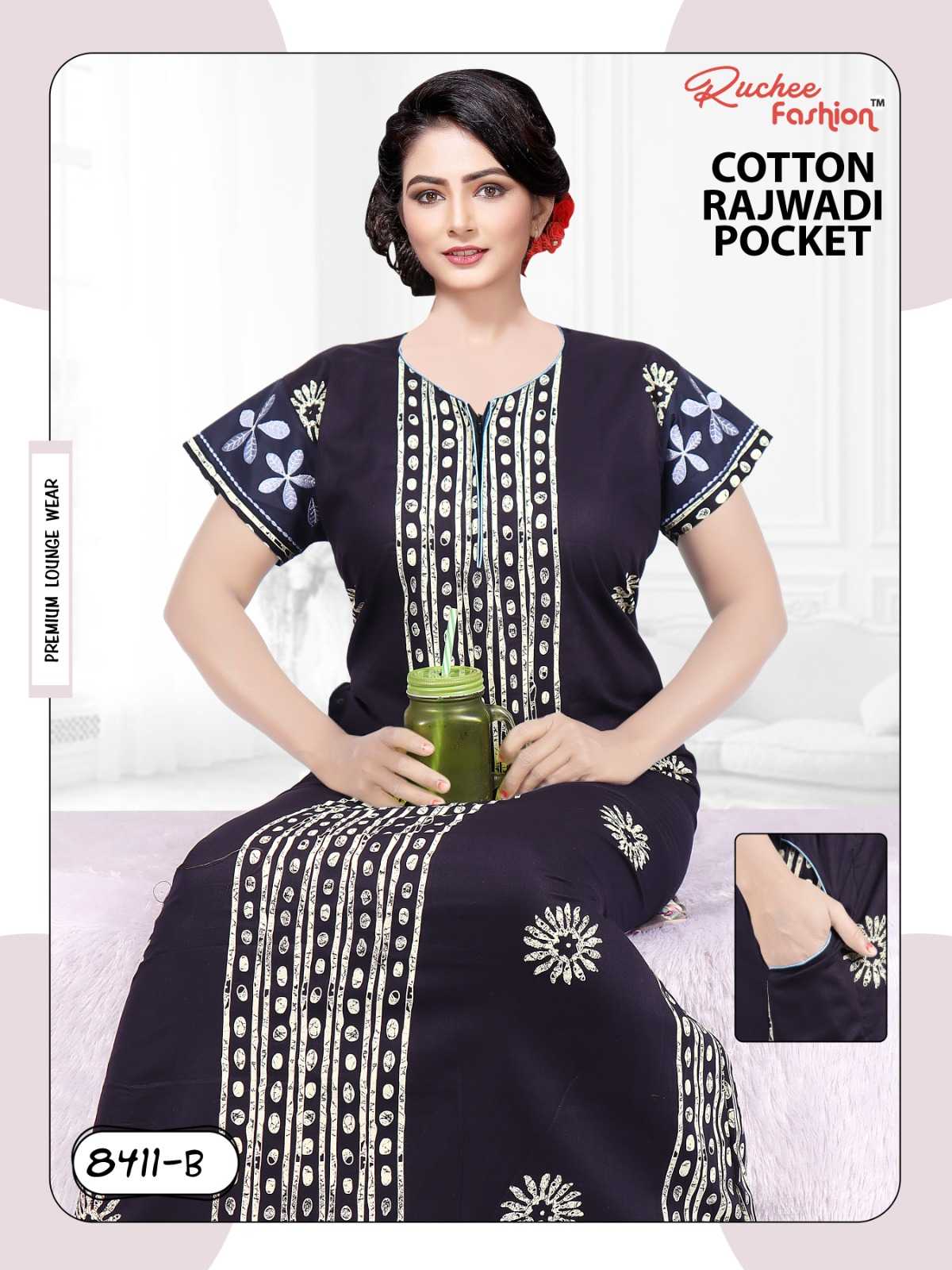 ruchee fashion cotton rajwadi neck embroidery women nighty