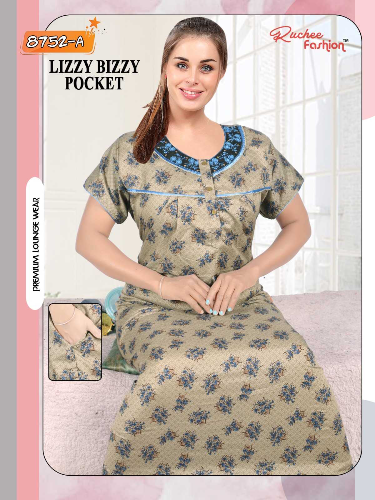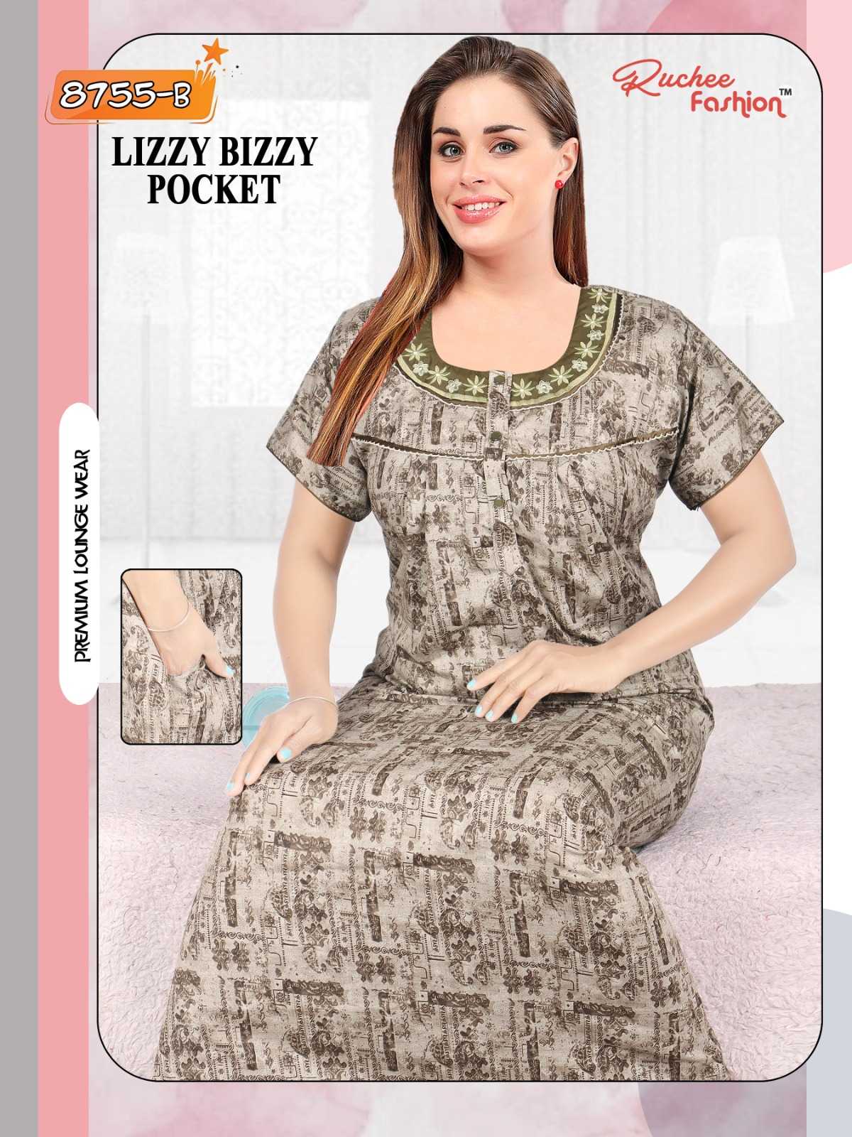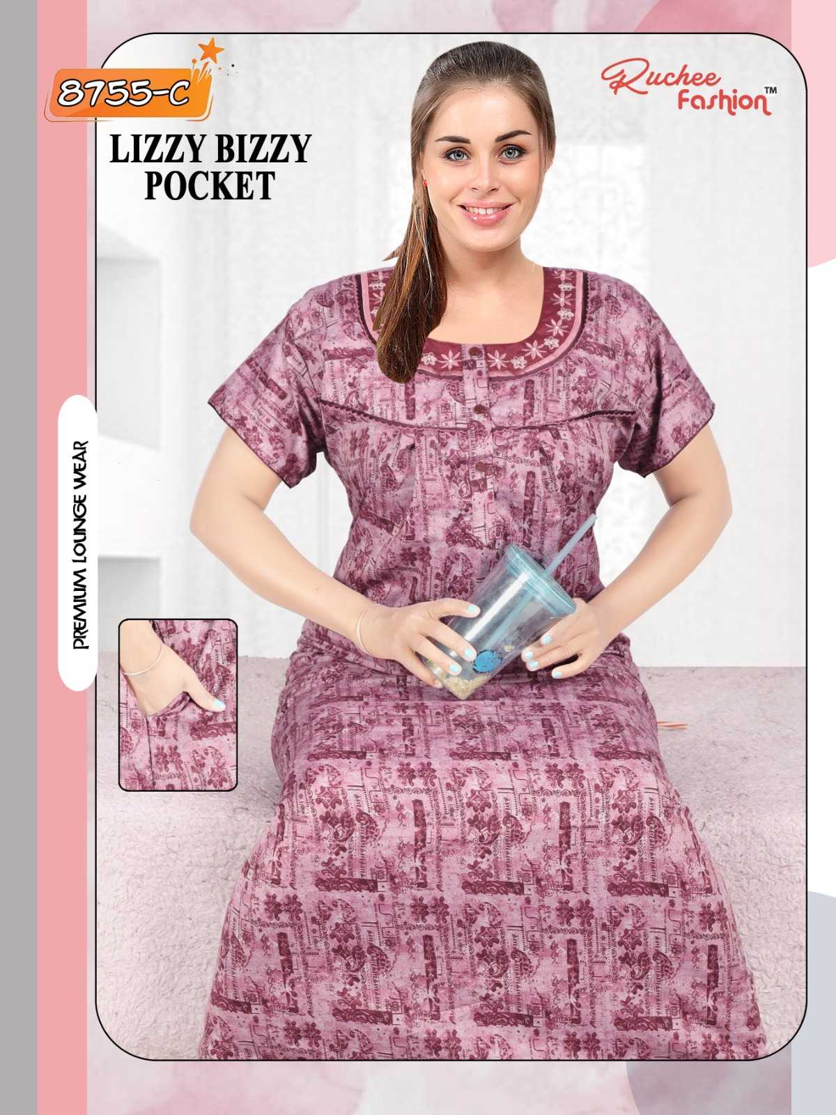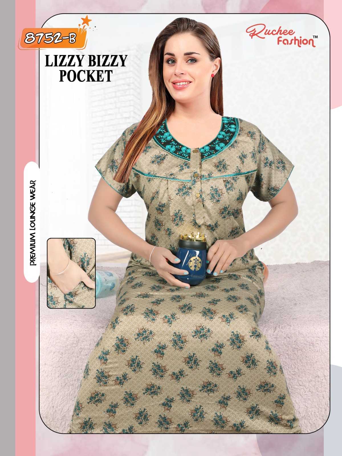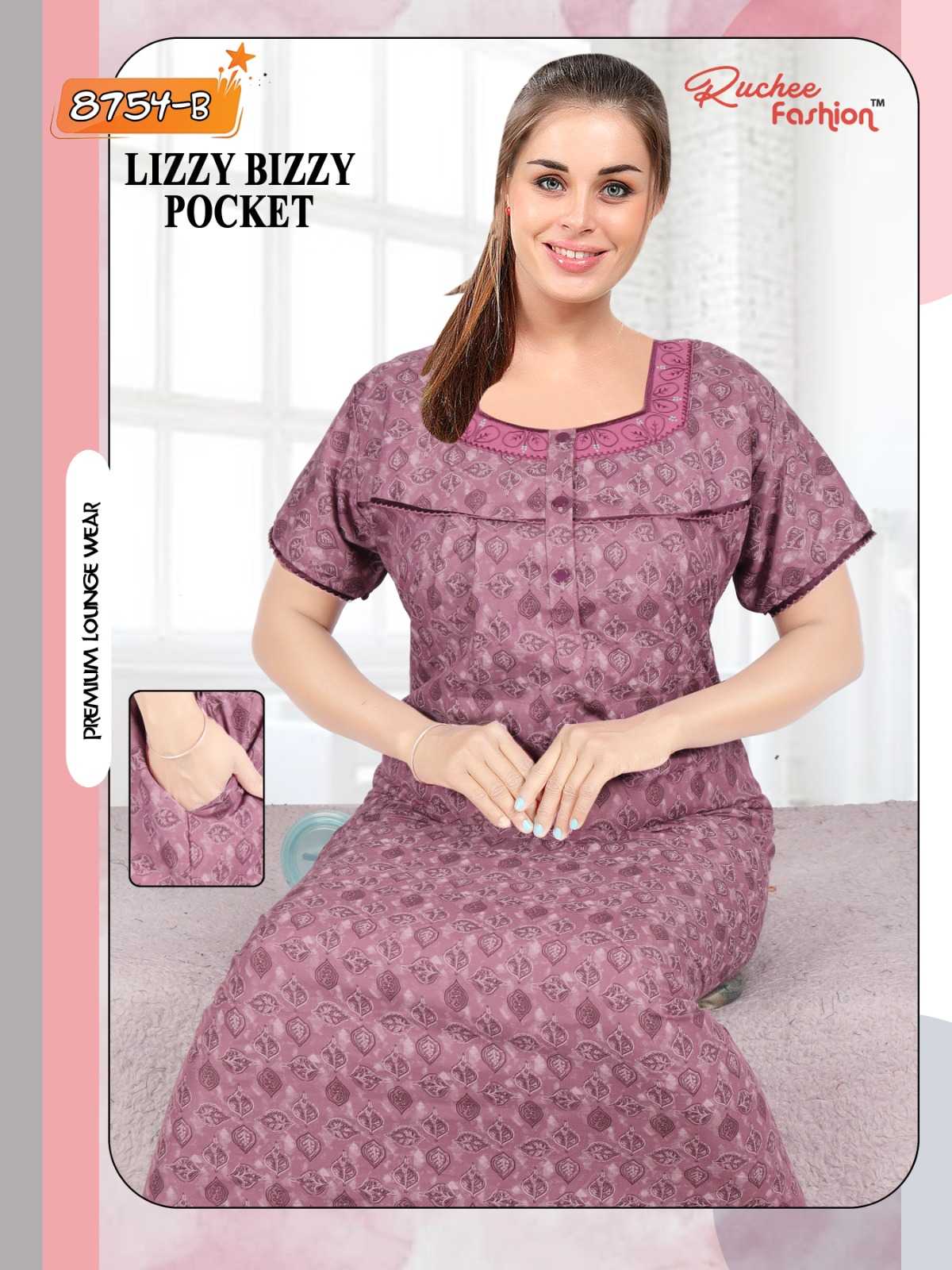 ruchee fashion pv heavy gold embroidery pocket 8752-8755 women night gown