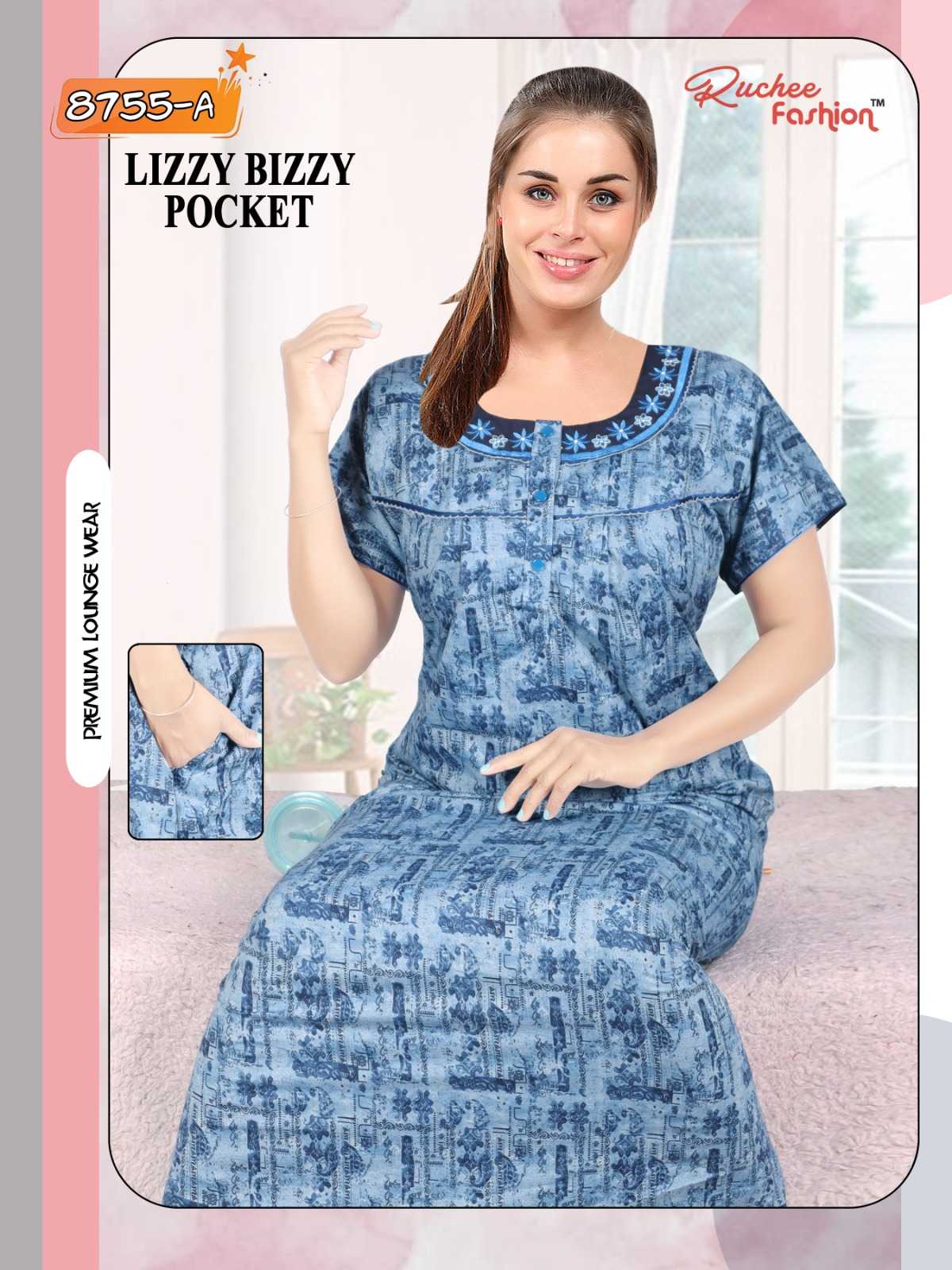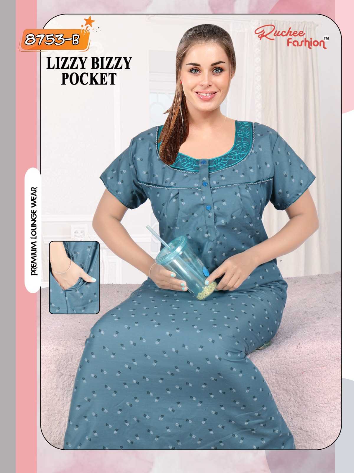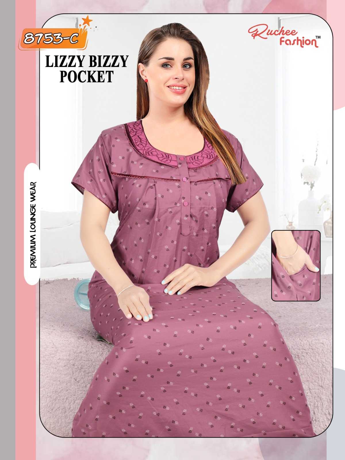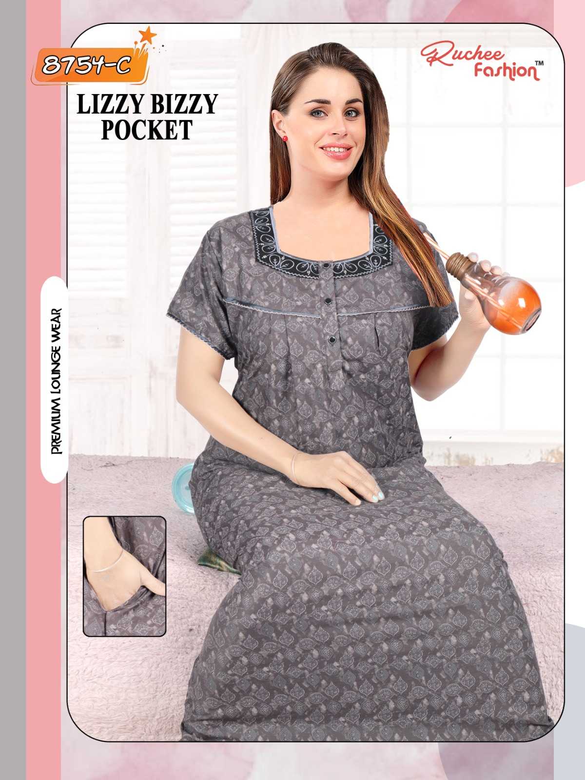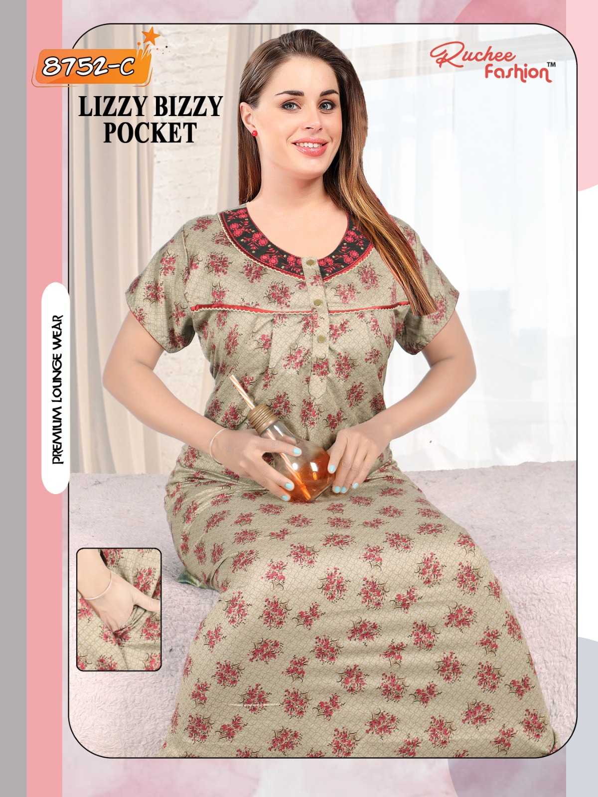 ruchee fashion pv heavy gold embroidery pocket 8752-8755 women night gown
