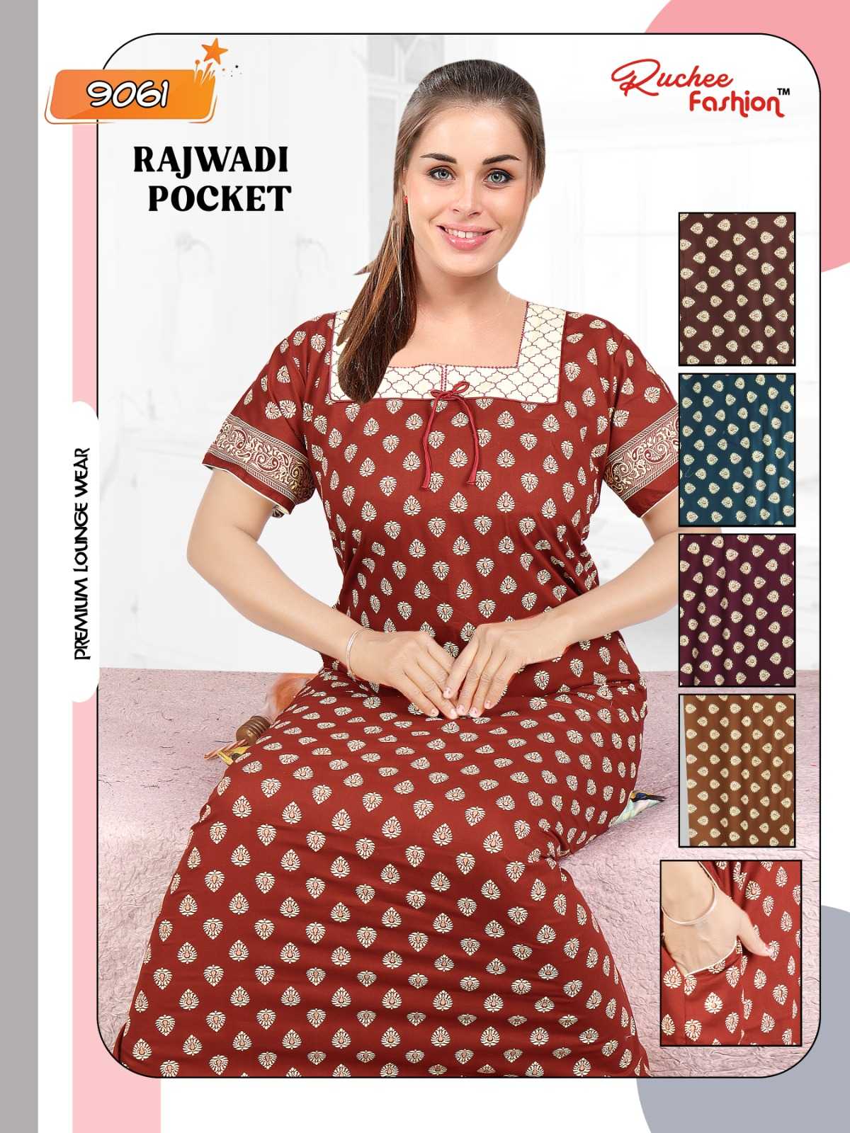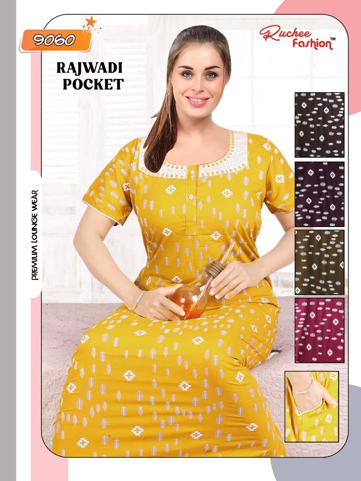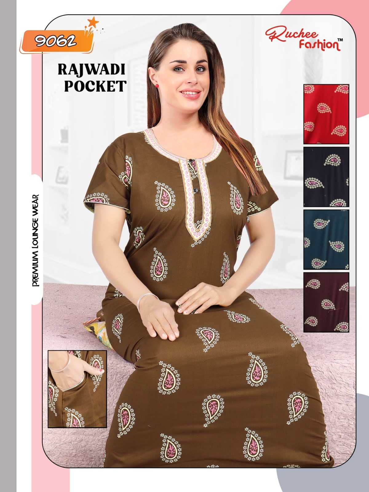 ruchee fashion rajwadi pocket cotton daily wear readymade nighty gown