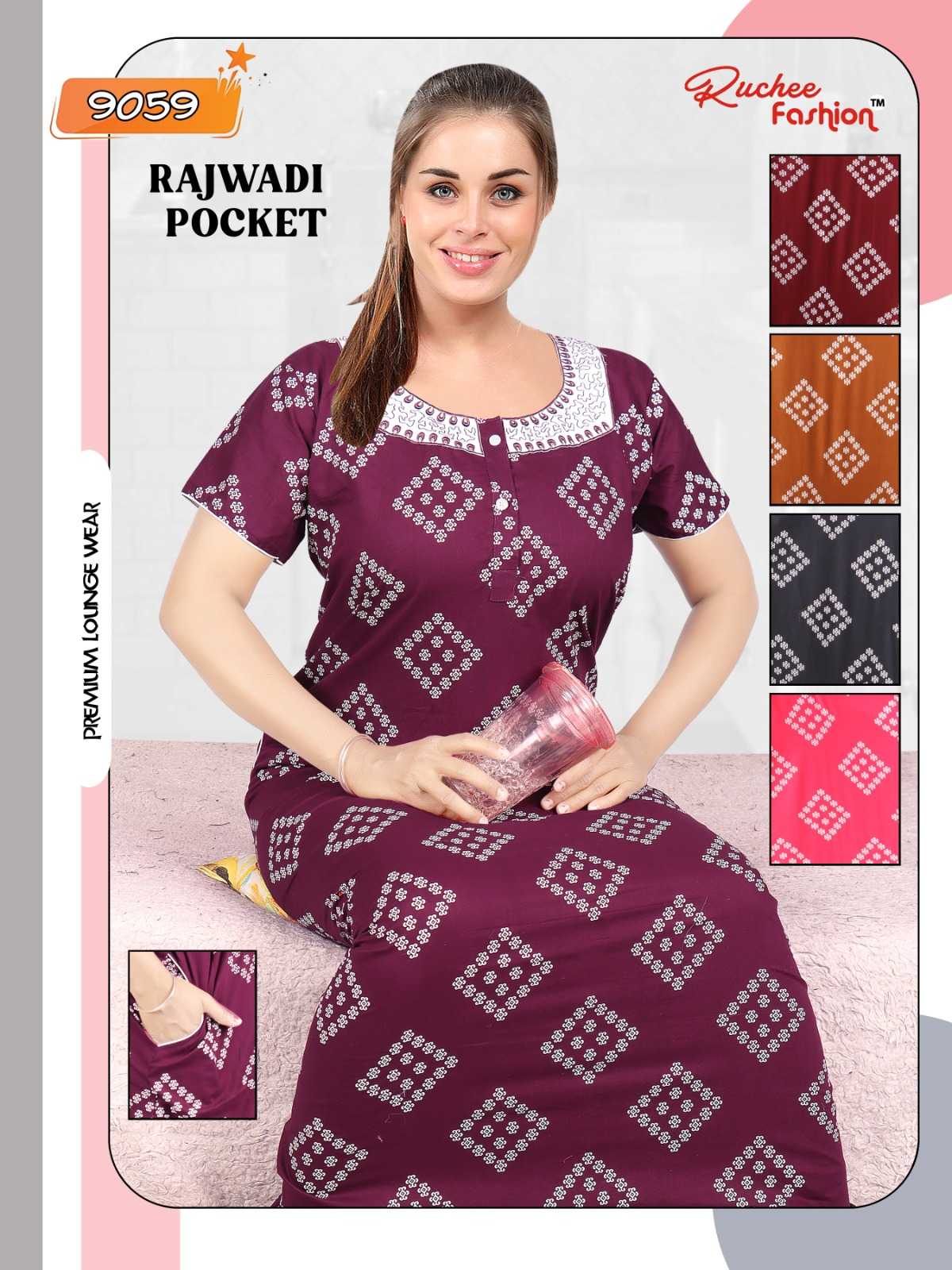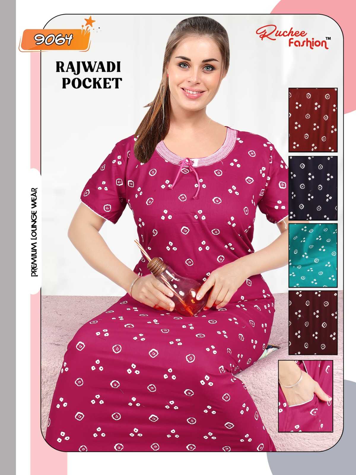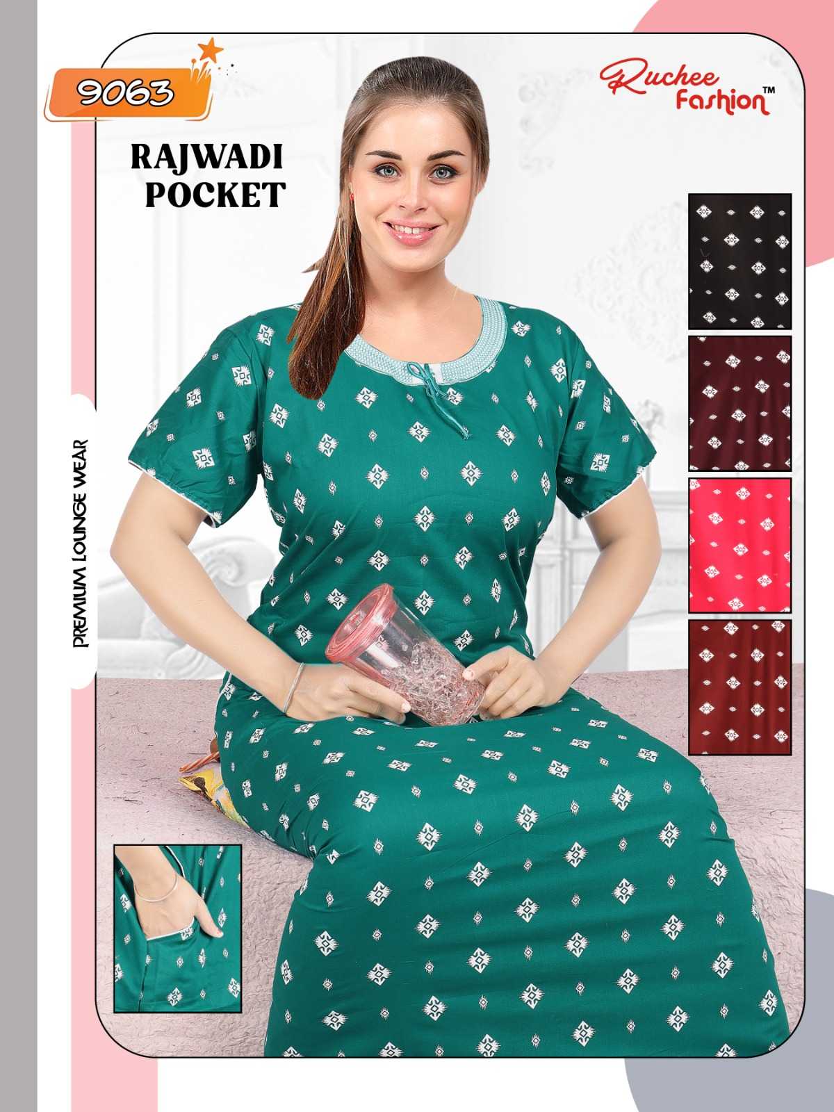 ruchee fashion rajwadi pocket cotton daily wear readymade nighty gown