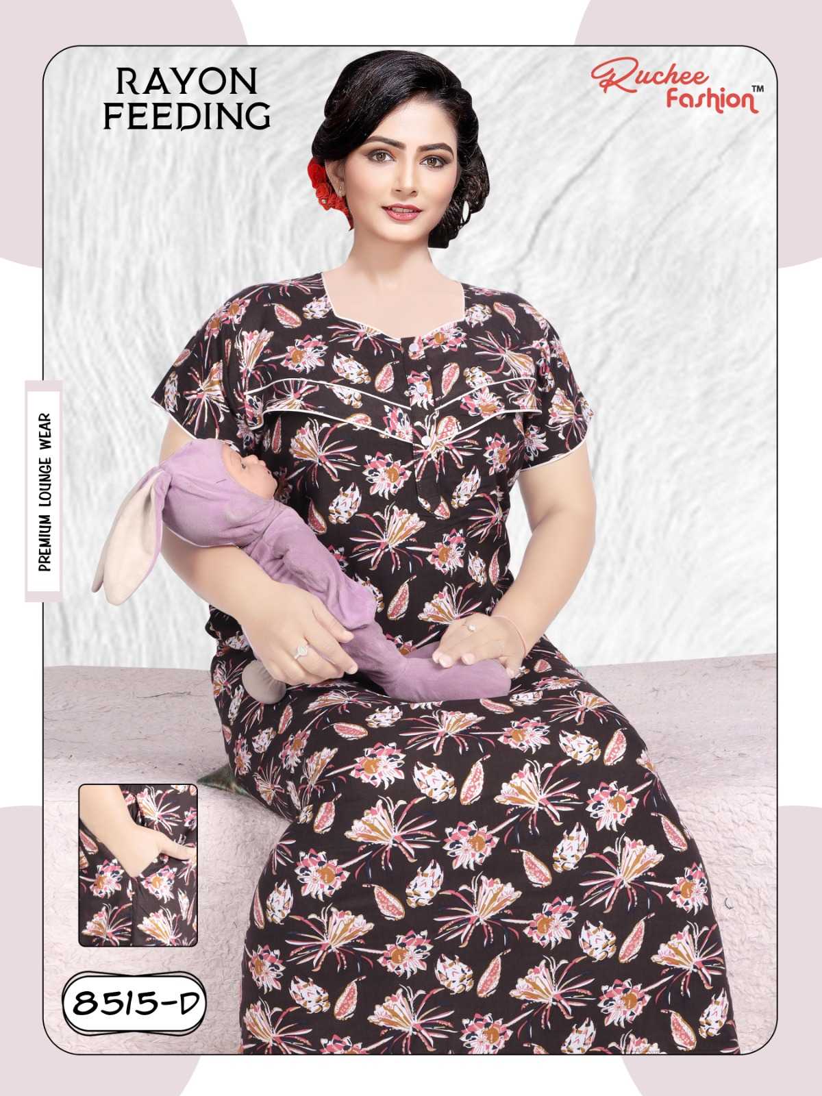 ruchee fashion rayon feeding 8515 abcd fancy night gown