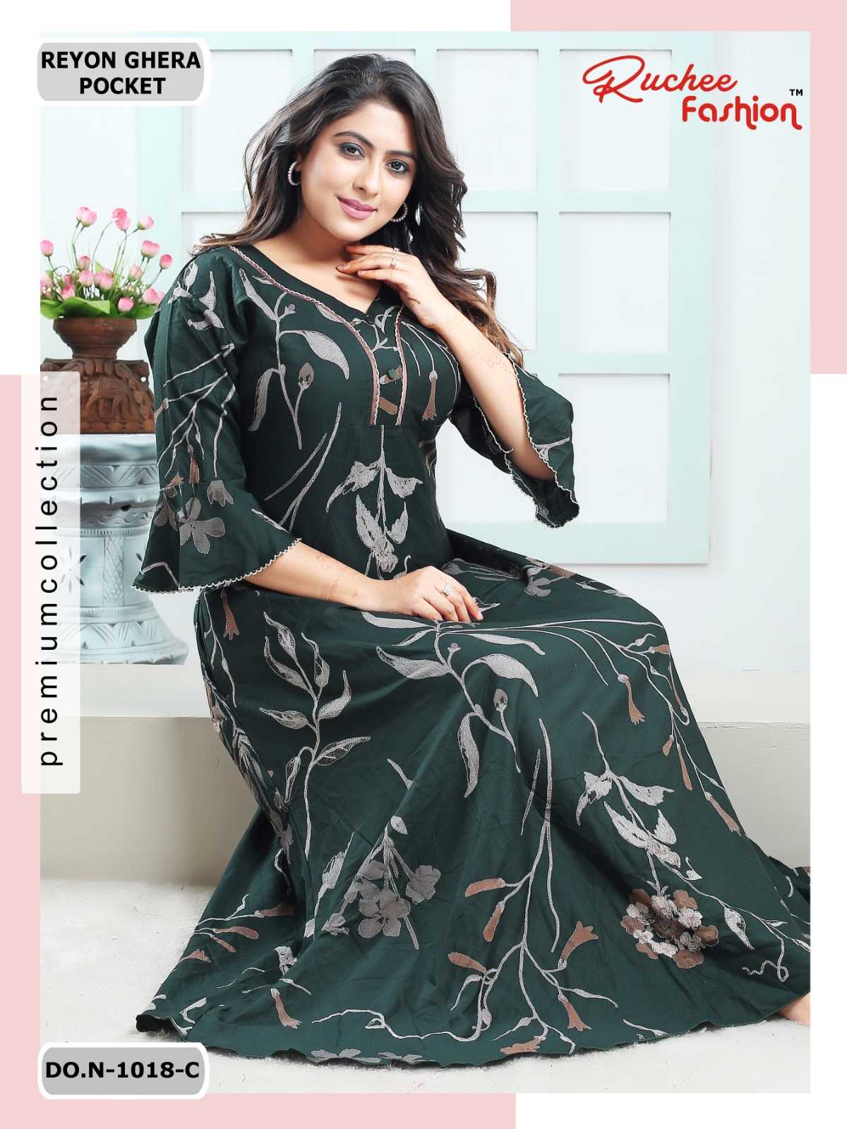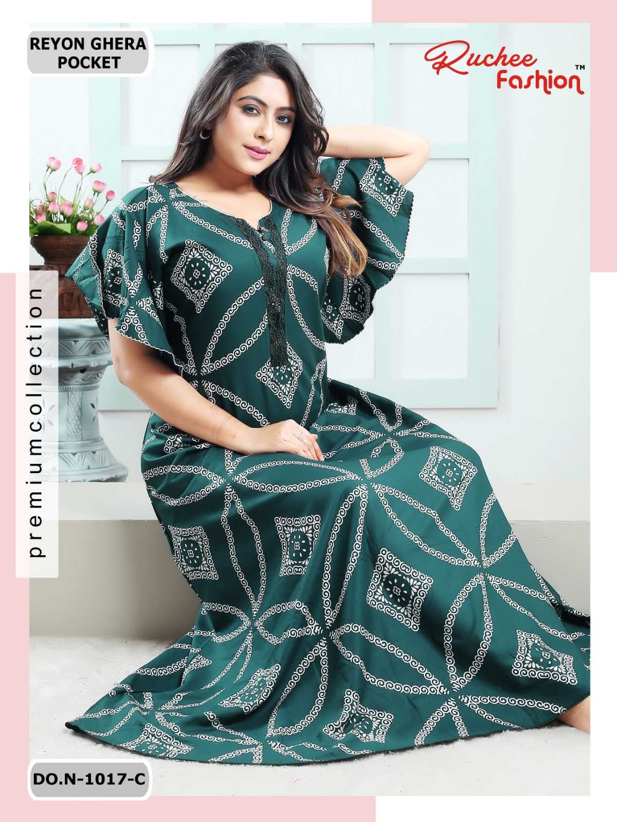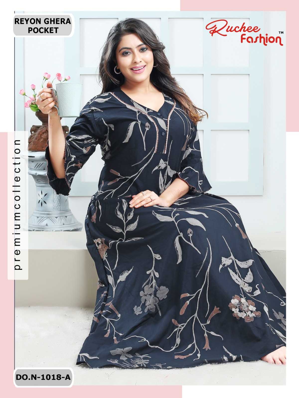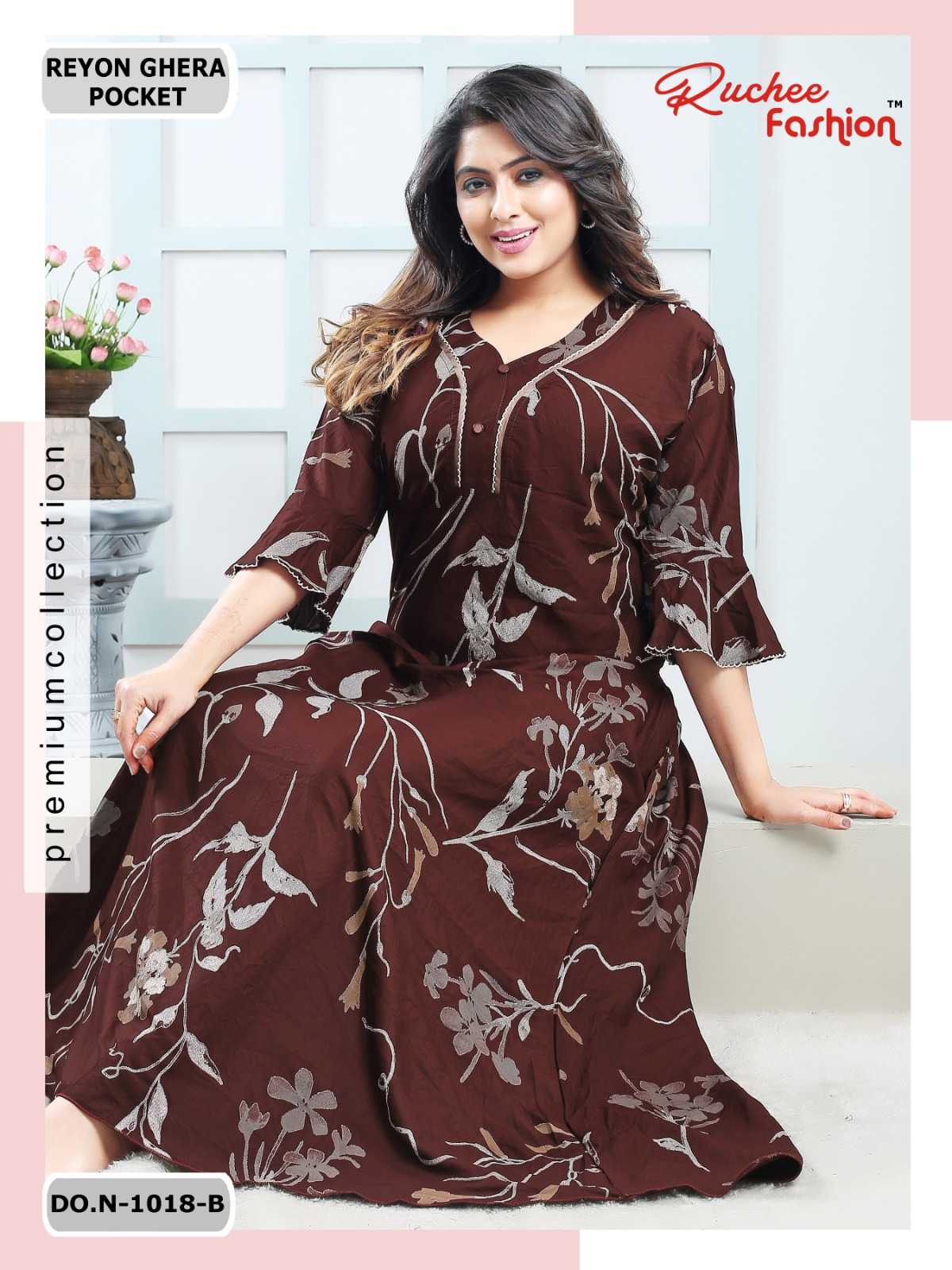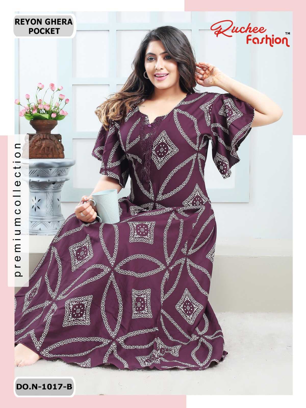 ruchee fashion rayon ghera fancy sleeves 1017-1018 comfy wear nighty