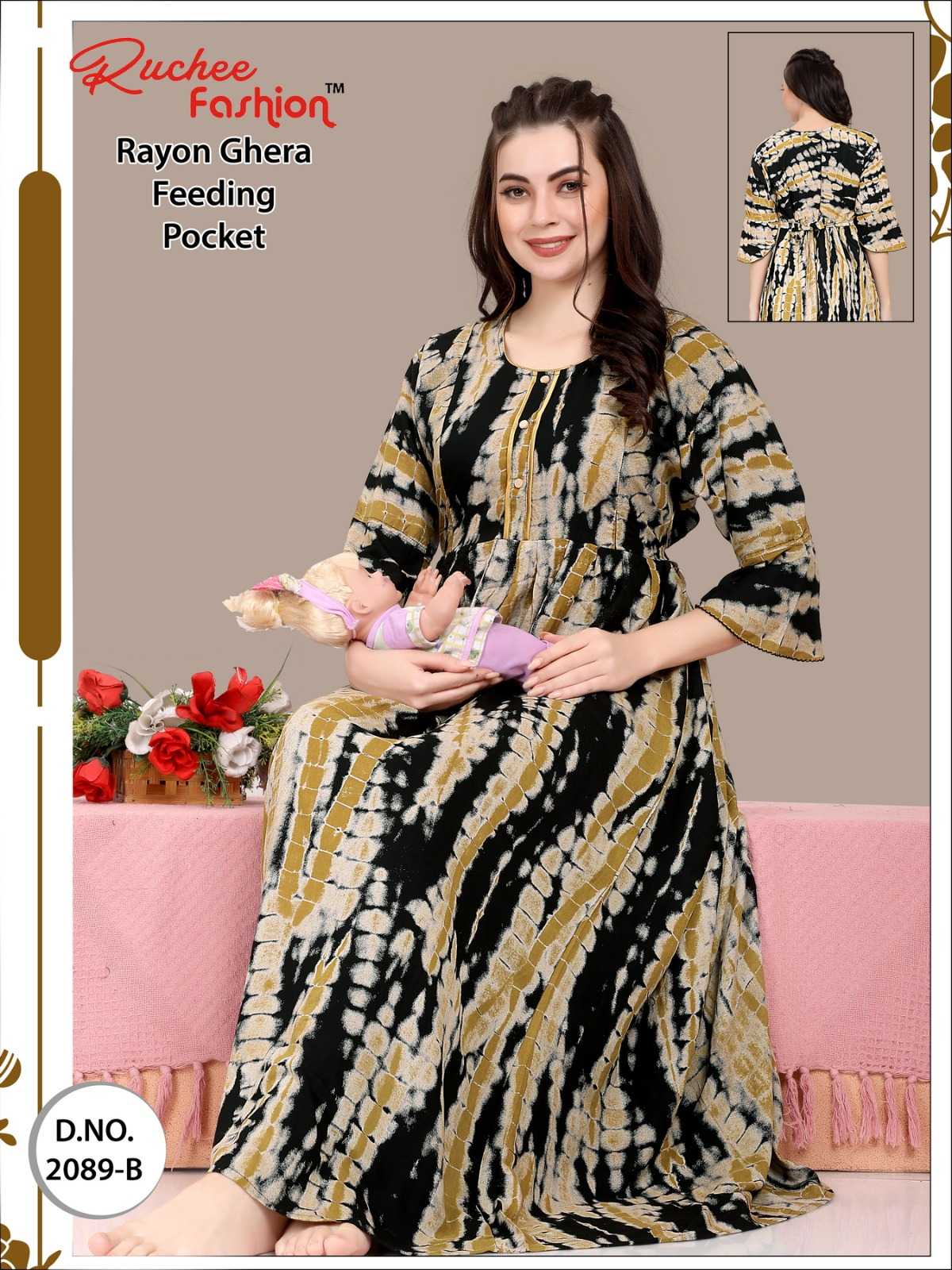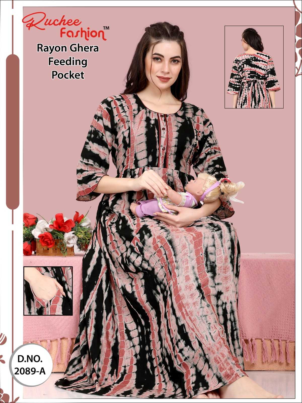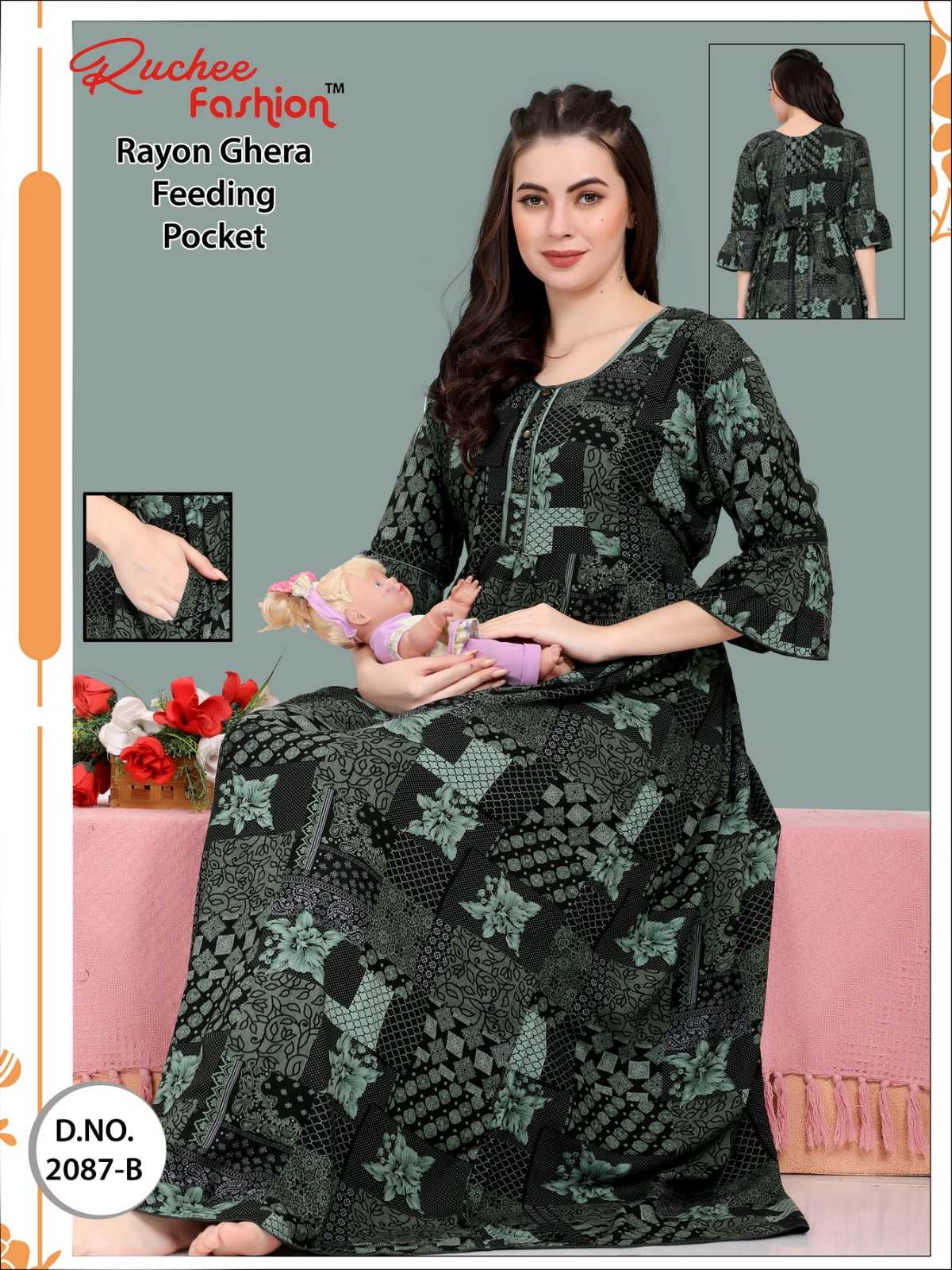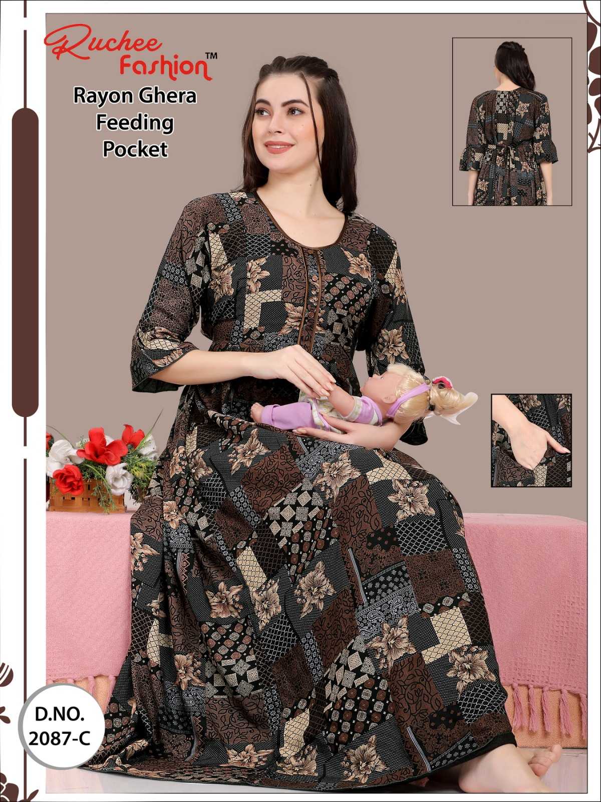 ruchee fashion rayon heavy ghera fancy sleeves feeding 2086-2089 night gown
