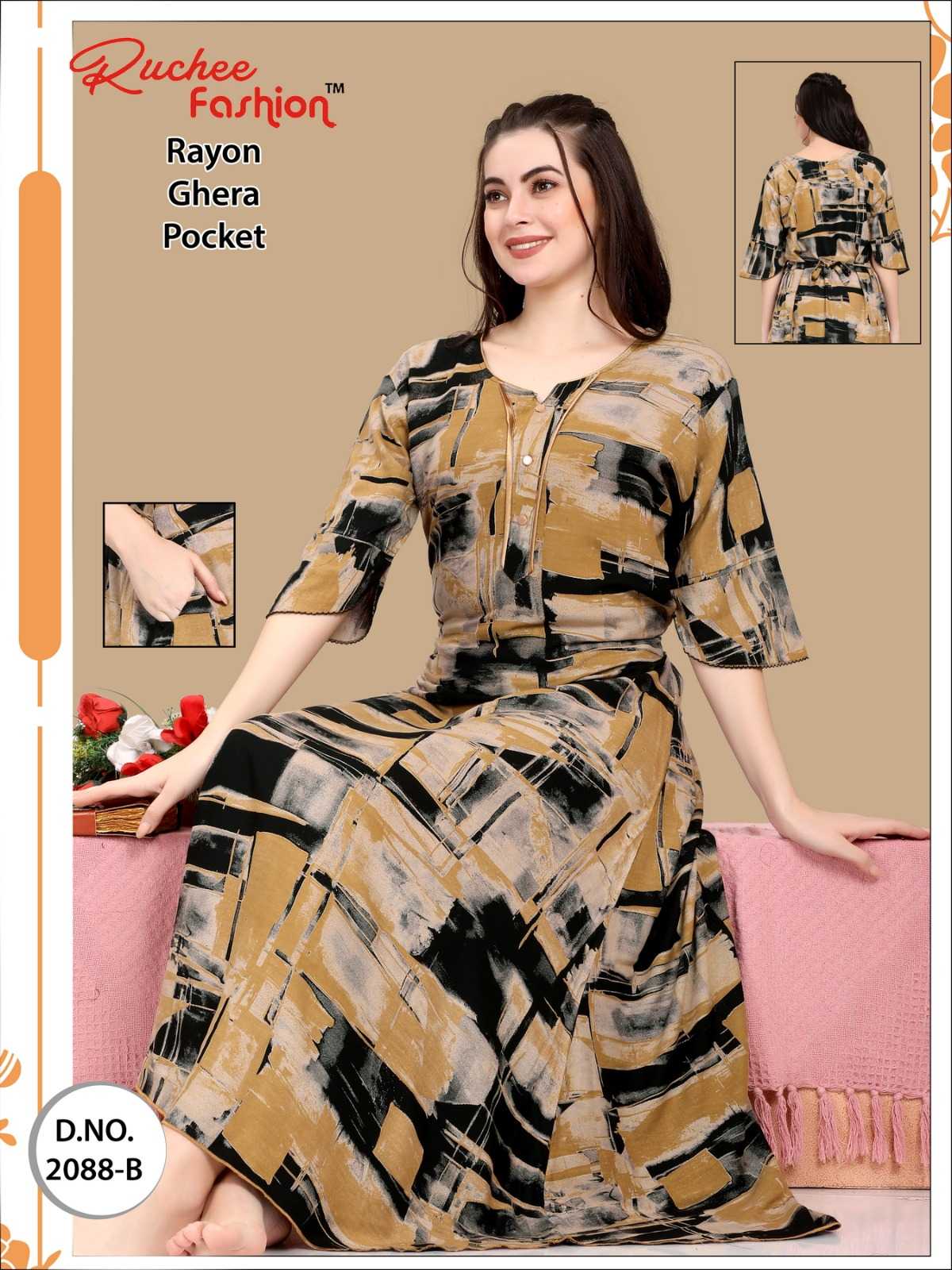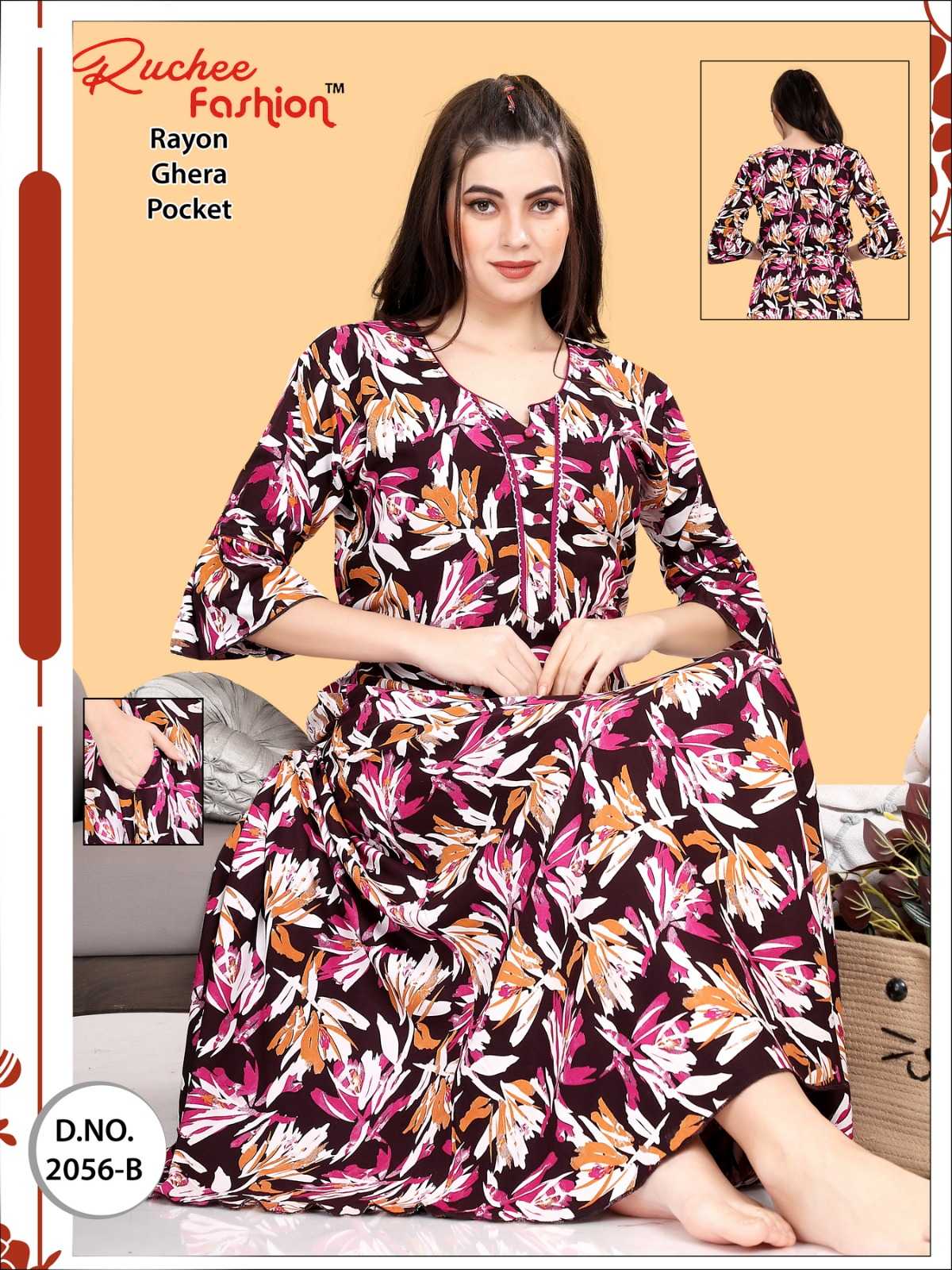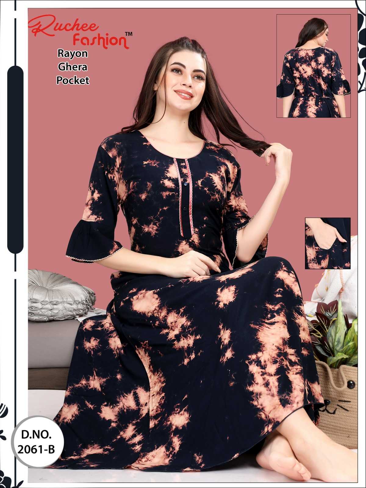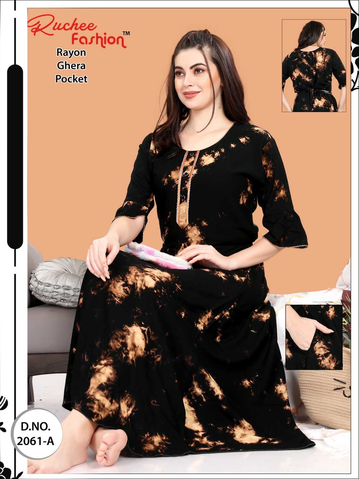 ruchee fashion rayon heavy ghera fancy sleeves night wear gown