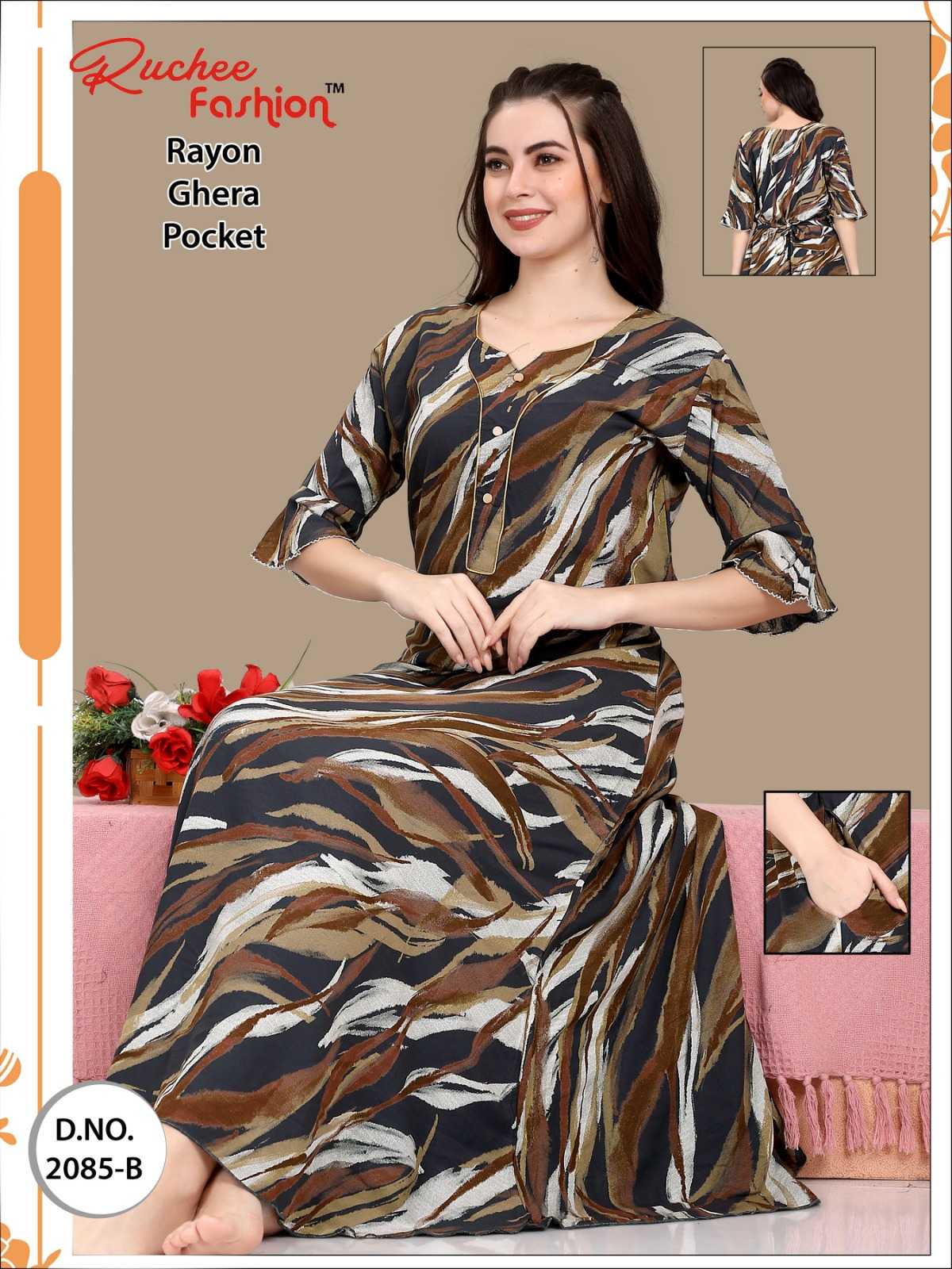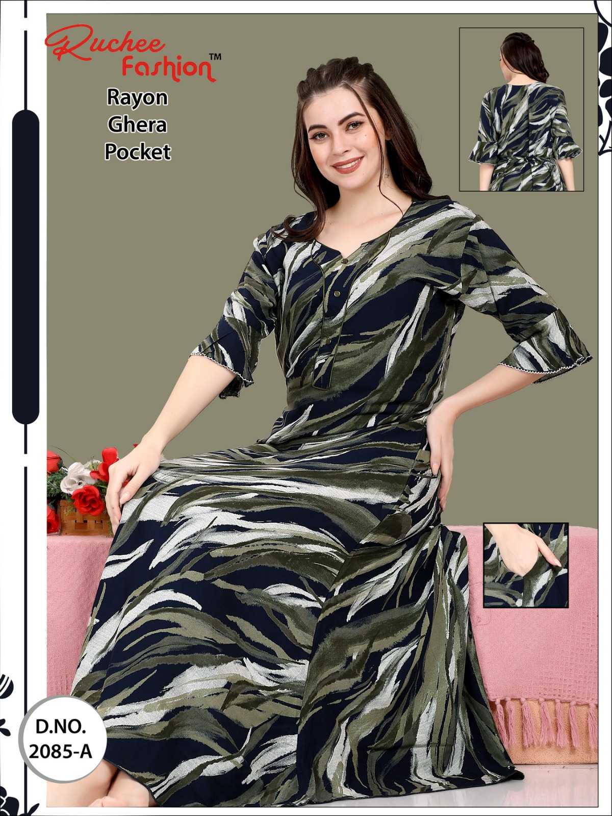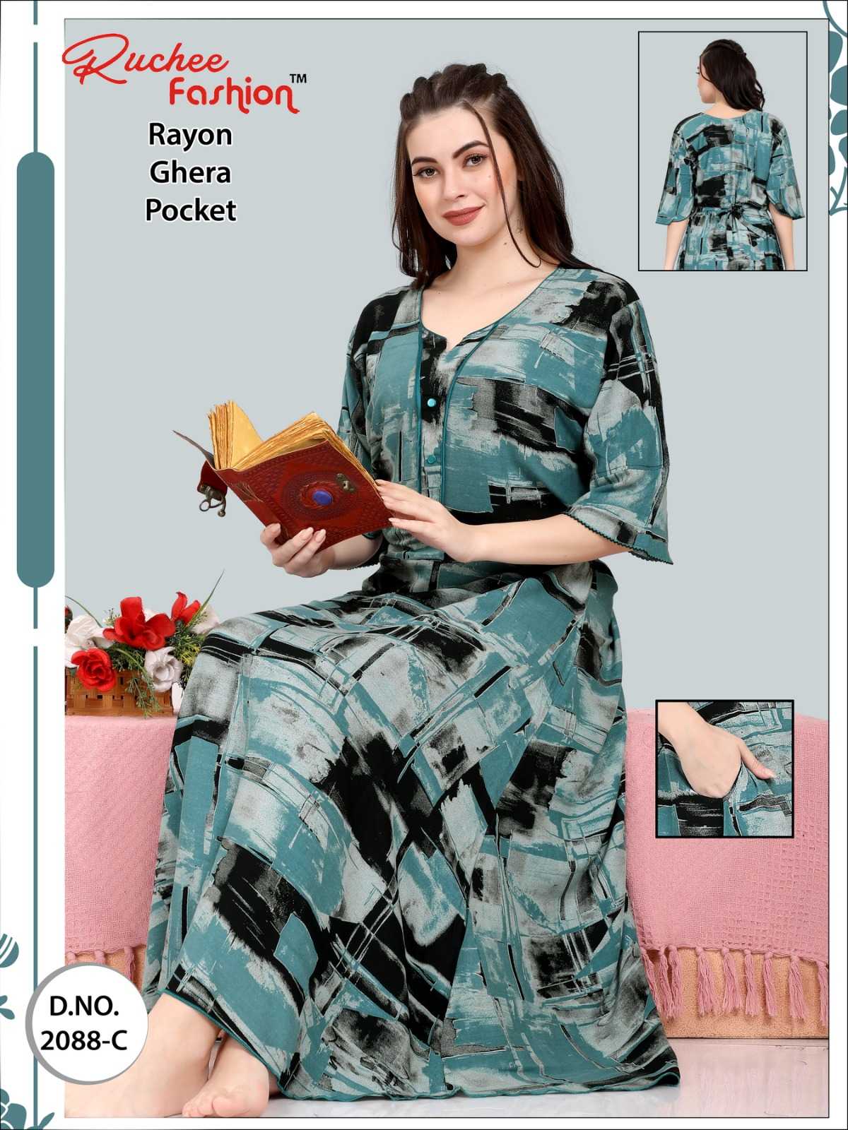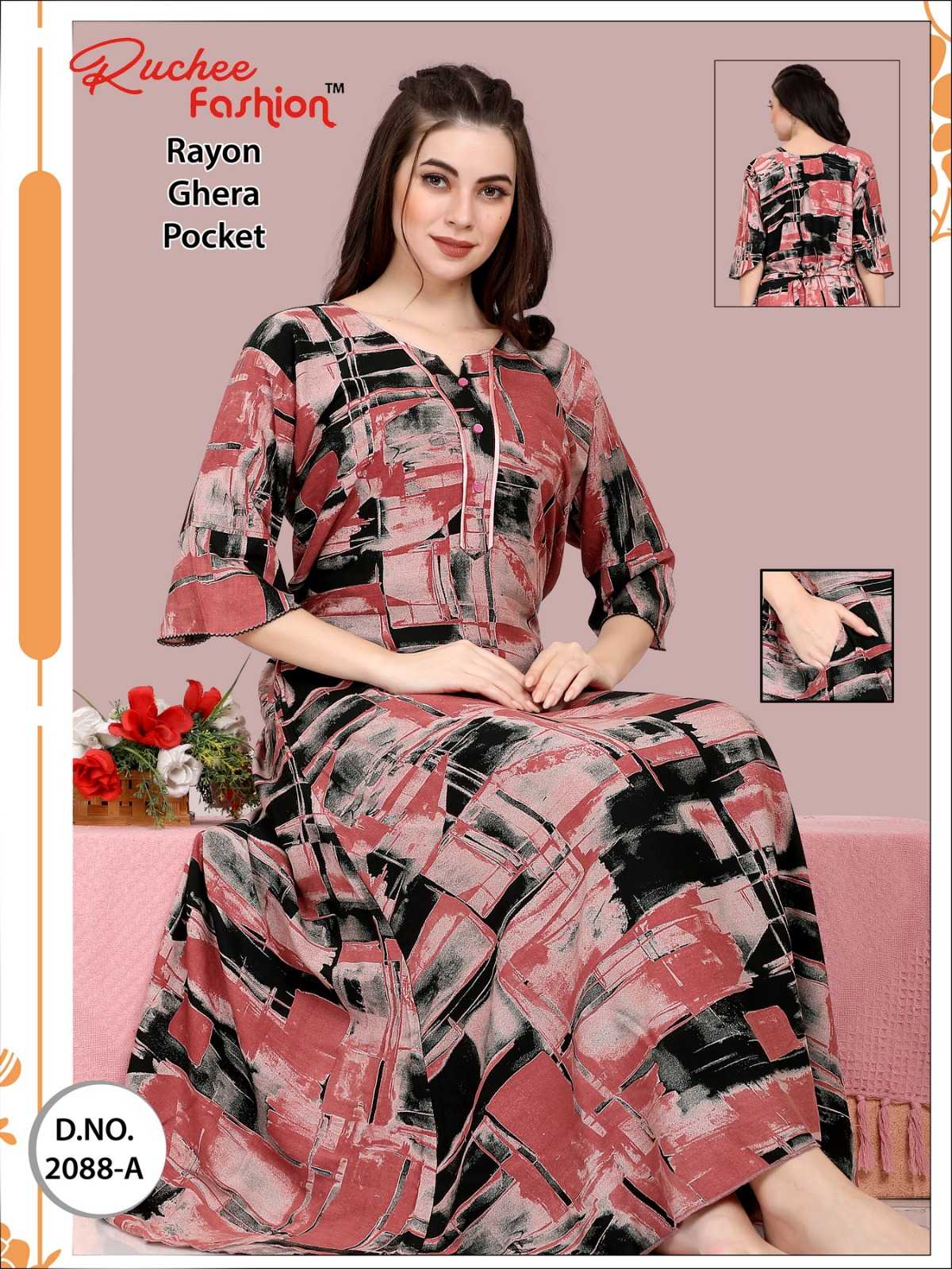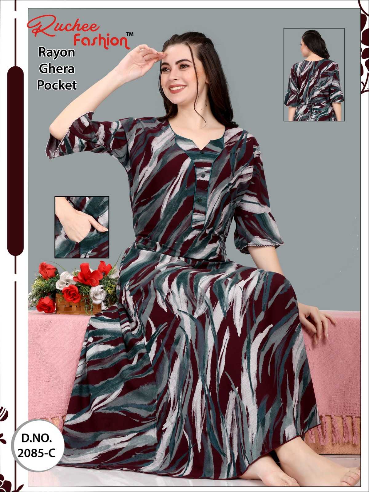 ruchee fashion rayon heavy ghera fancy sleeves night wear gown