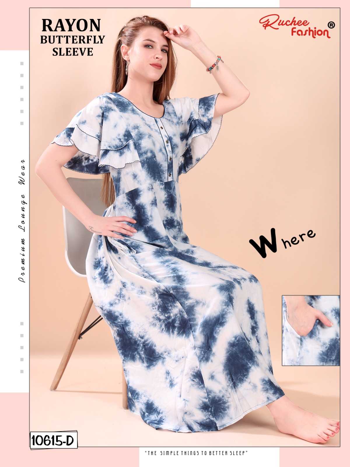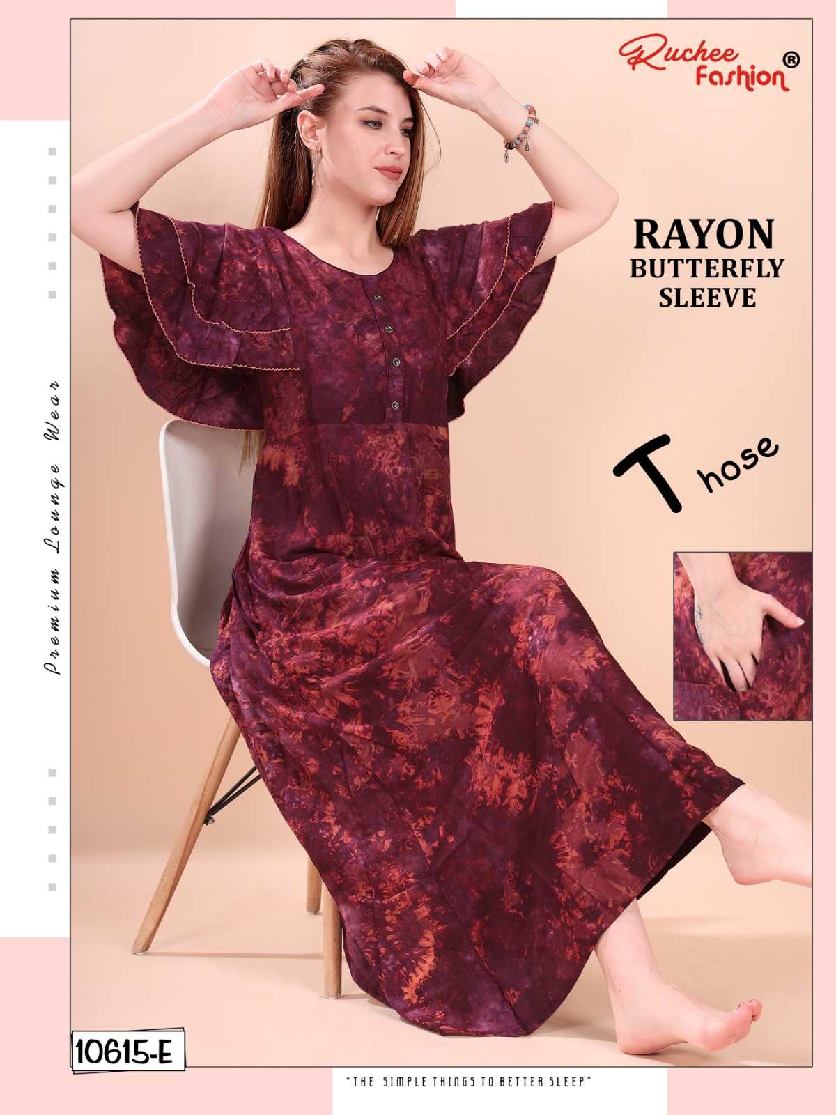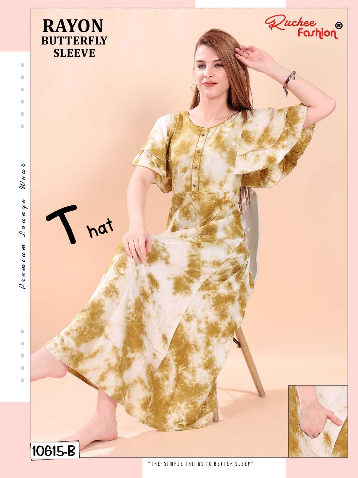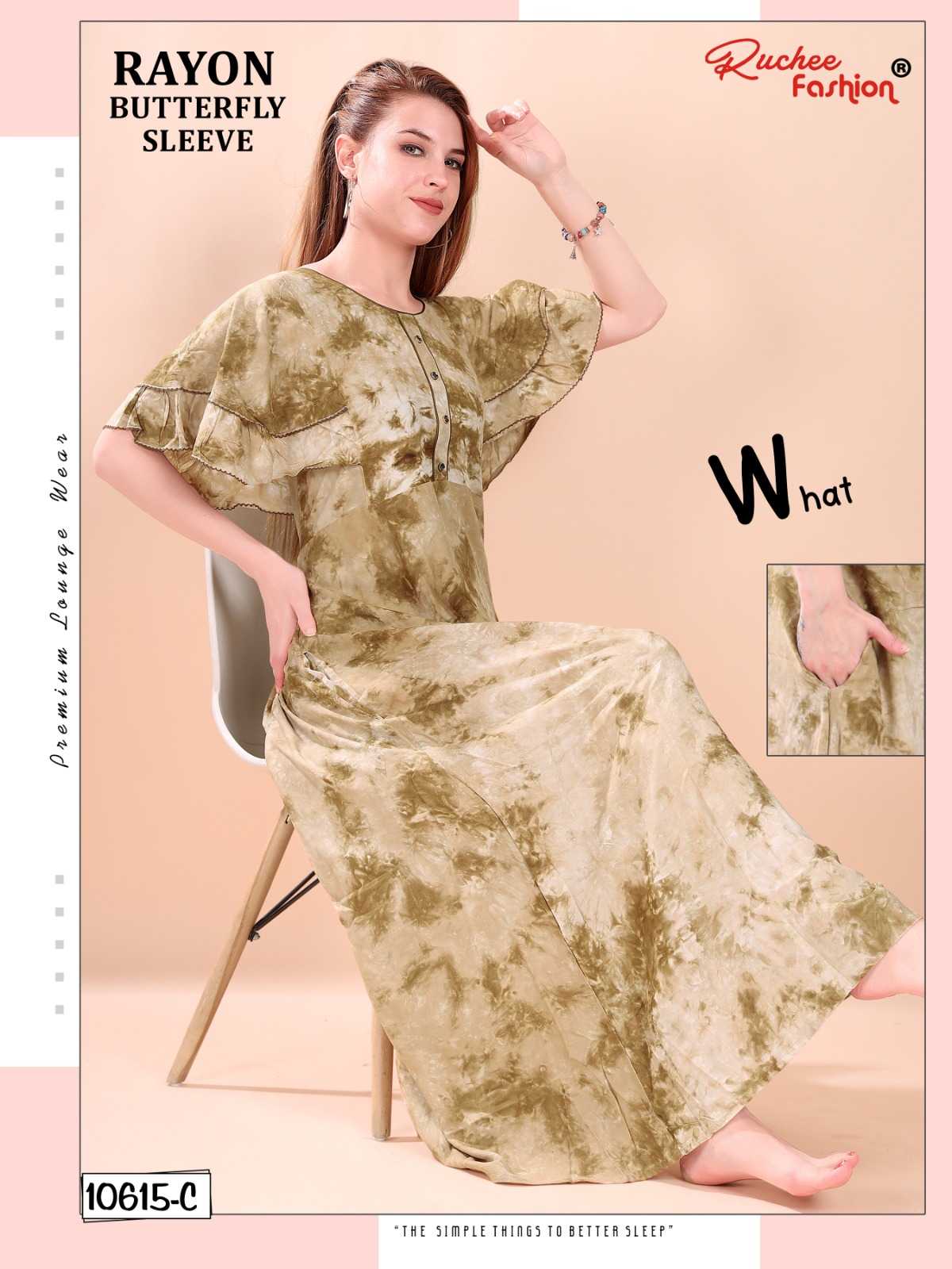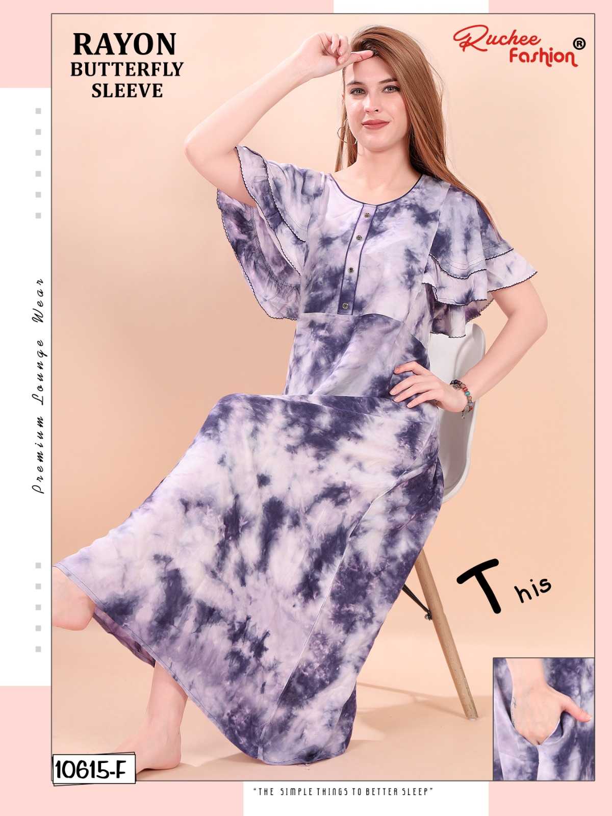 ruchee fashion rayon new trendy gown butterfly sleeves style women nighty