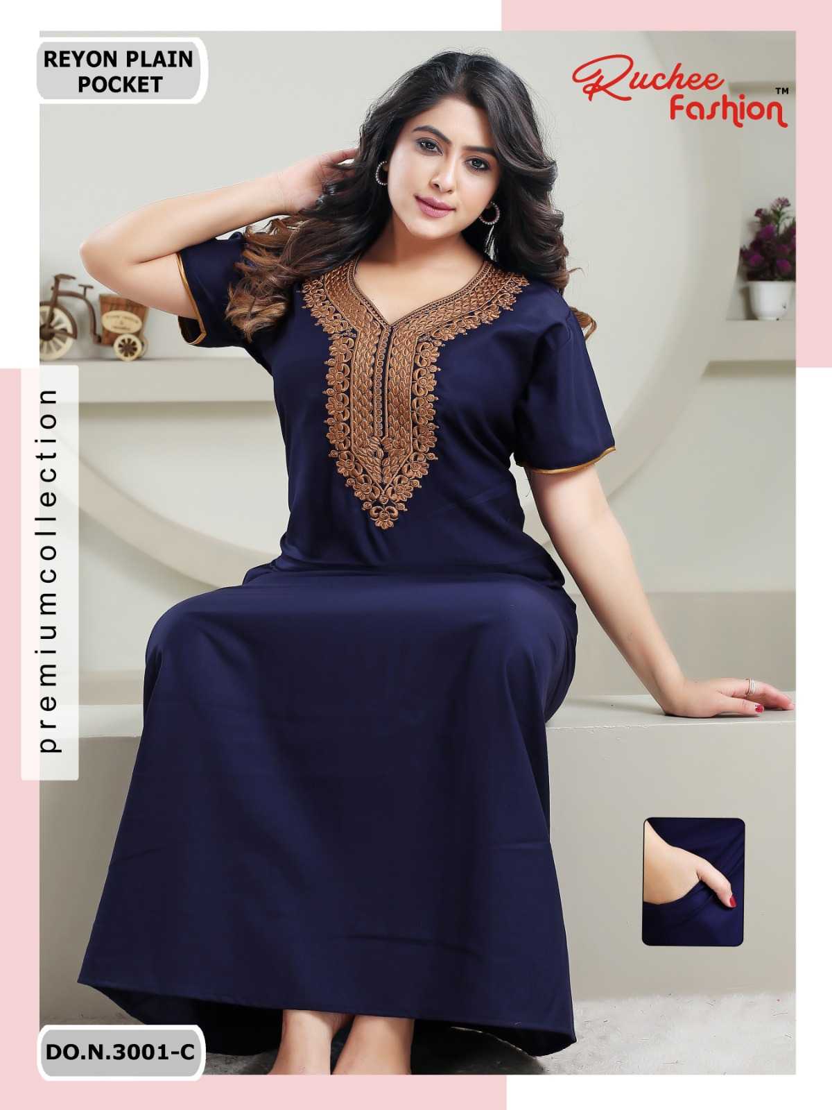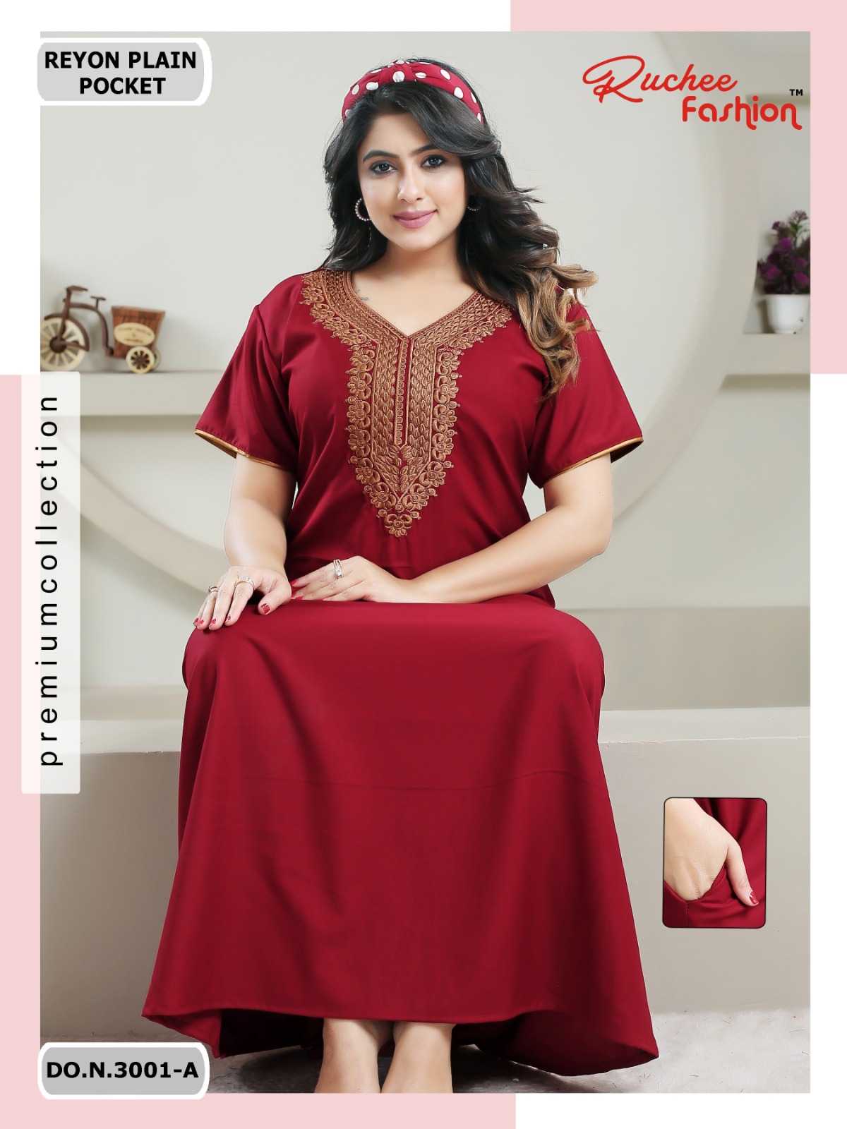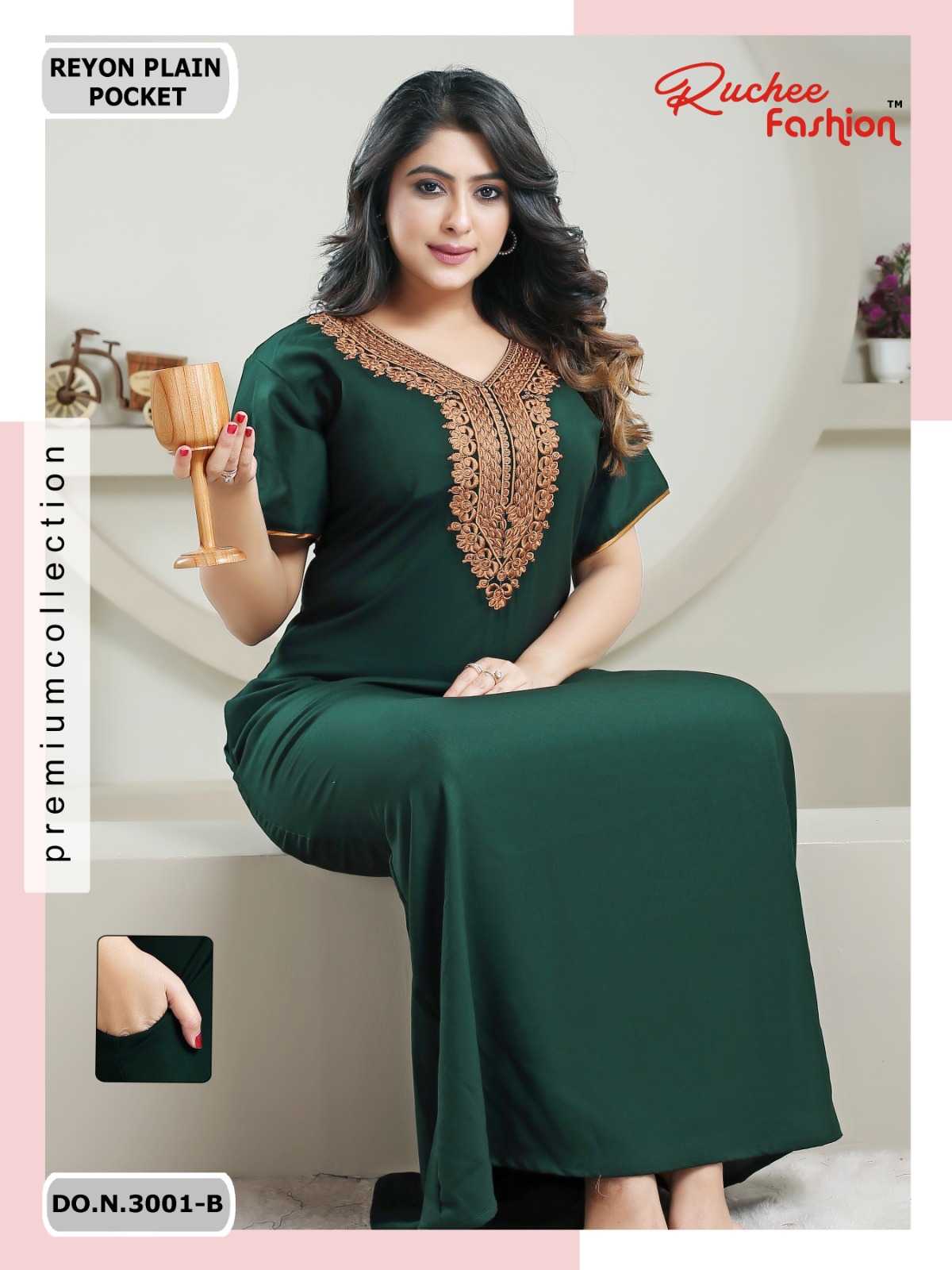 ruchee fashion rayon plain pocket 3001-3002 beautiful nighty
