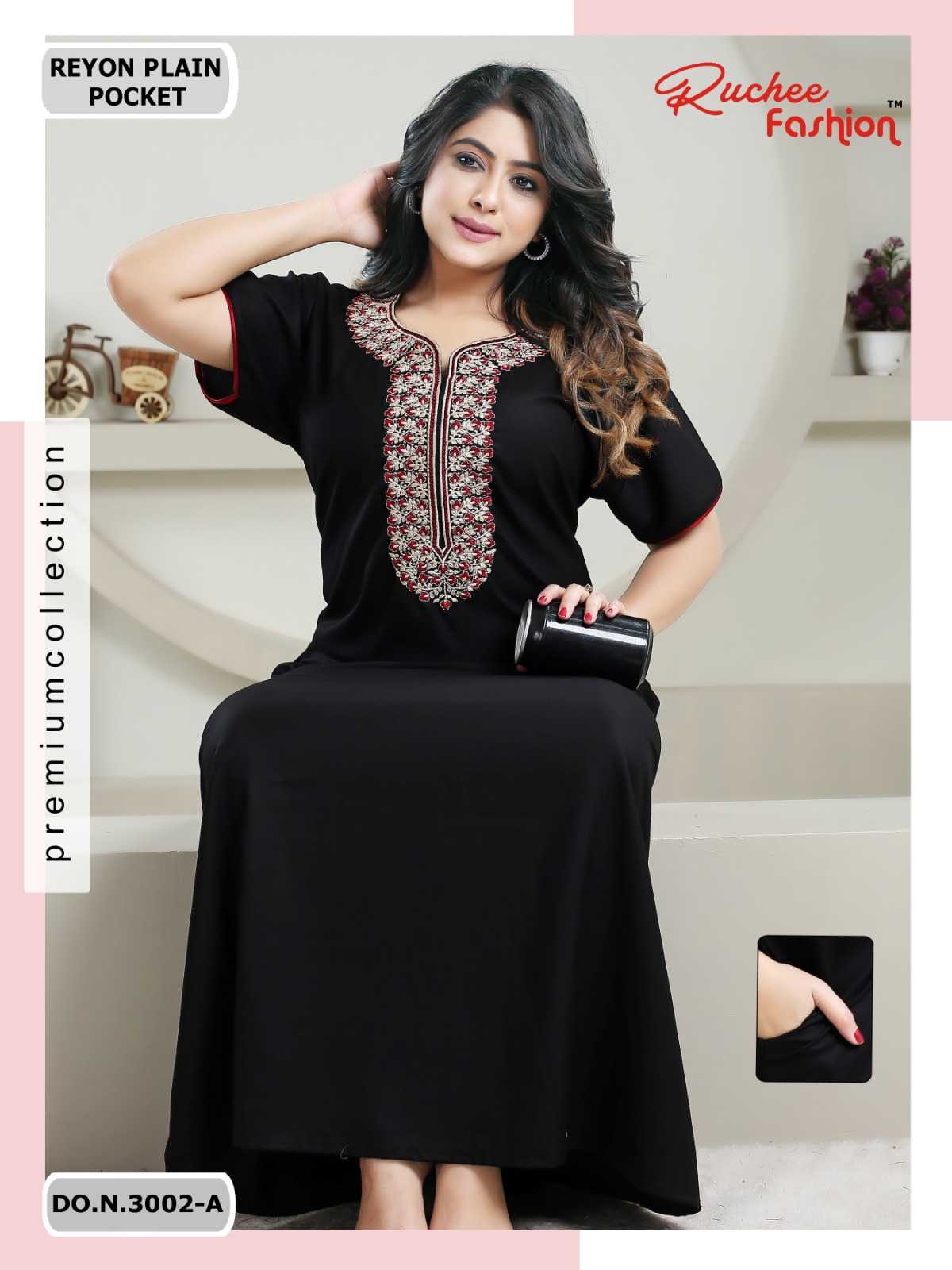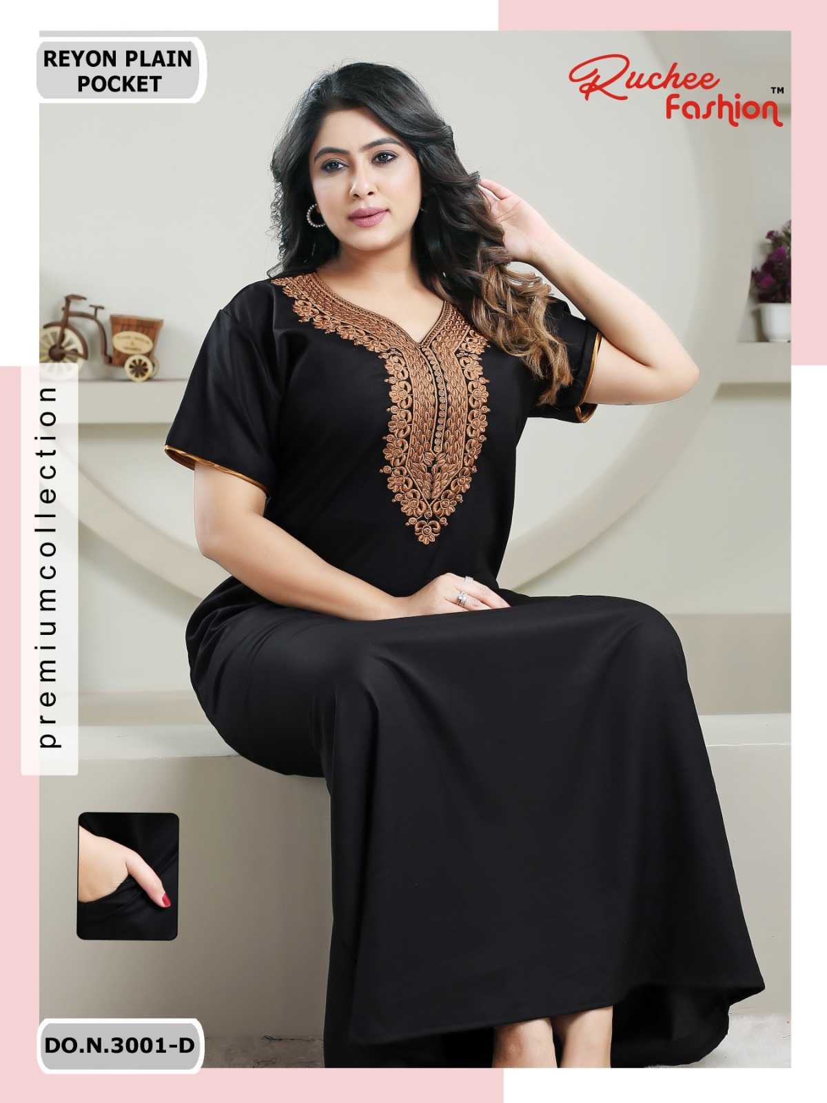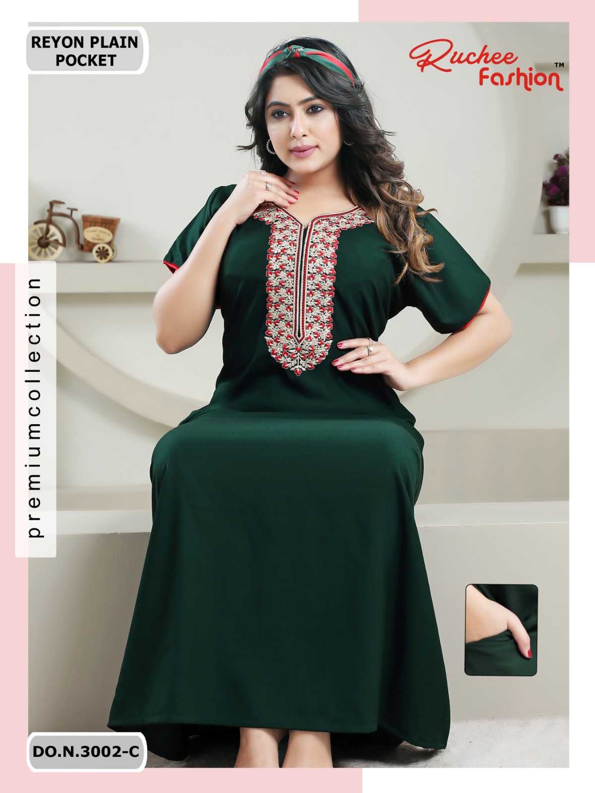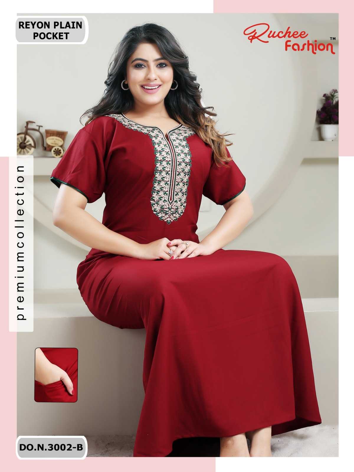 ruchee fashion rayon plain pocket 3001-3002 beautiful nighty