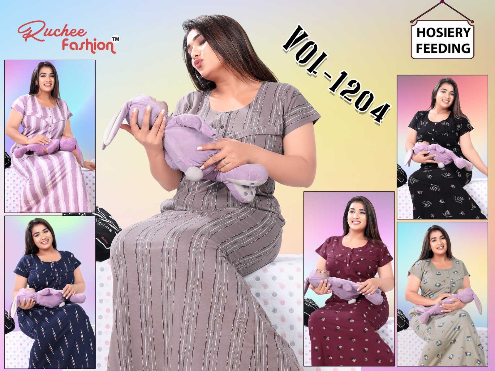 RUCHEE FASHION®️ 🎀Launch New Fancy Shinkar Hosiery Feeding Gown Catlogue🎀 VOL 1204 💵Rate :399/- only 💵 👗Designs : 6 ✂Sizes : FREE SIZE Fabric Details :Finest Quality of Heavy Shinkar Hosiery Fancy Feeding Gown |