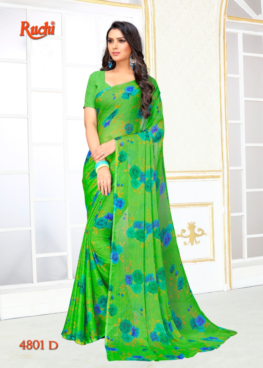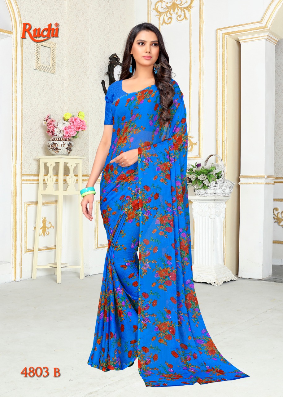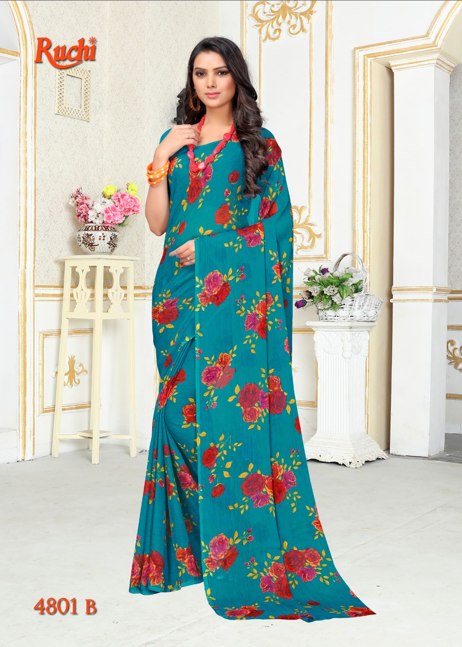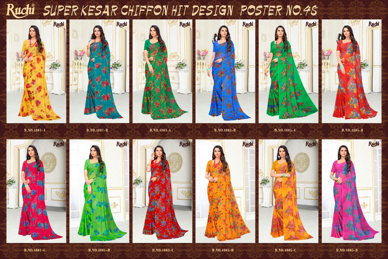 Ruchi Blueberry Super Kesar Chiffon Poster No 48 Printed Casual Wear Saree