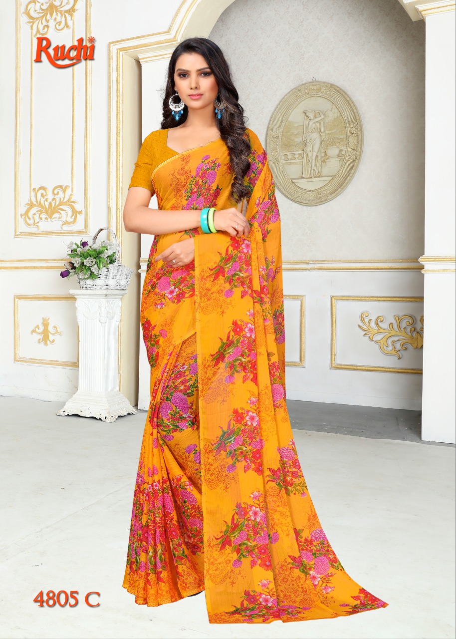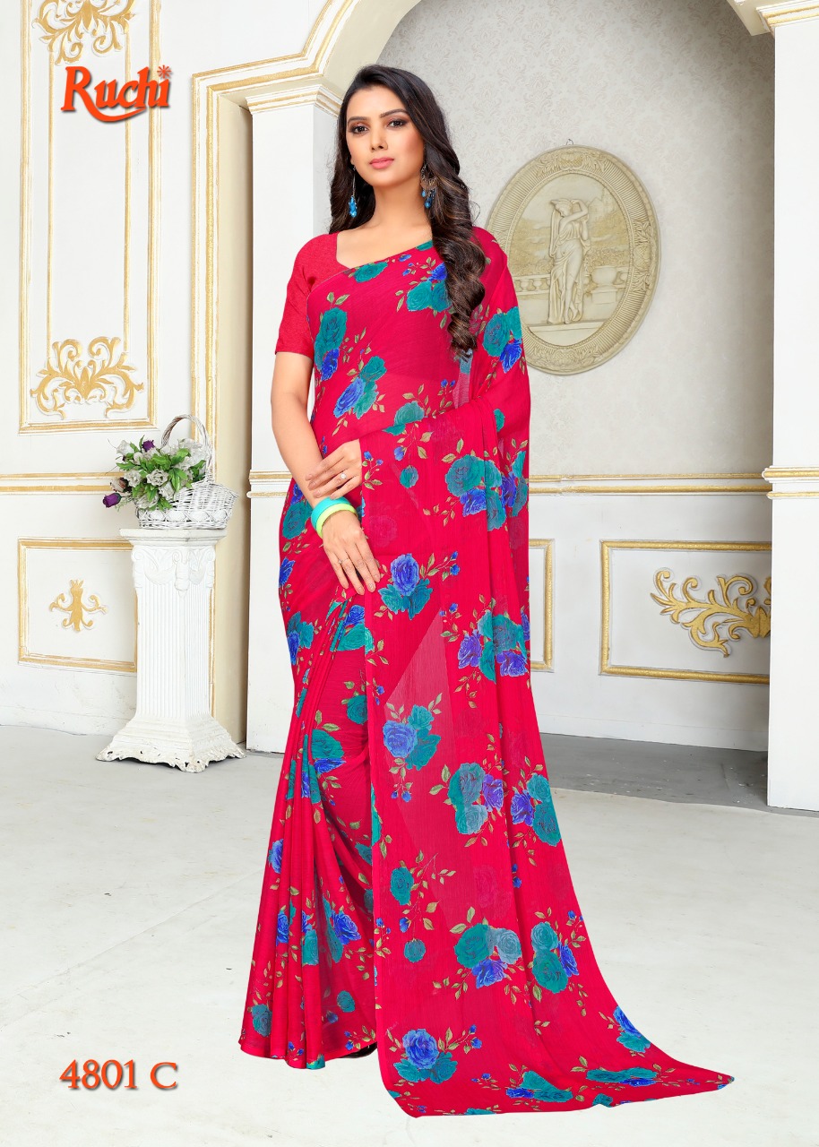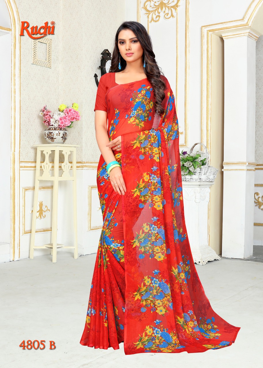 Ruchi Blueberry Super Kesar Chiffon Poster No 48 Printed Casual Wear Saree