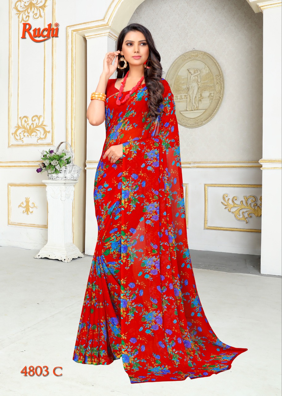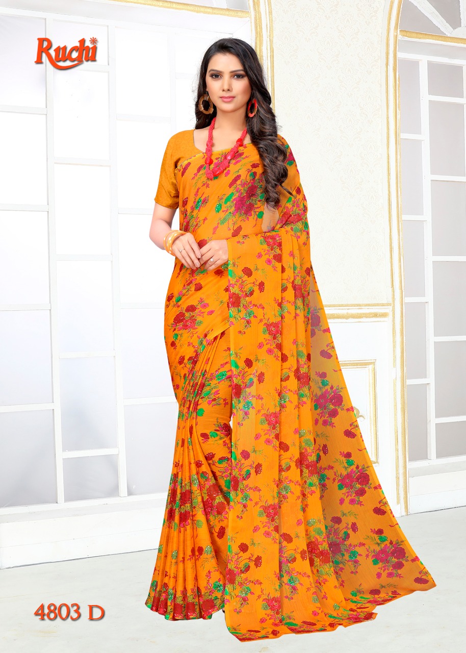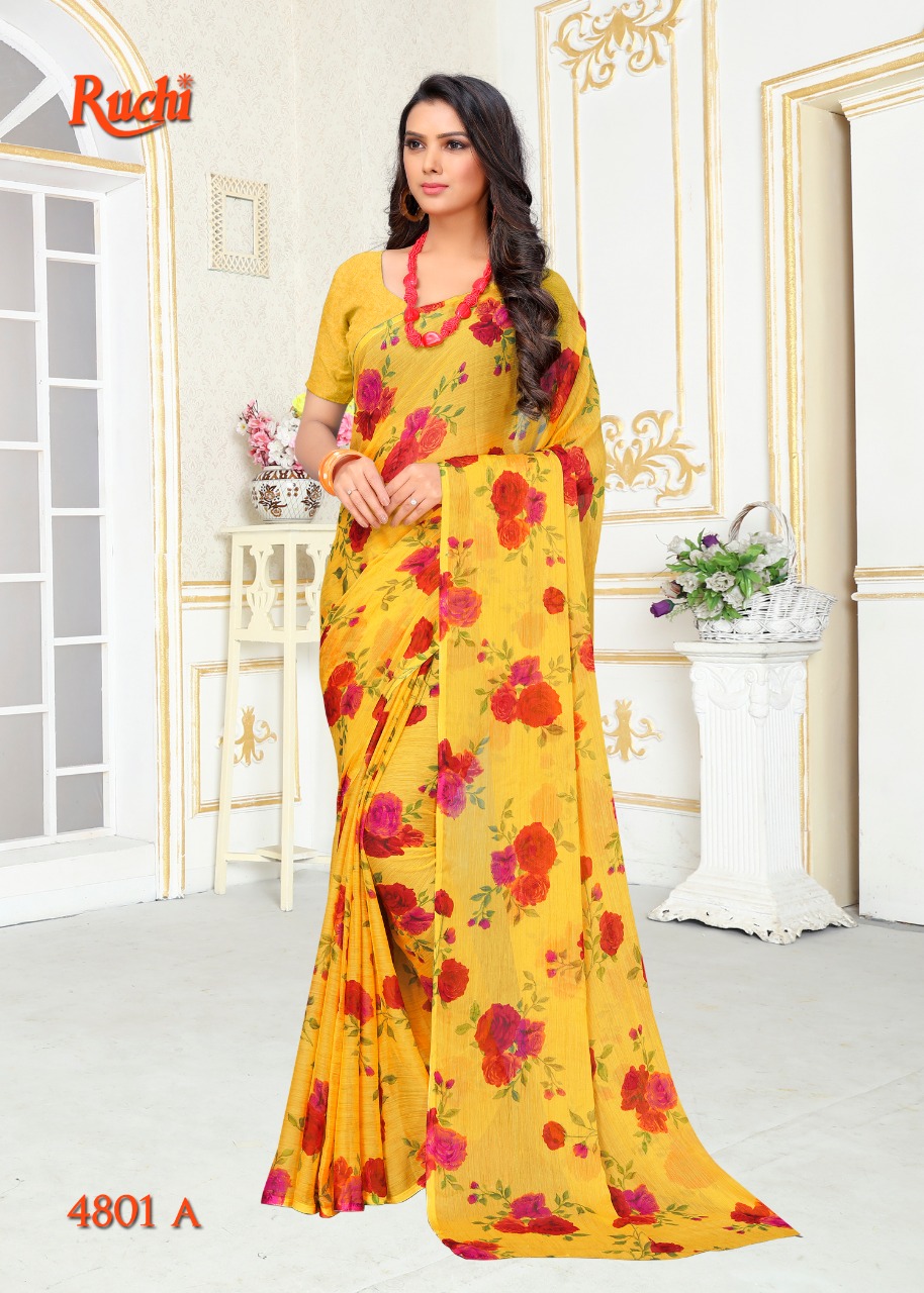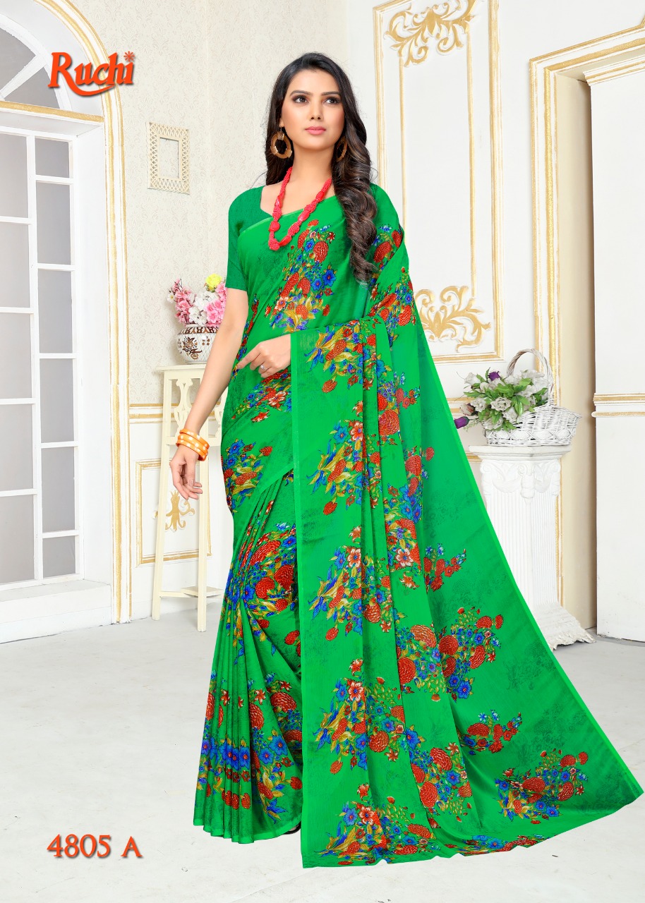 Ruchi Blueberry Super Kesar Chiffon Poster No 48 Printed Casual Wear Saree