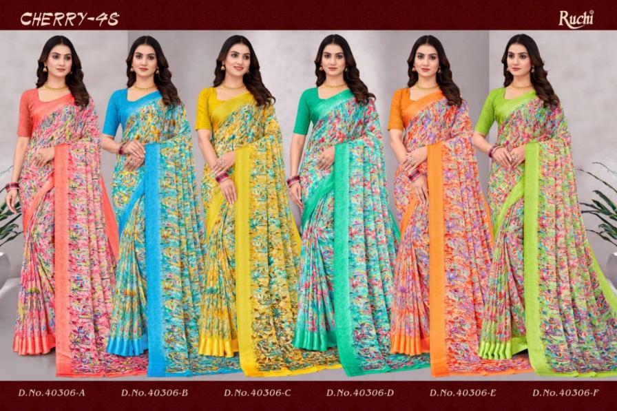 ruchi cherry vol 48 amazing chiffon sartin saree supplier