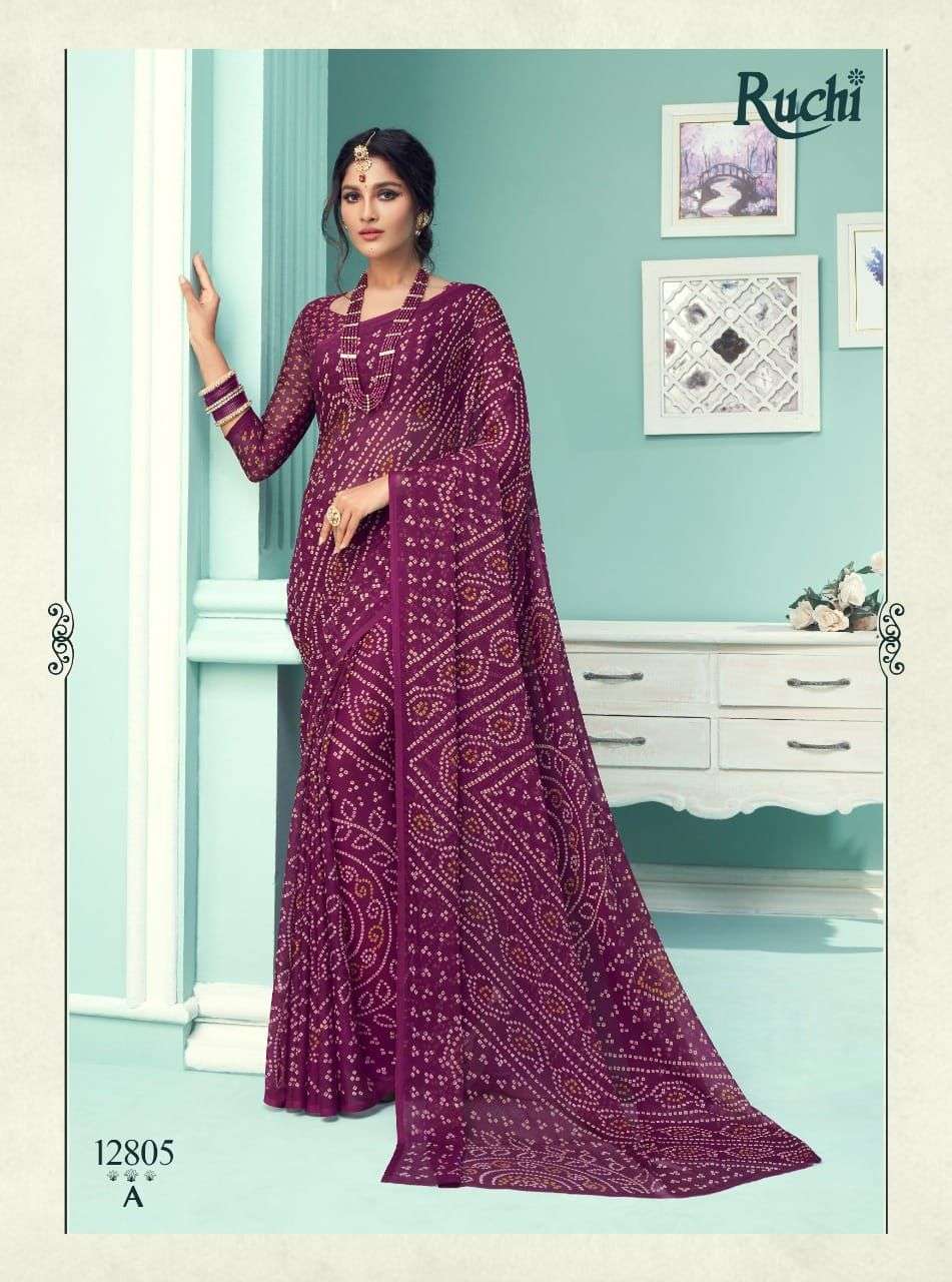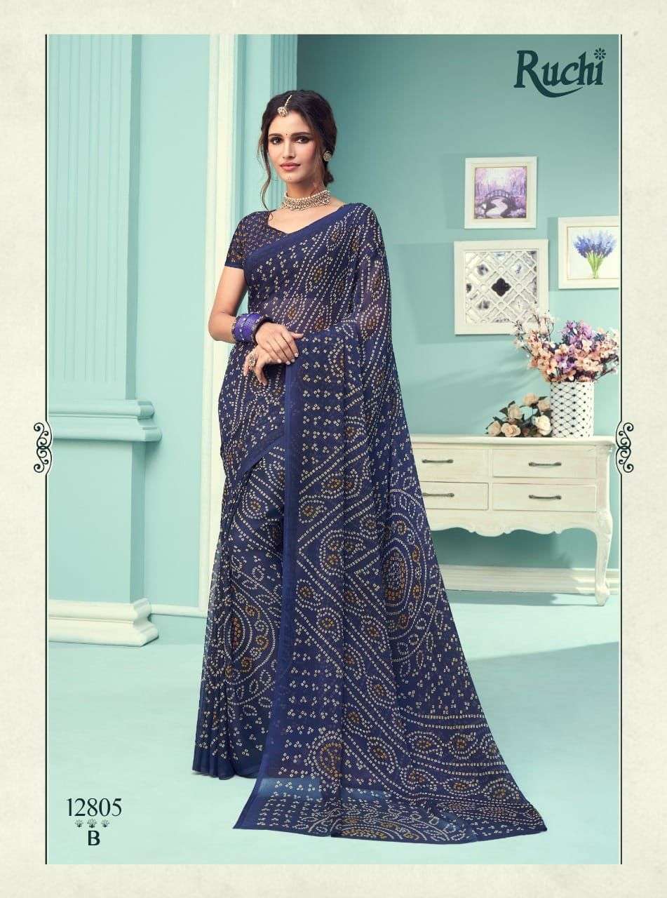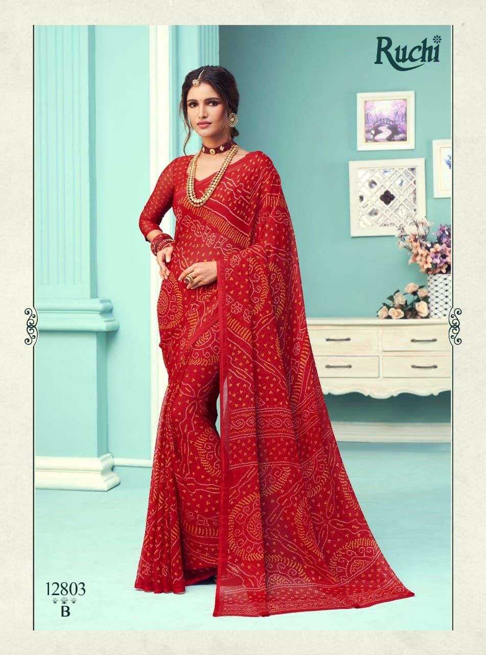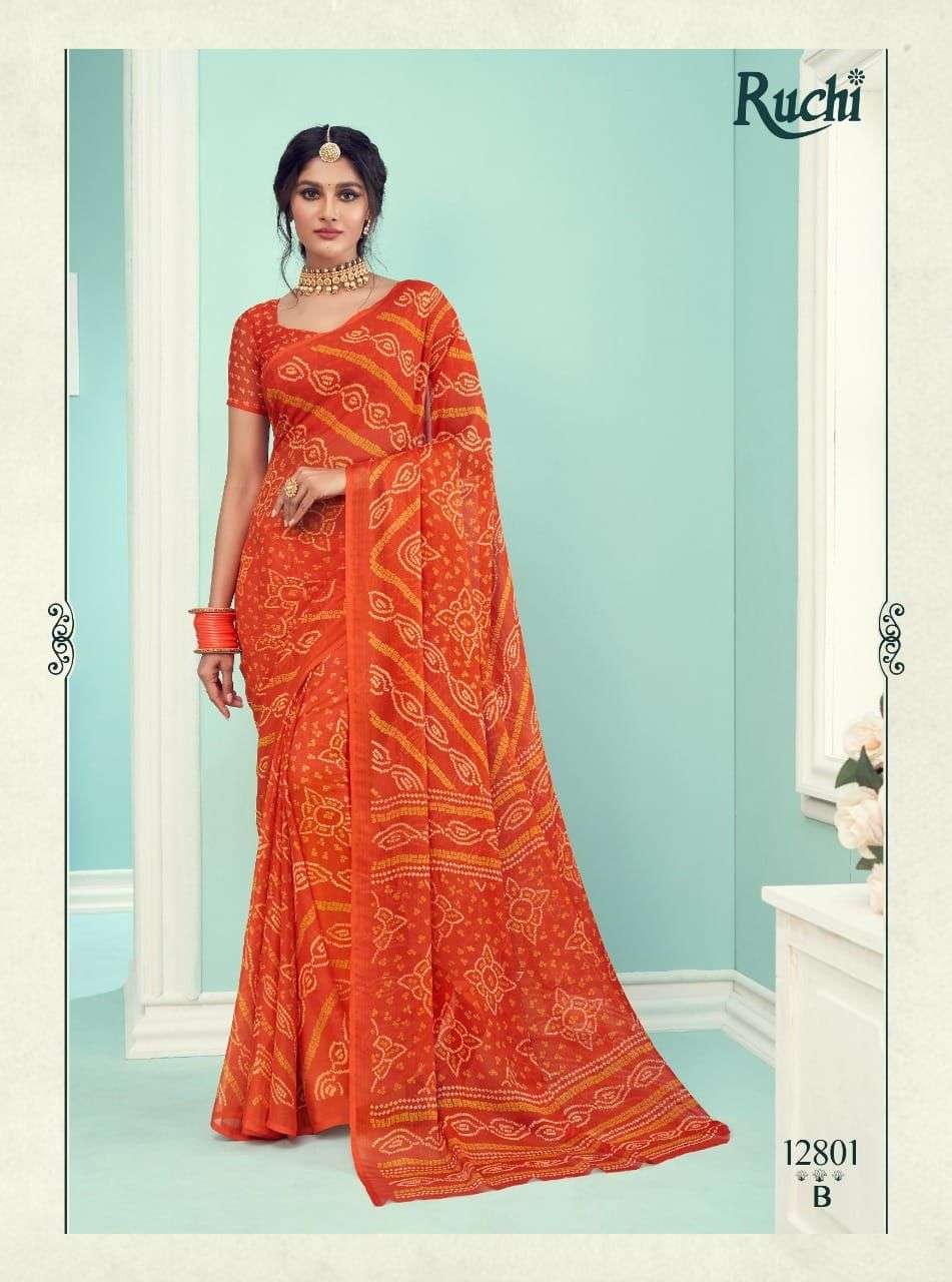 ruchi chiffon series vol 67 chiffon bandhani printed saree