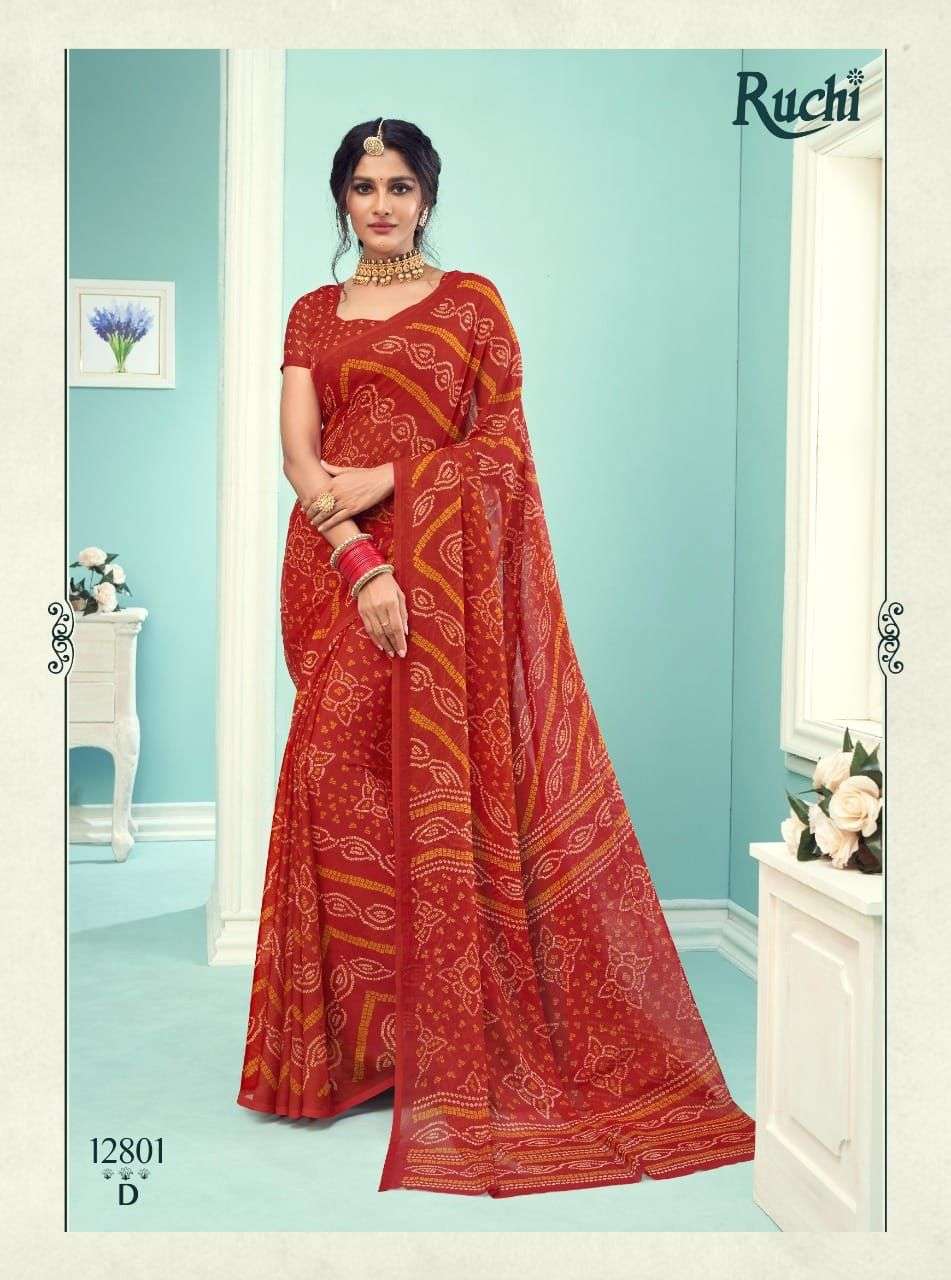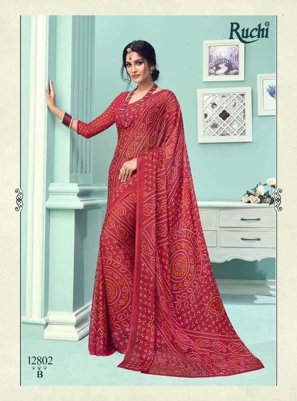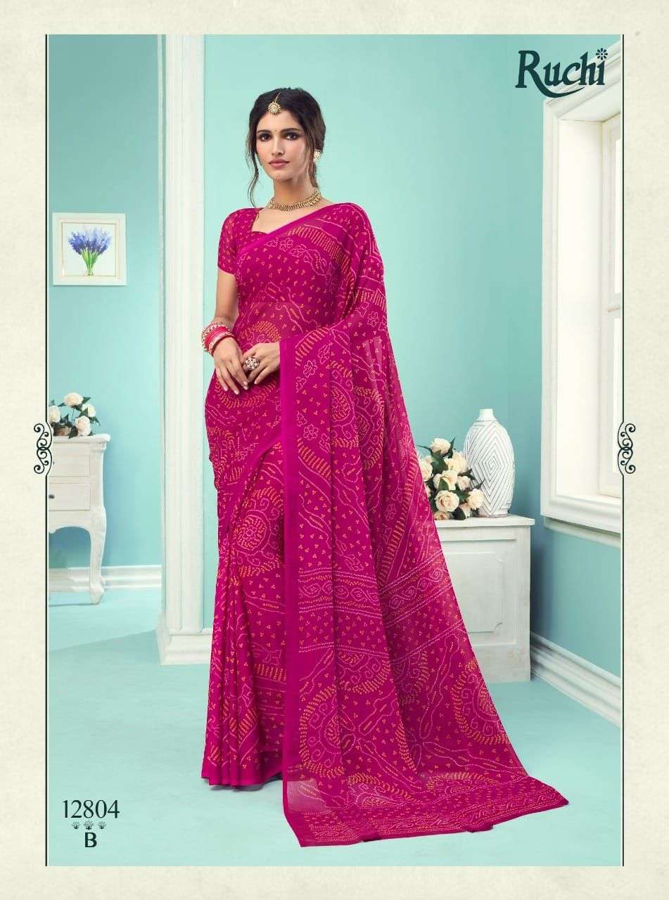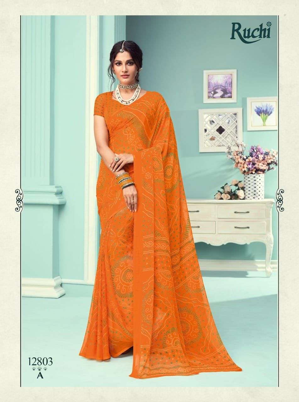 ruchi chiffon series vol 67 chiffon bandhani printed saree