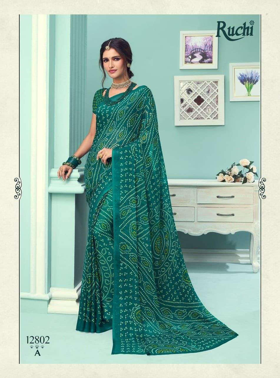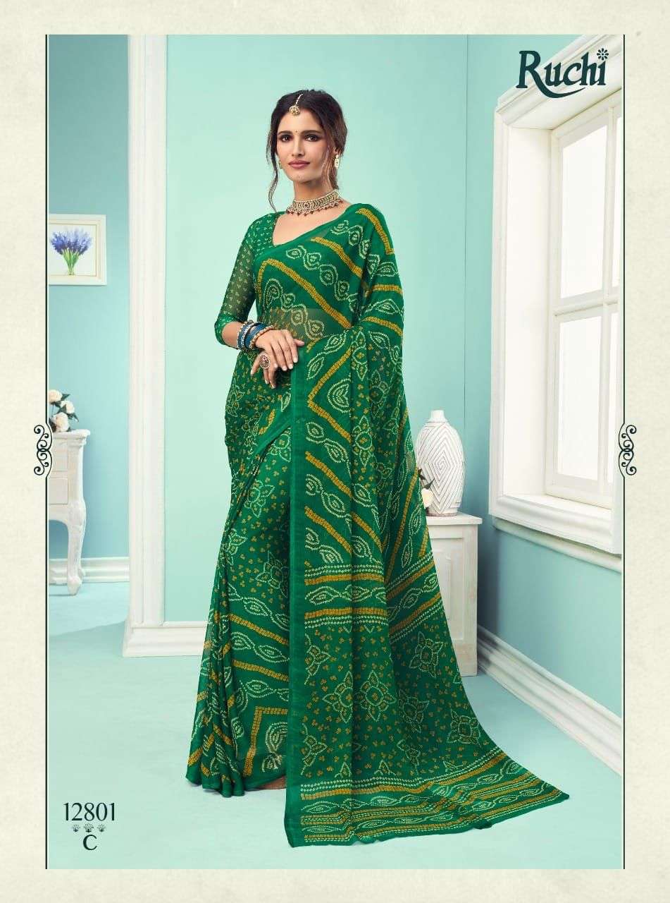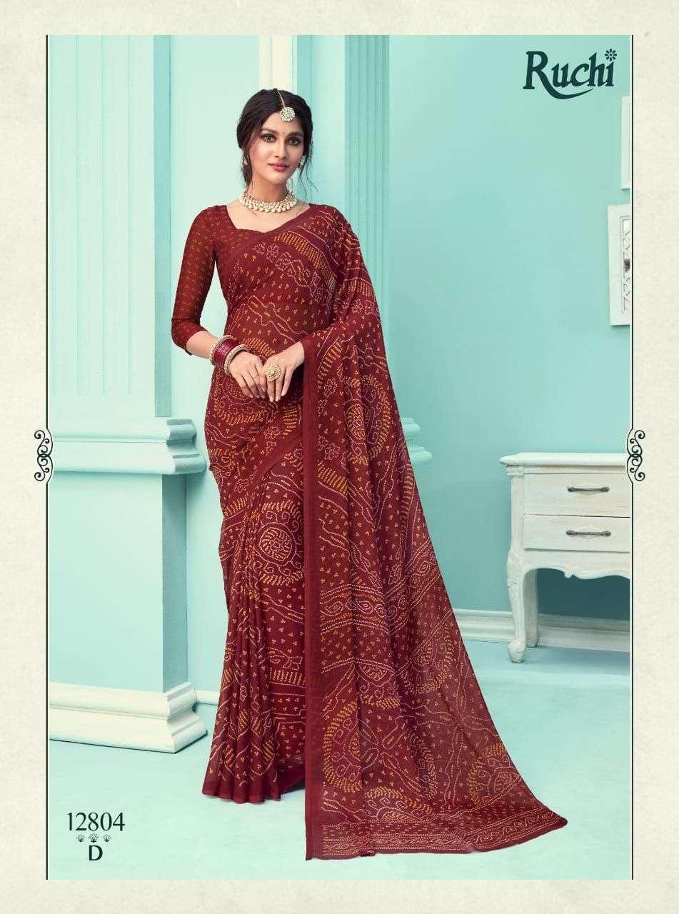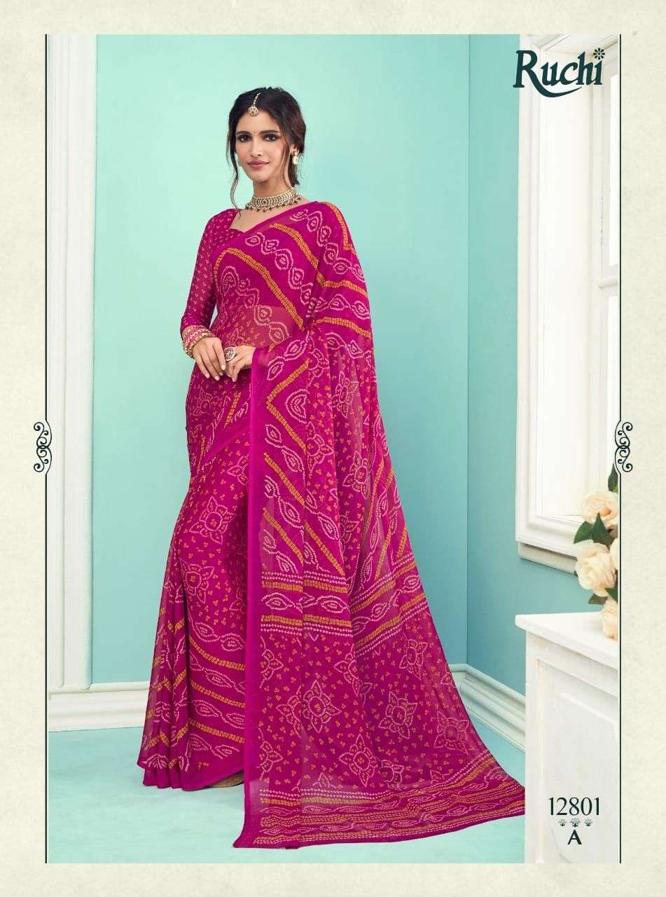 ruchi chiffon series vol 67 chiffon bandhani printed saree