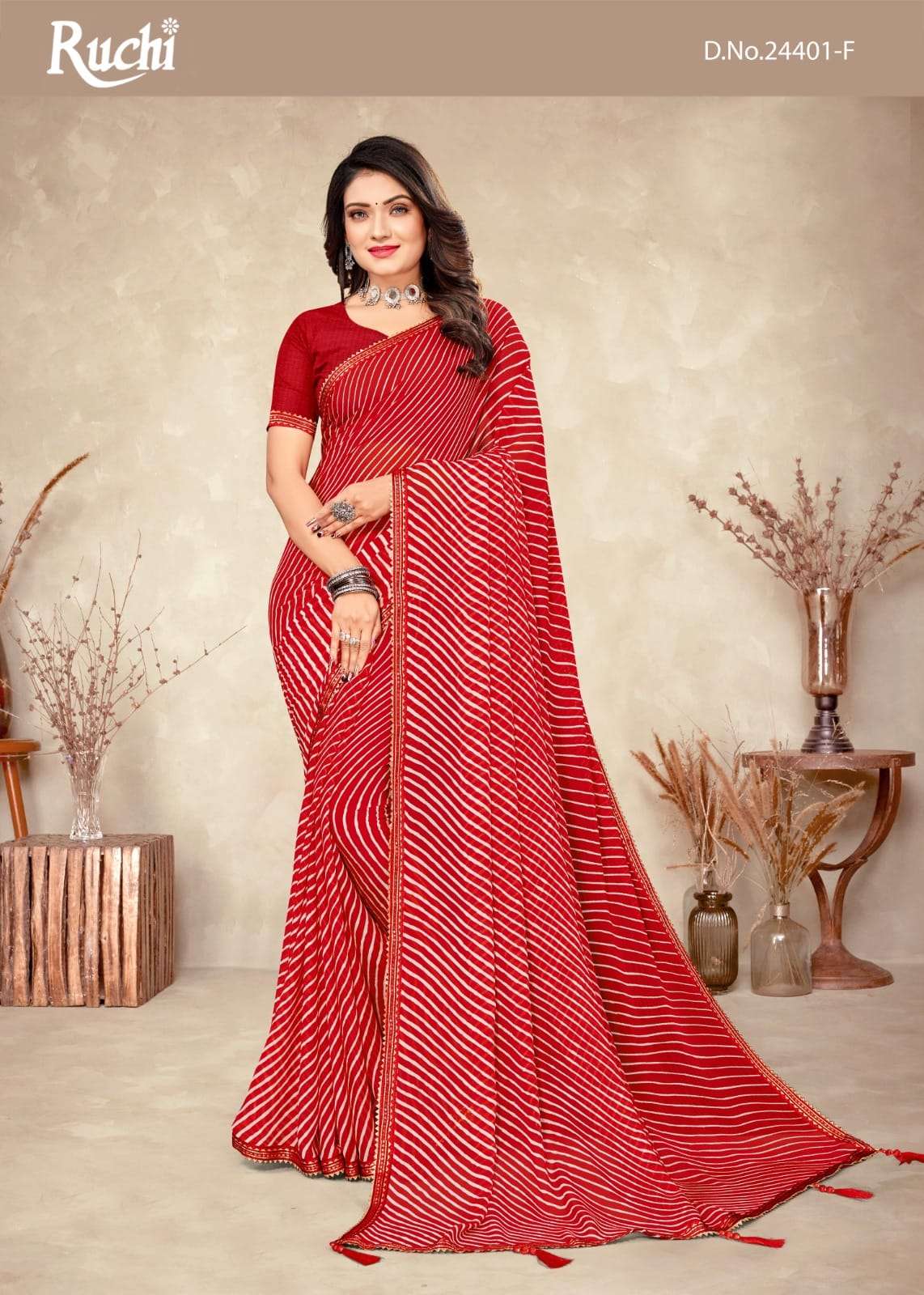 BRAND : RUCHI CATALOG : JALPARI VOL - 4 SAREE FABRIC - CHIFFON SAREE WITH ATTACHED TASSELLS & BANARSI BORDER Today Delivery |
