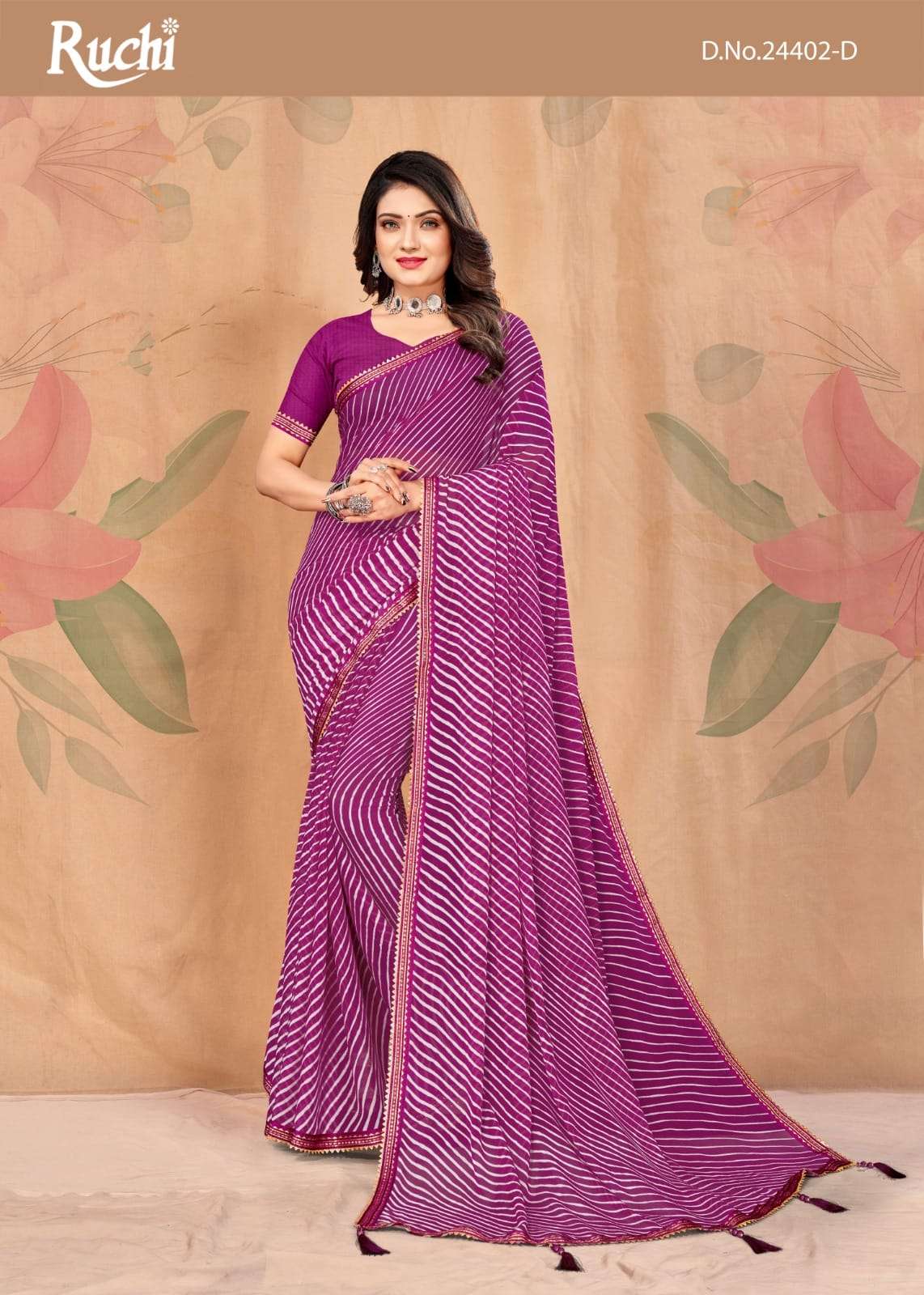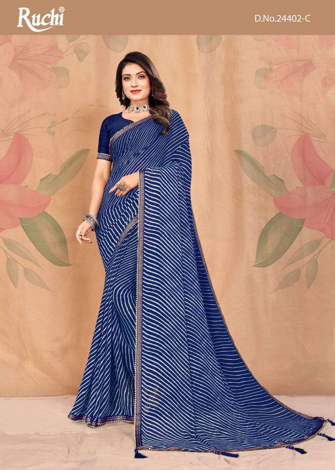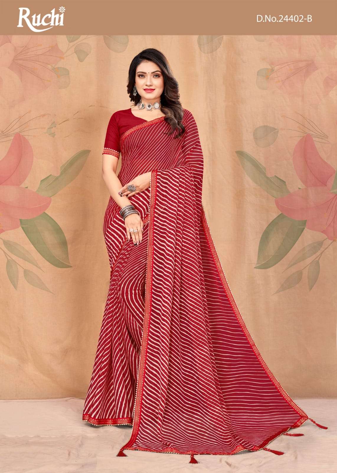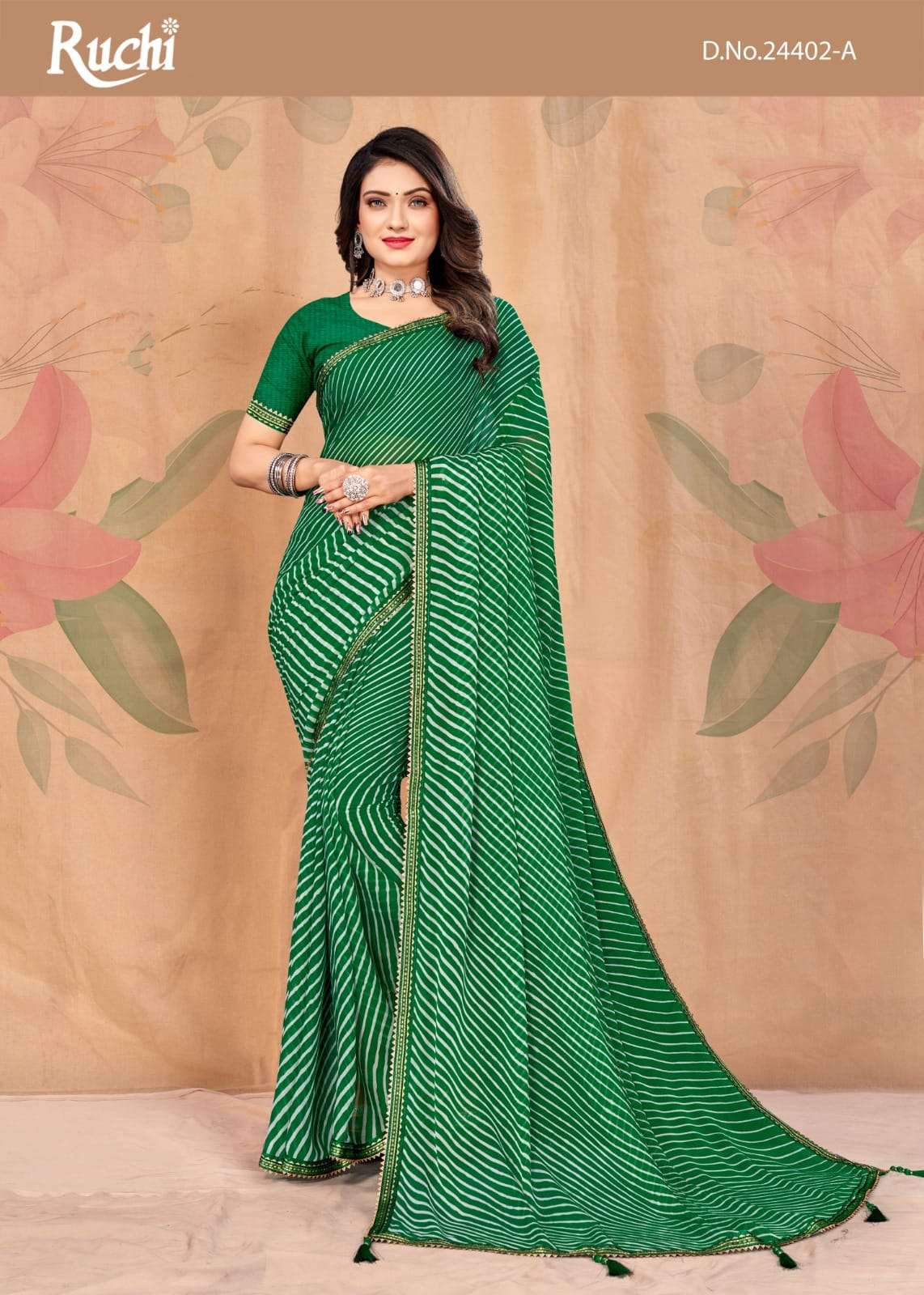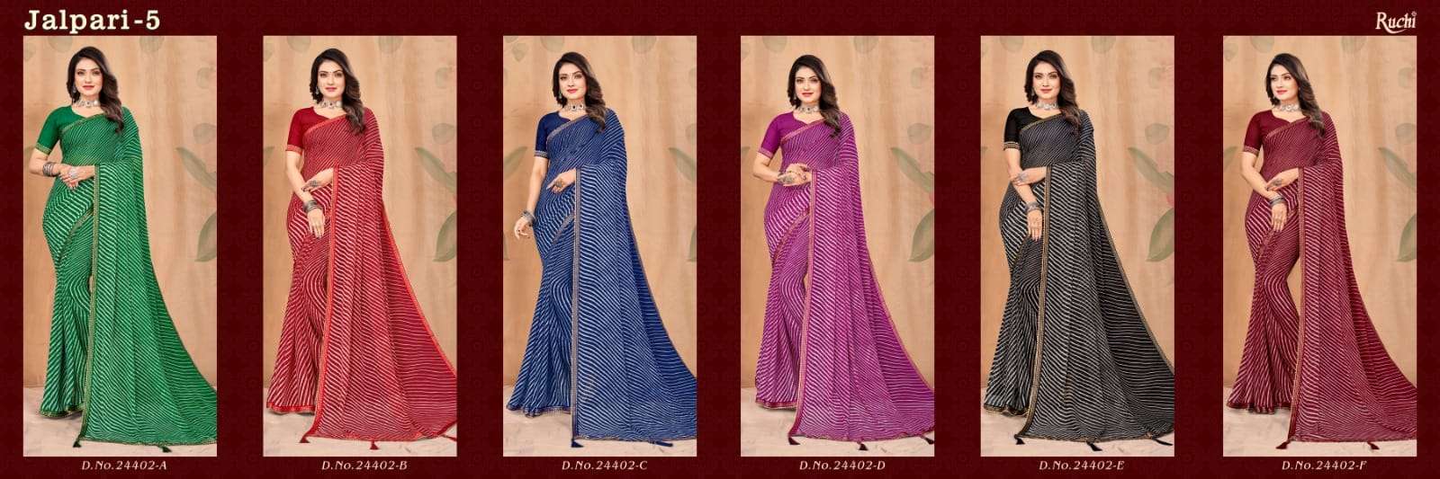 BRAND : RUCHI CATALOG : JALPARI VOL - 5 SAREE FABRIC - CHIFFON SAREE WITH ATTACHED TASSELLS & BANARSI BORDER Today Delivery |