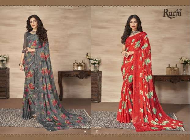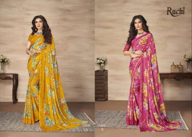 ruchi kesariya chiffon vol 56 printed chiffon daily wear saree