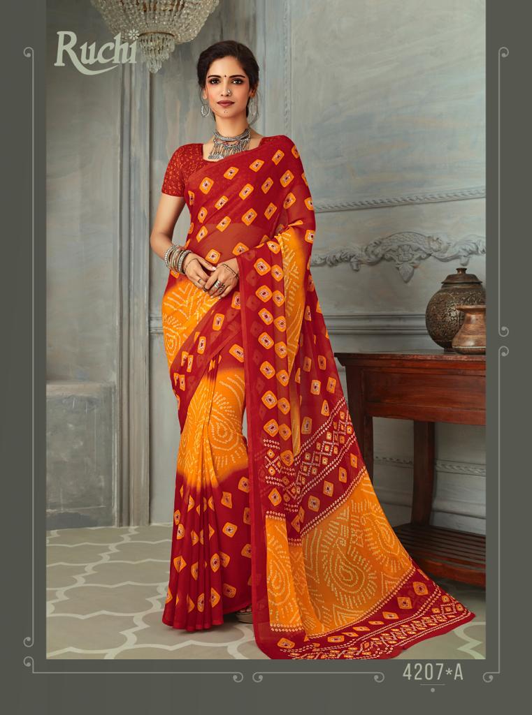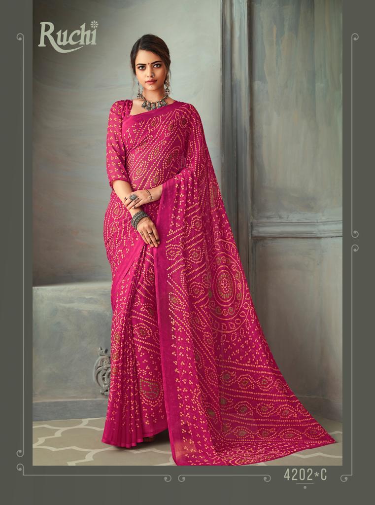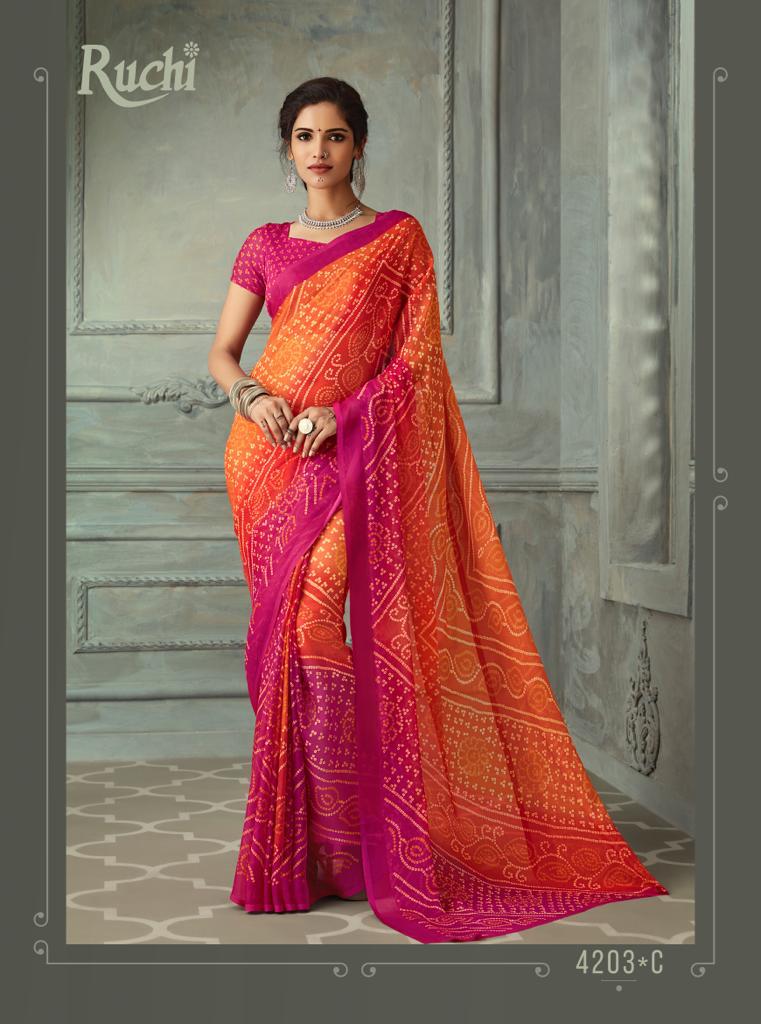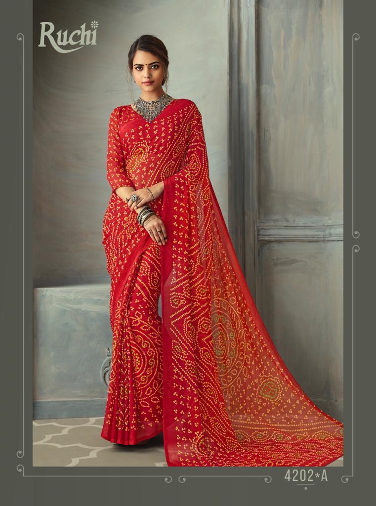 Ruchi Launch Super Kesar Chiffon 50 Edition Casual Wear Bandhani Print Chiffon Saree 2020 Collection