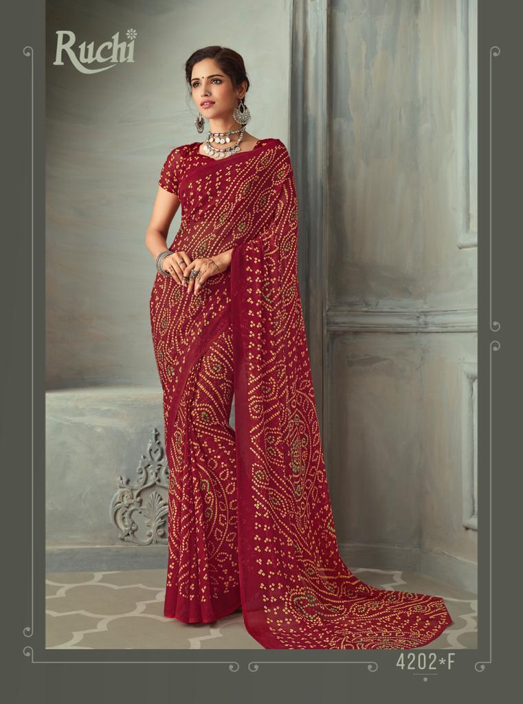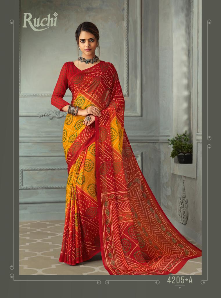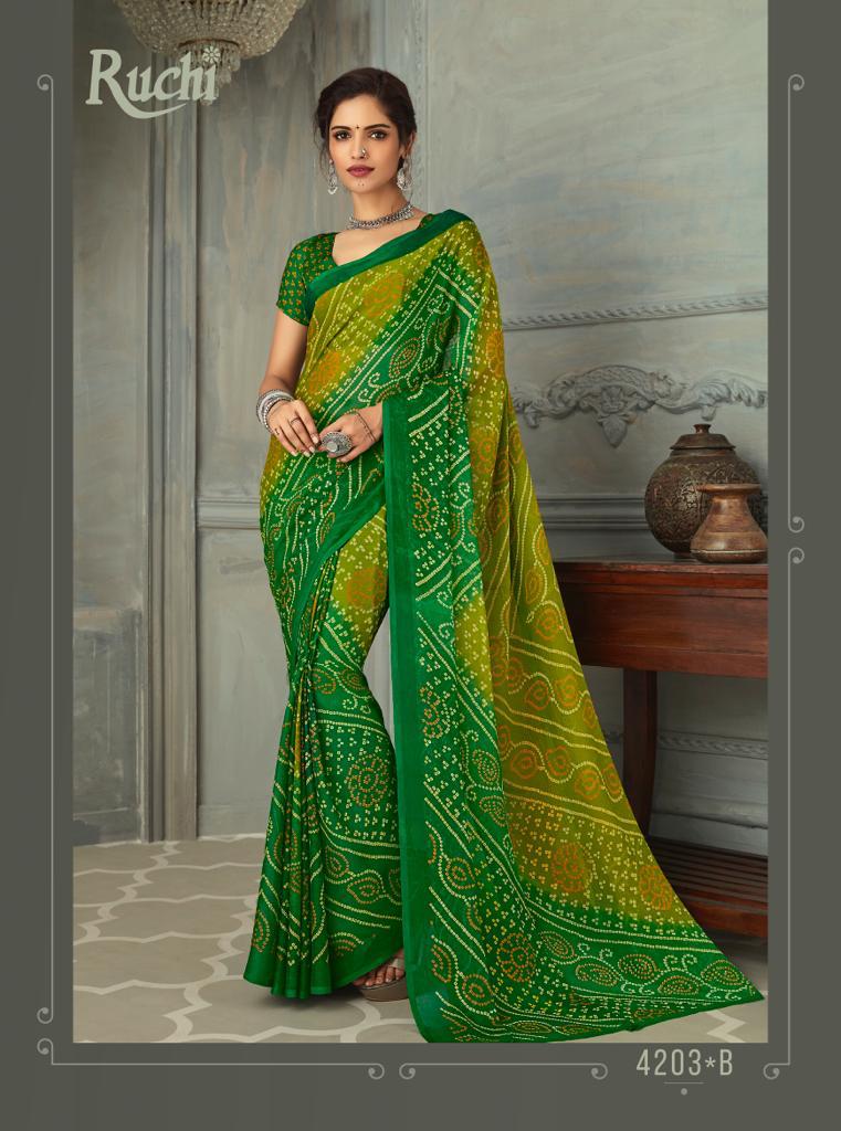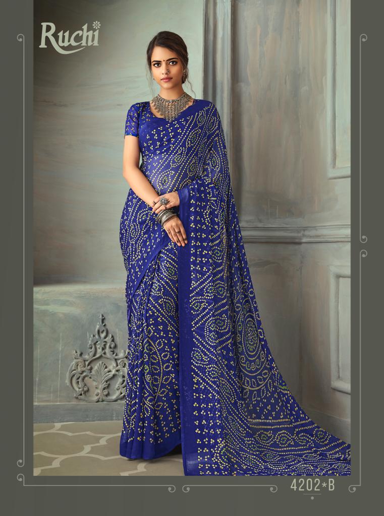 Ruchi Launch Super Kesar Chiffon 50 Edition Casual Wear Bandhani Print Chiffon Saree 2020 Collection