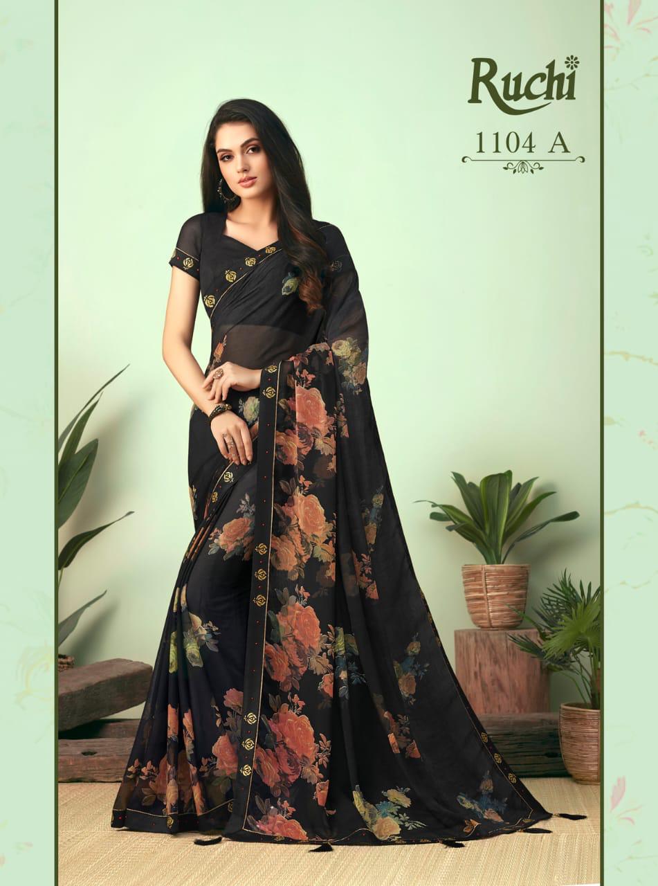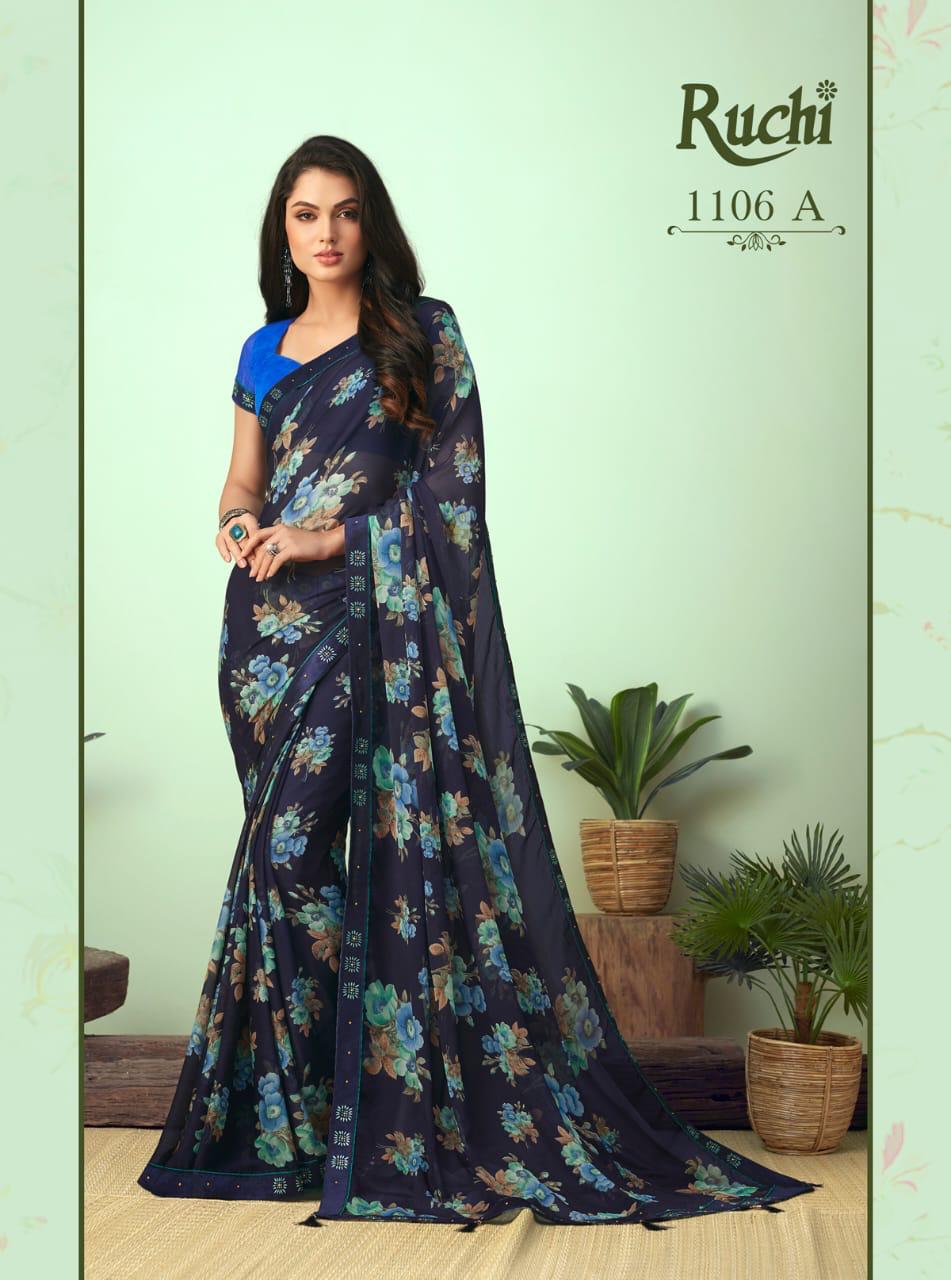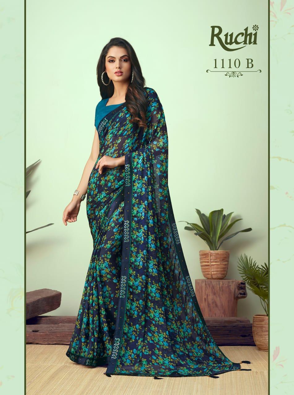 Ruchi Sarees 1. Anaira. 2. Fabric- Chiffon. 3. Rate- 575 per pcs . Series - 1101 A B to 1110 A B GST 5 Percent Extra. Delivery from tomorrow 4. 20pcs in set . |