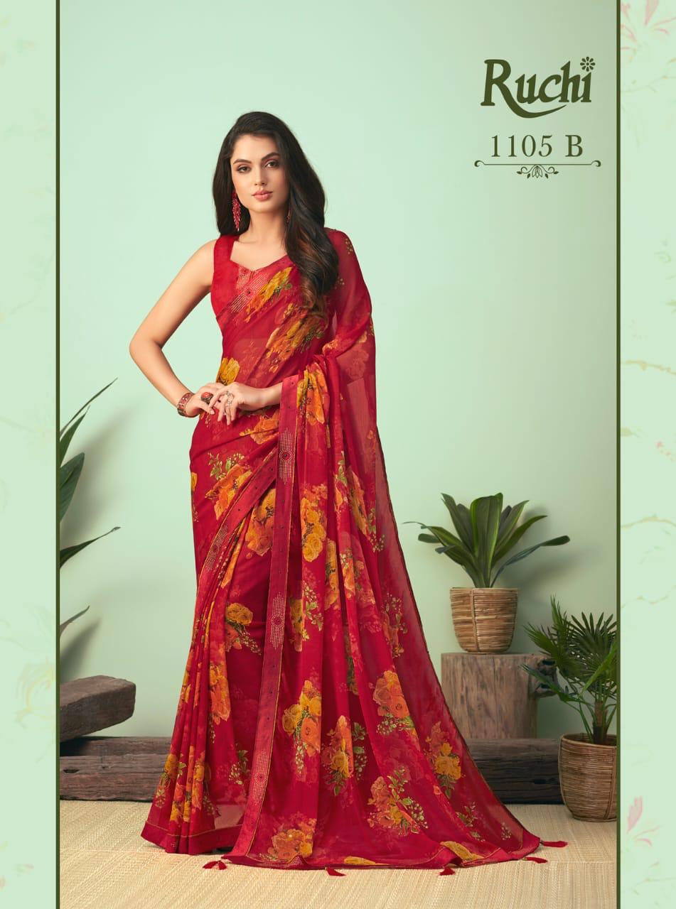Ruchi Presenting Anaira Chiffon Casual Wear Simple Printed Saree Catalogs Supplier